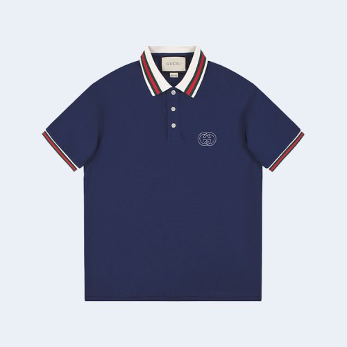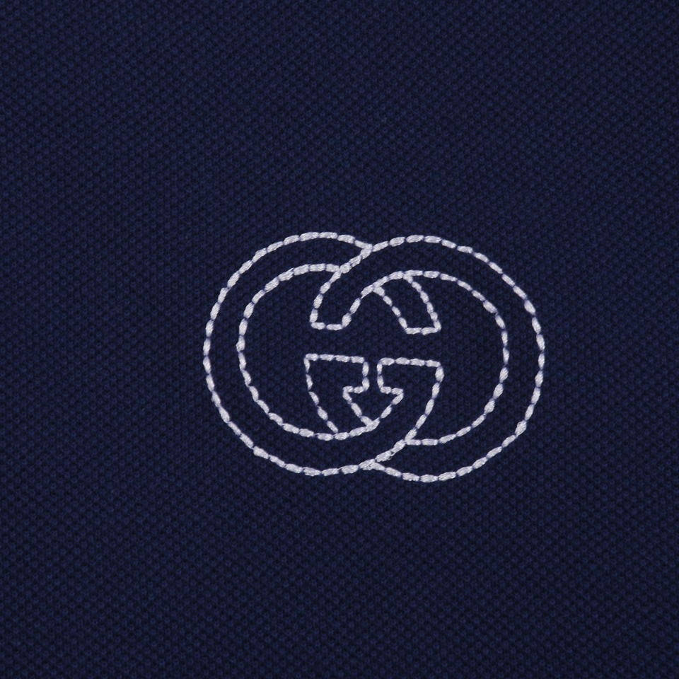 구찌 GG 우븐 슬리브 폴로 셔츠 네이비