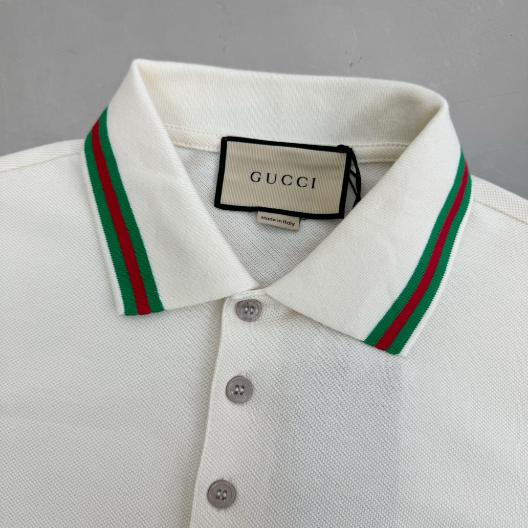 구찌 엠브로이더리 코튼 피케 폴로 셔츠 화이트