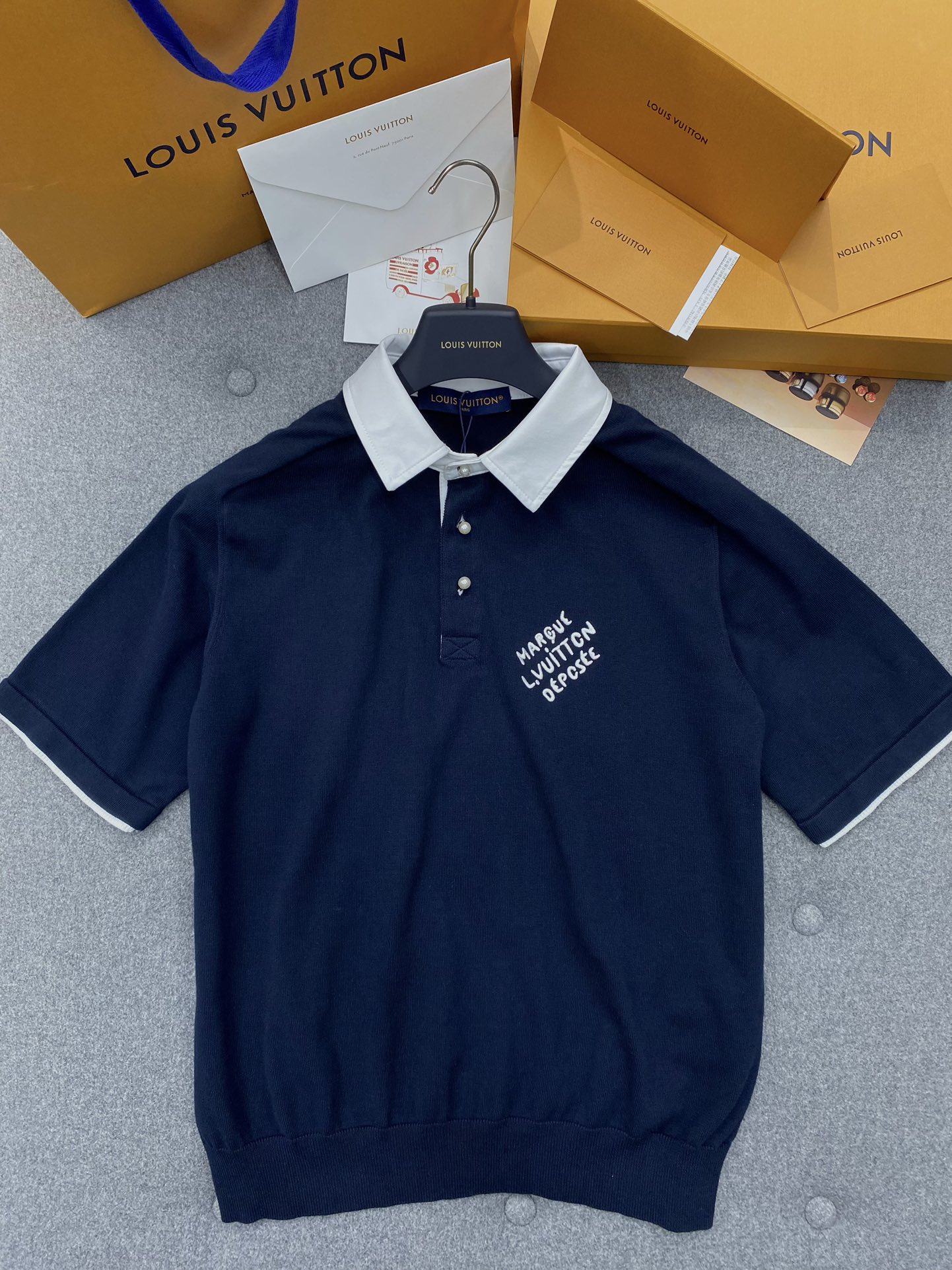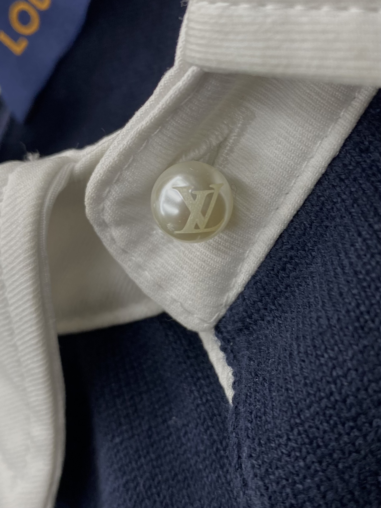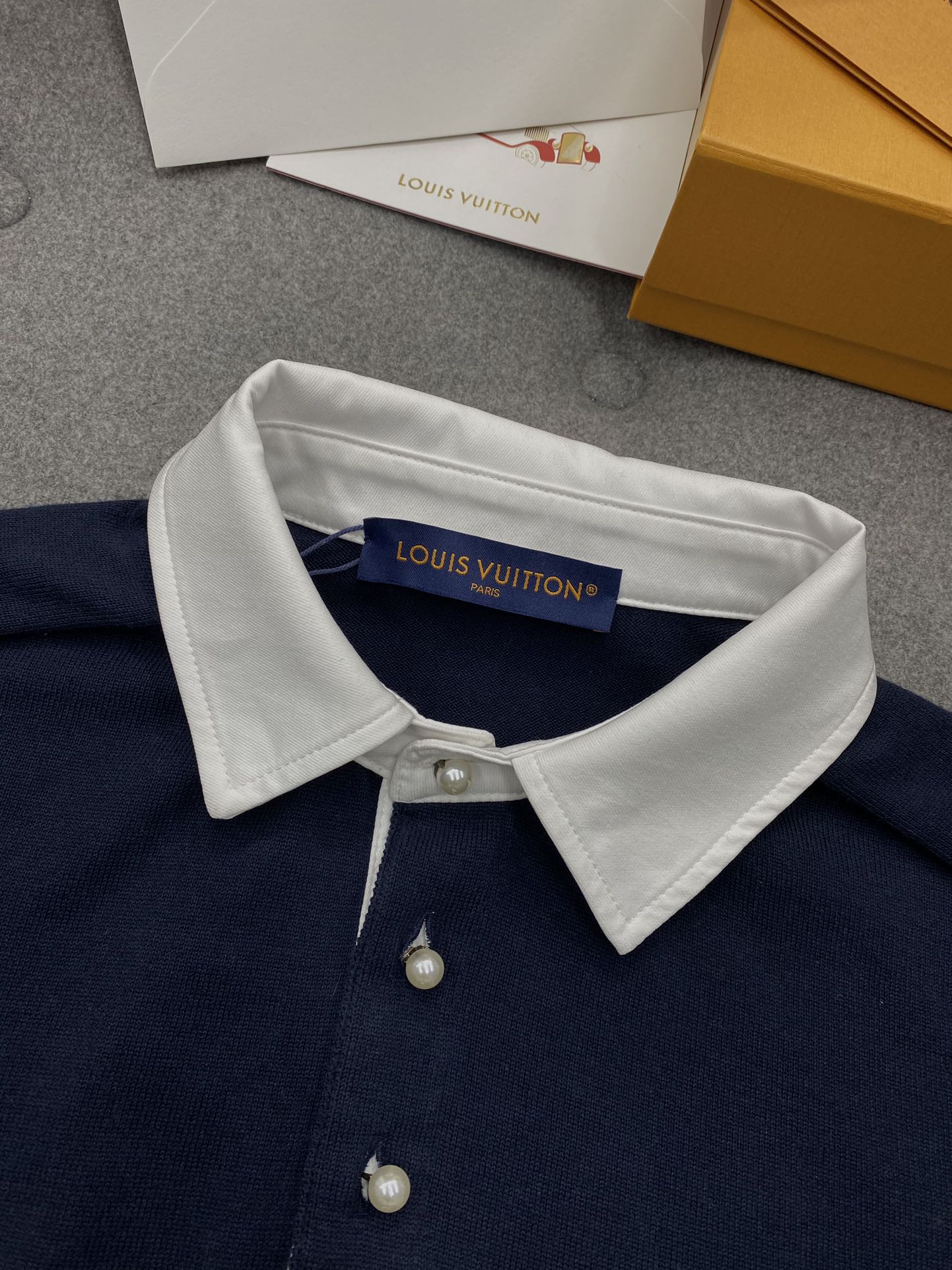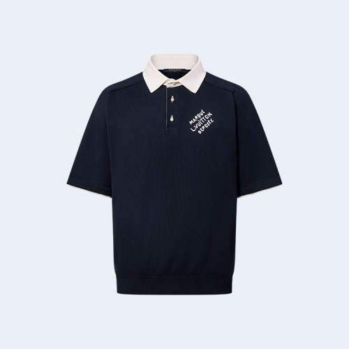 루이비통 엠브로이더드 쇼트 슬리브드 코튼 블렌드 폴로 셔츠 1AFQQJ