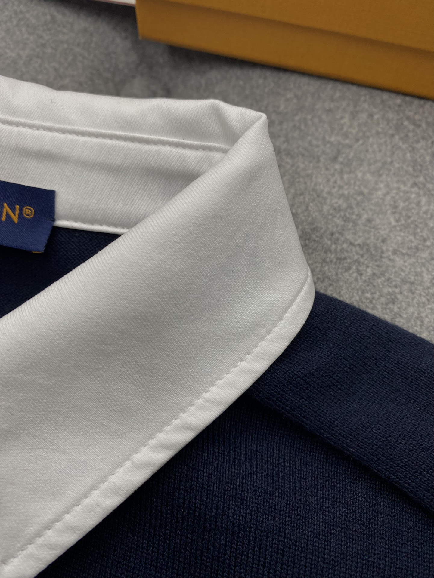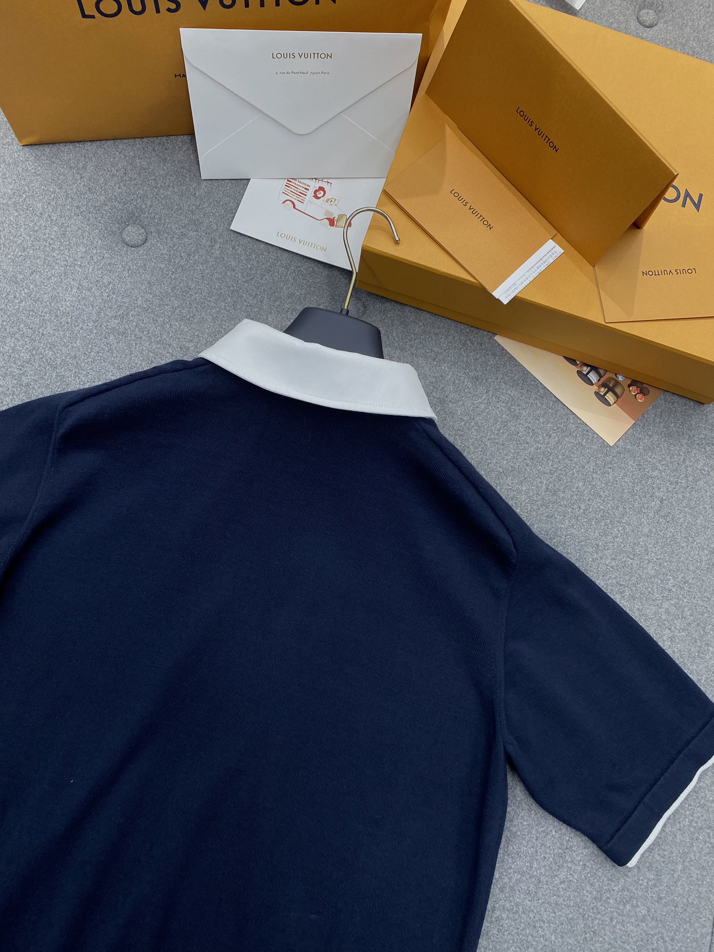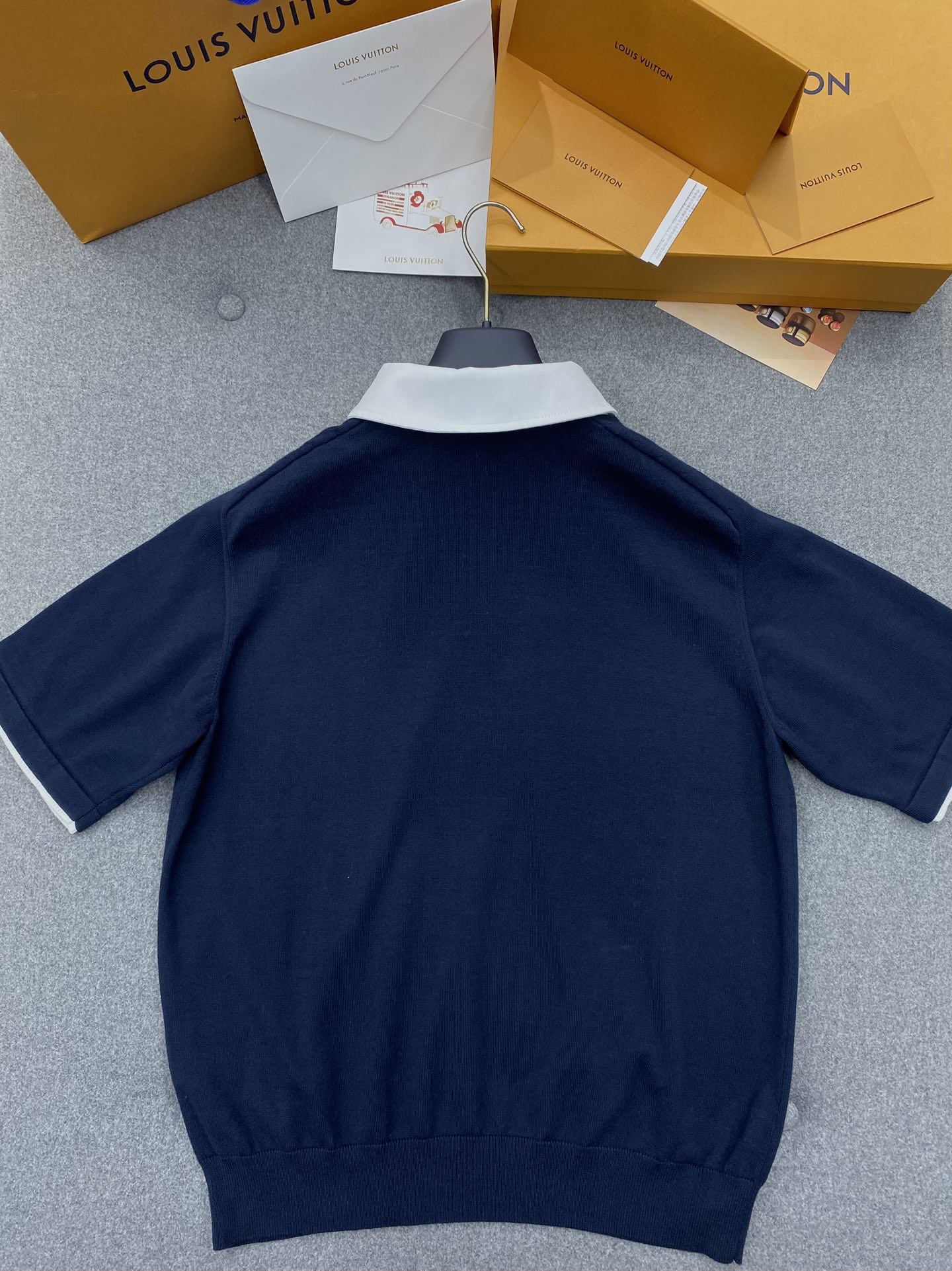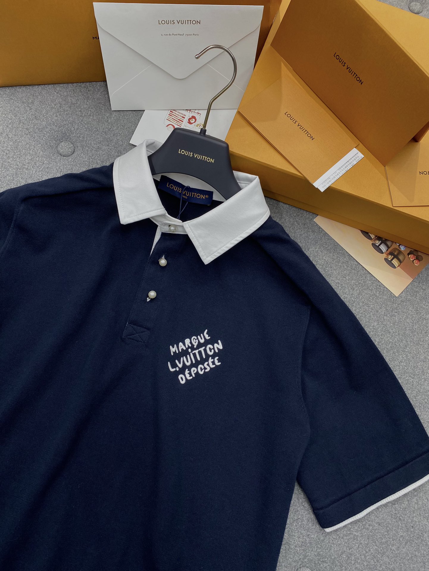 루이비통 엠브로이더드 쇼트 슬리브드 코튼 블렌드 폴로 셔츠 1AFQQJ