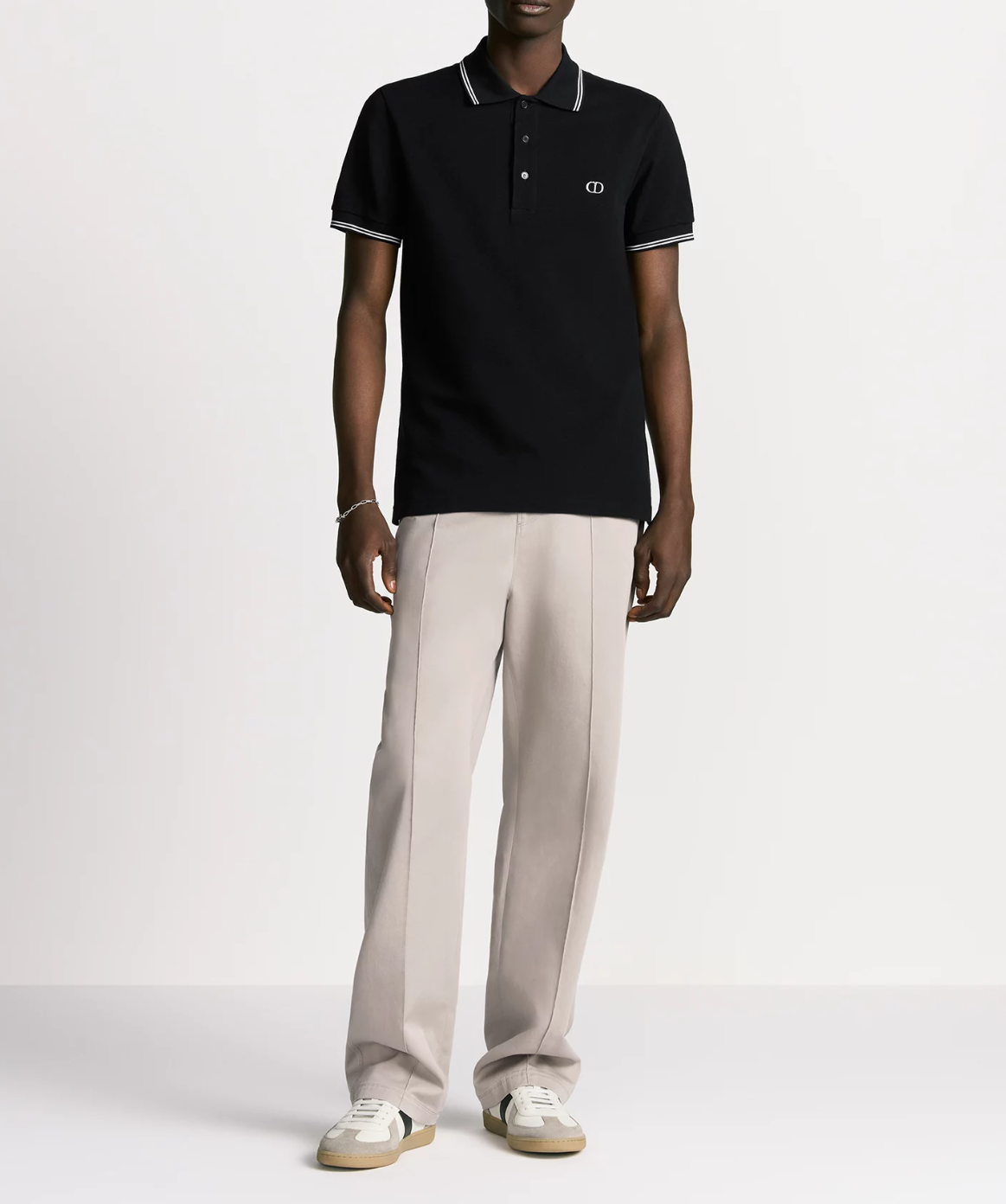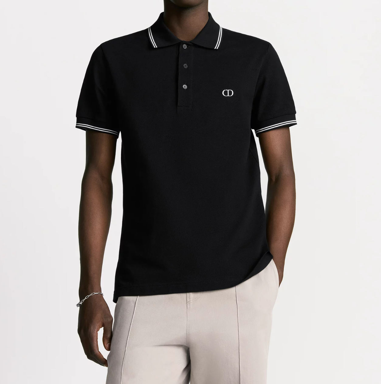 프라다 더블 레이어드 로고 스트레치 네이비 폴로 셔츠