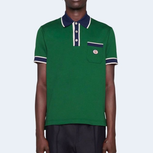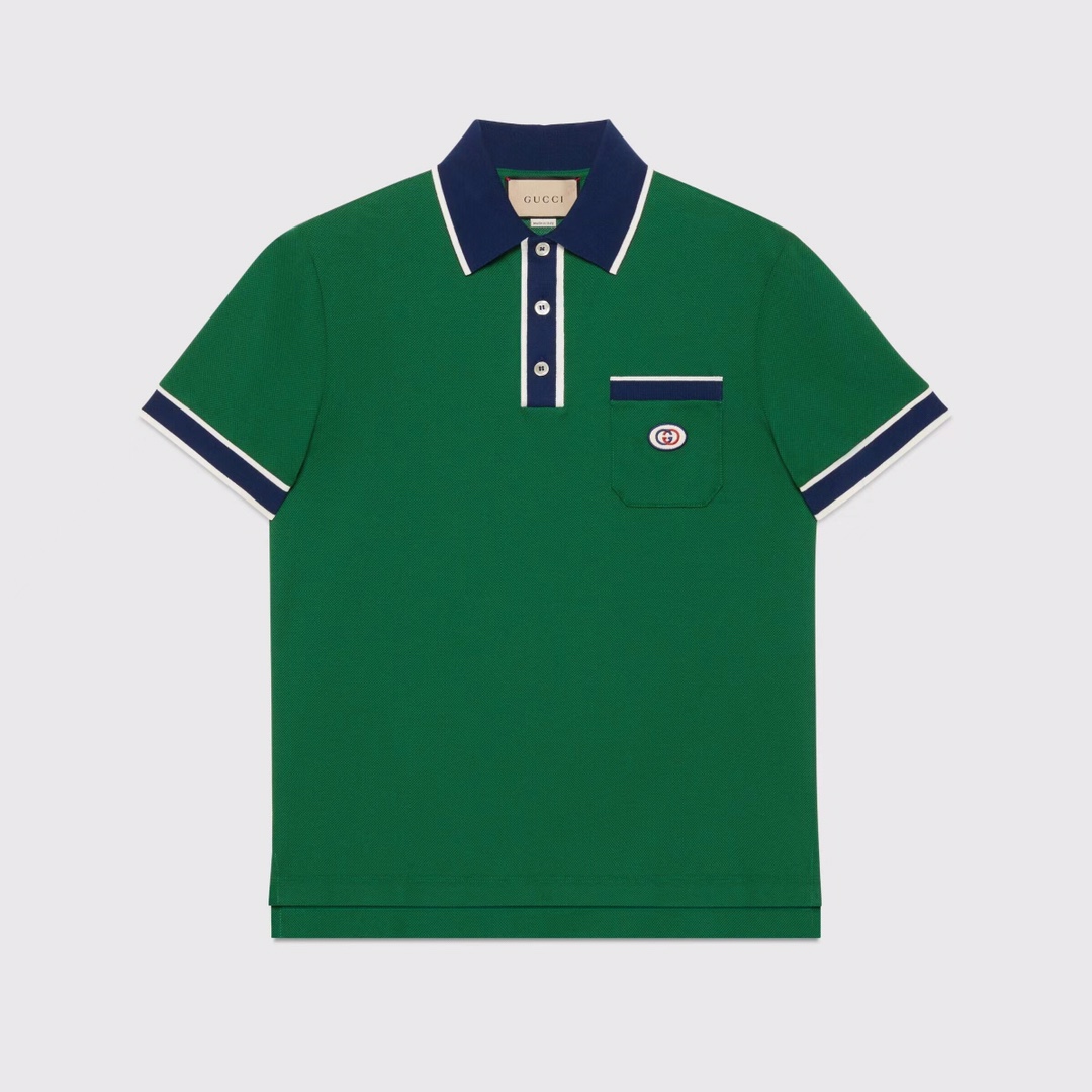 구찌 베이지 스트레츠 코튼 피케 폴로 셔츠