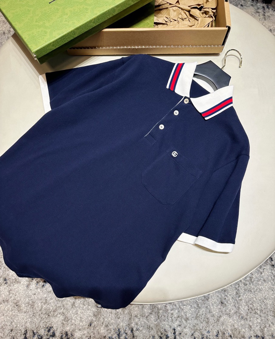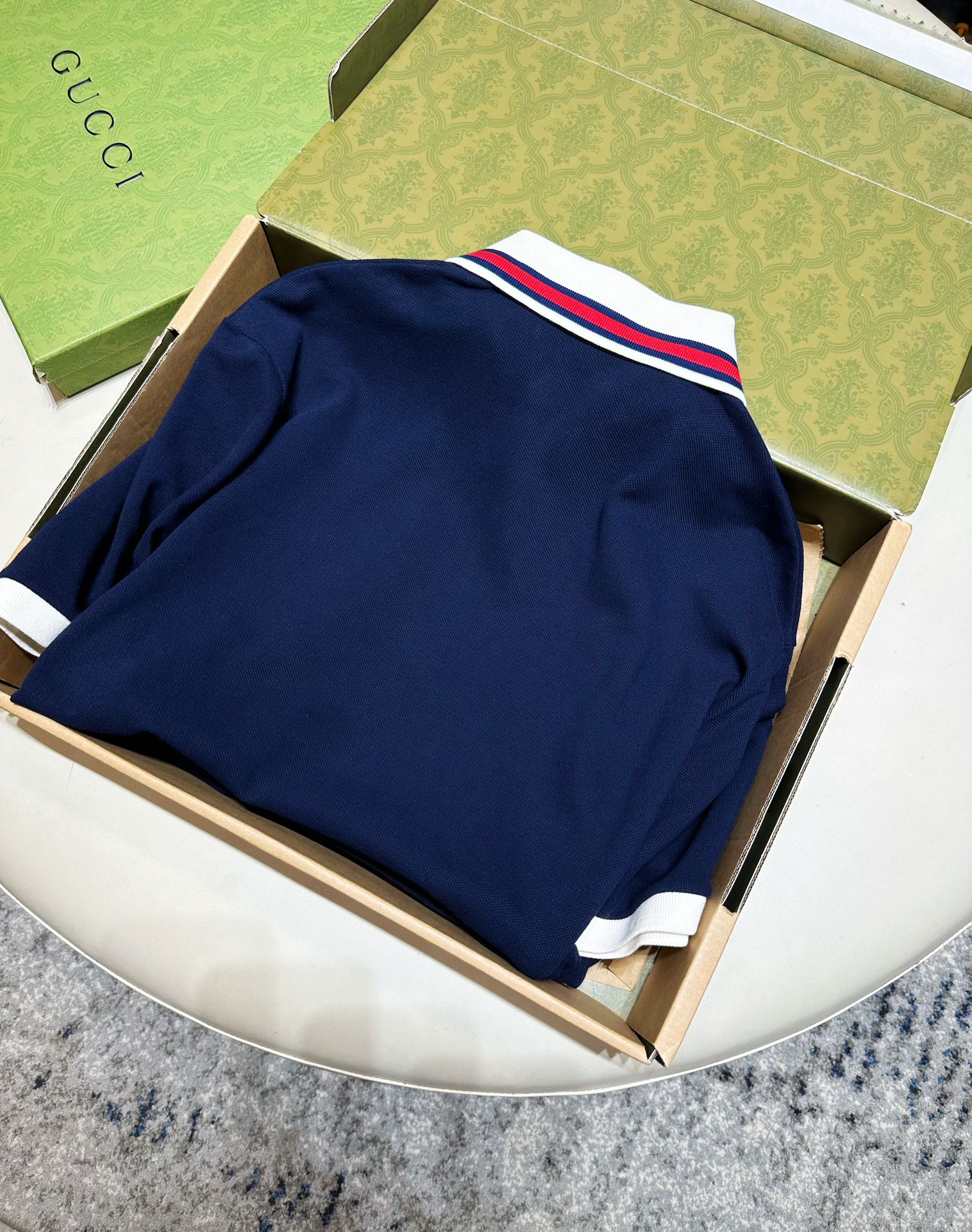 구찌 웹 스트라이프 폴로 셔츠 네이비