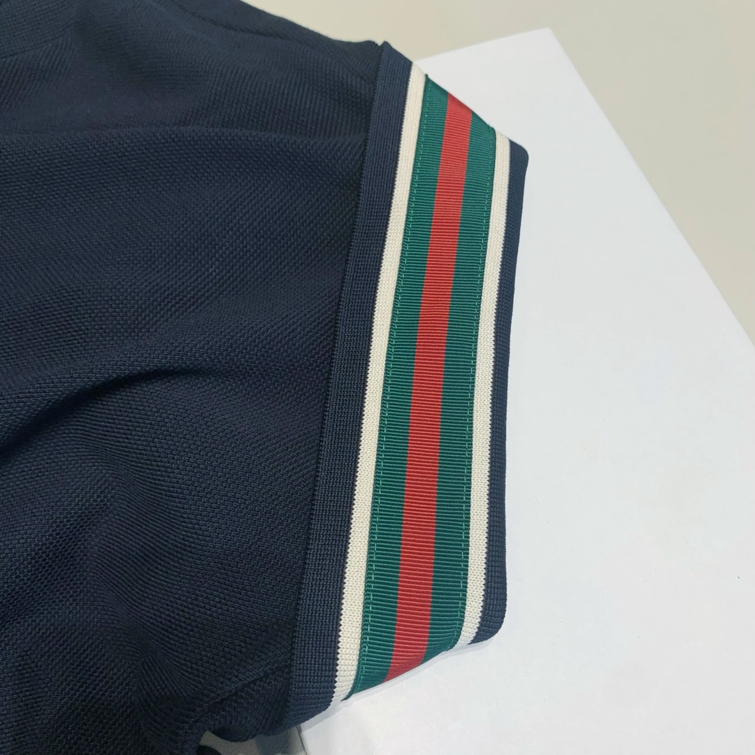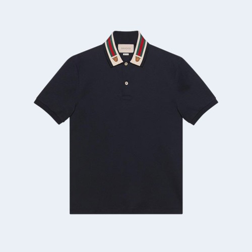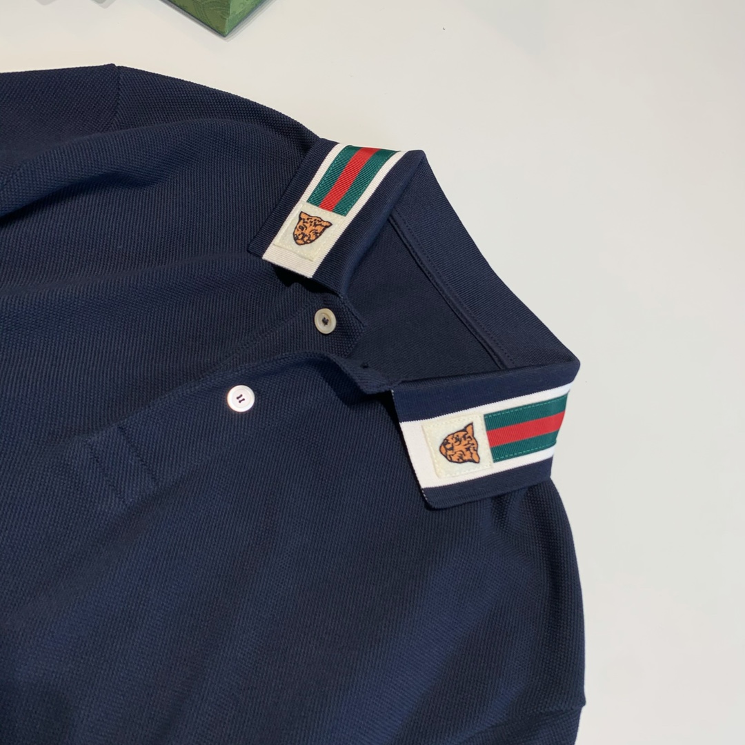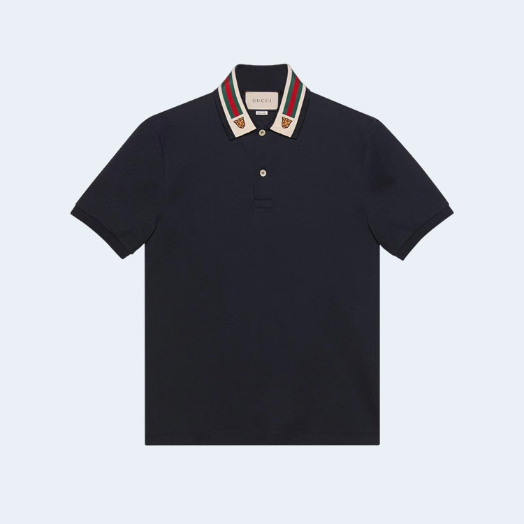 구찌 웹 앤 펠린 헤드 폴로 셔츠 네이비