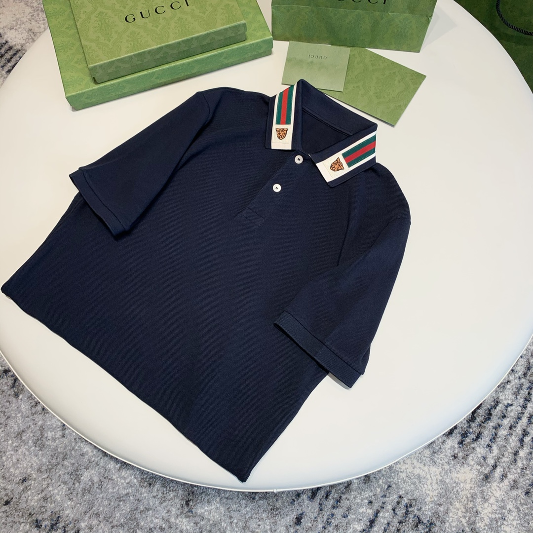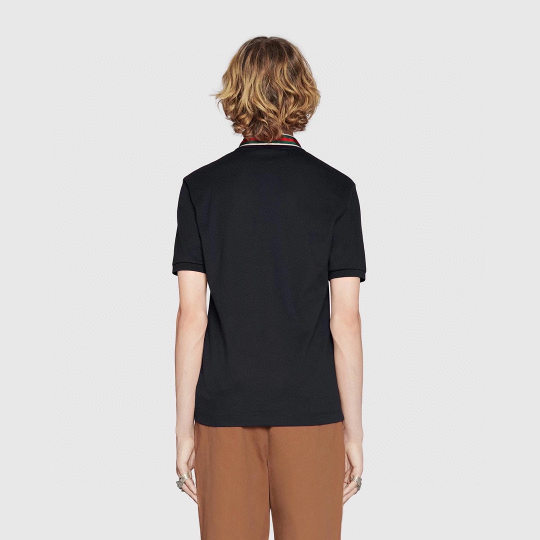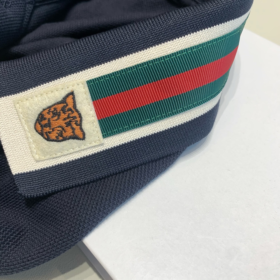 구찌 웹 앤 펠린 헤드 폴로 셔츠 네이비