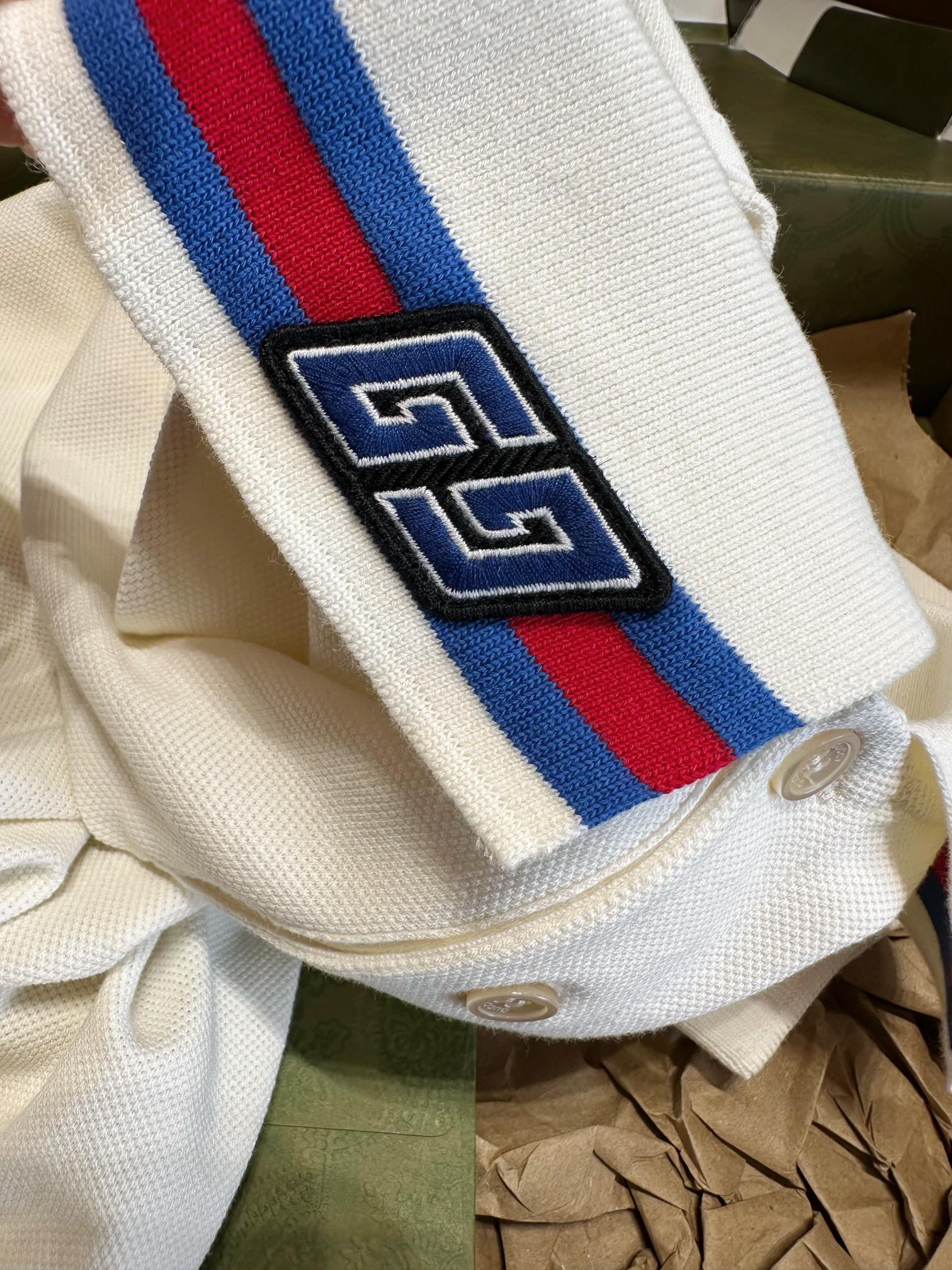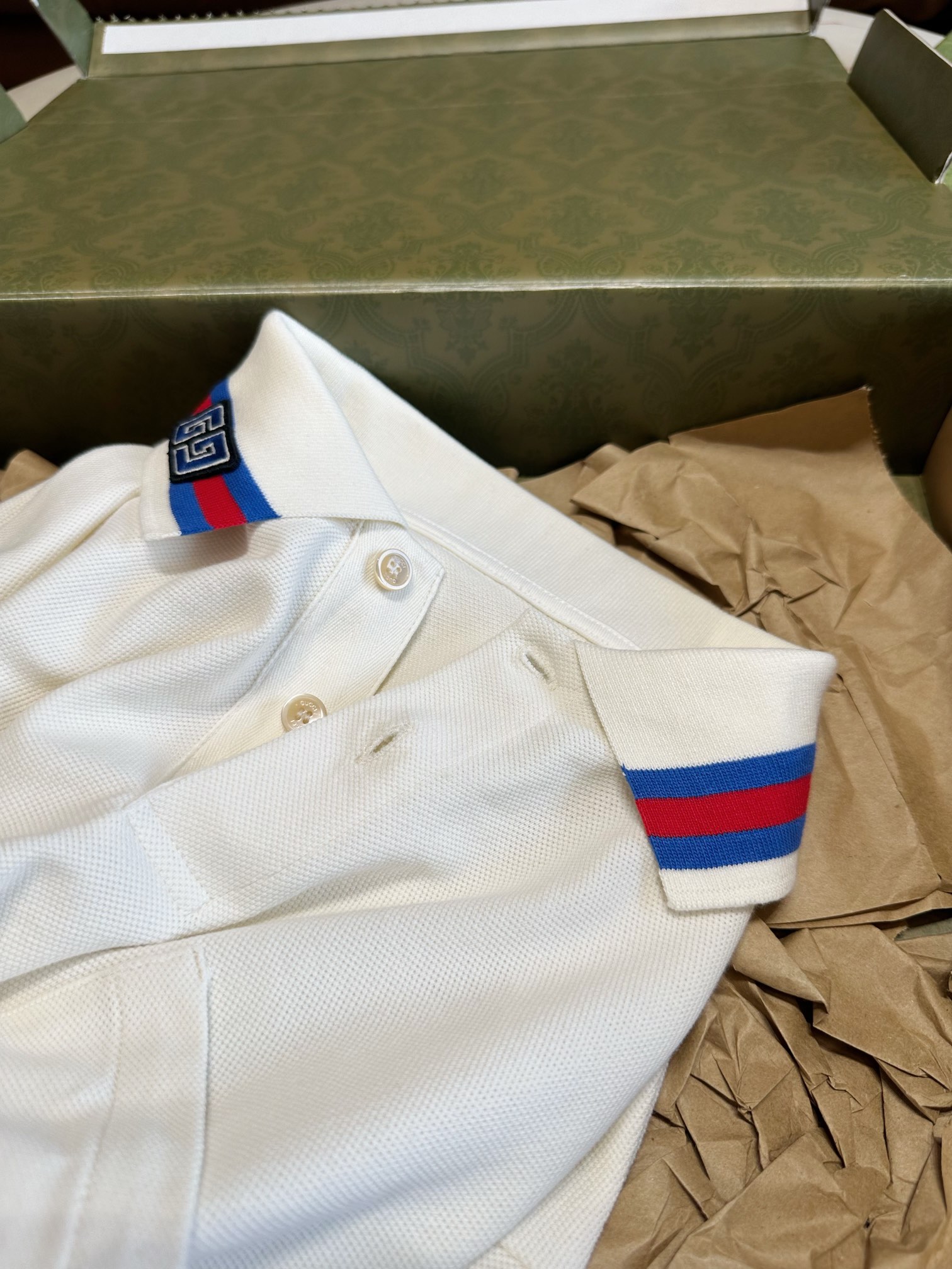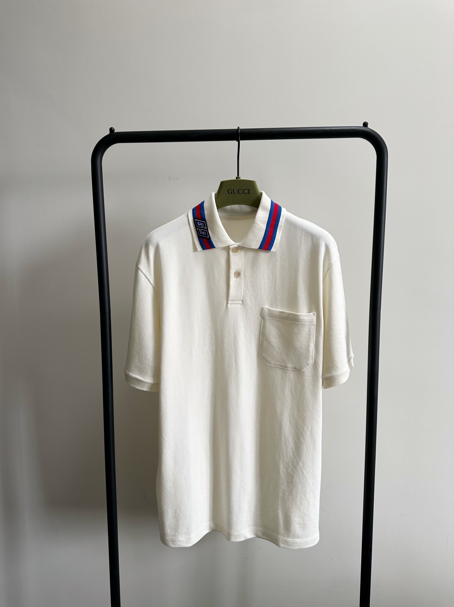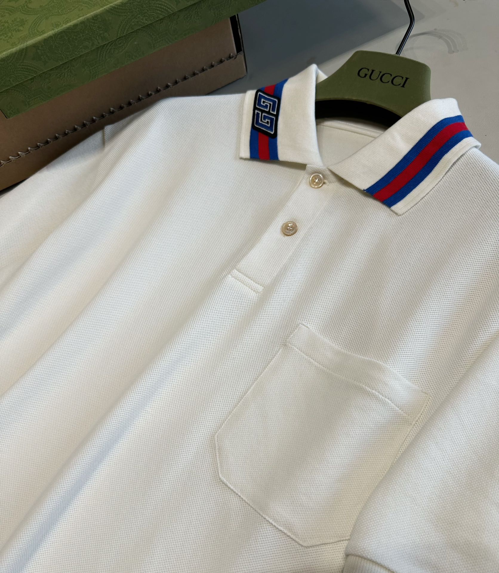 구찌 코튼 피케 스퀘어 GG 폴로 셔츠 오프 화이트