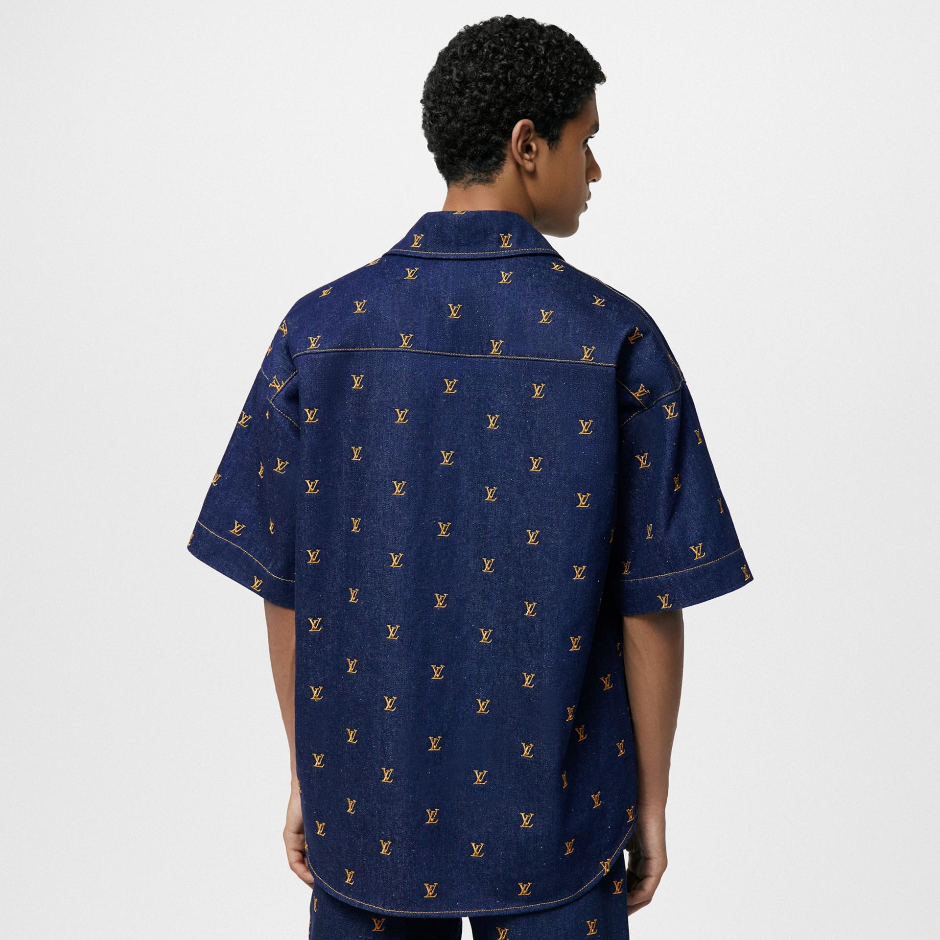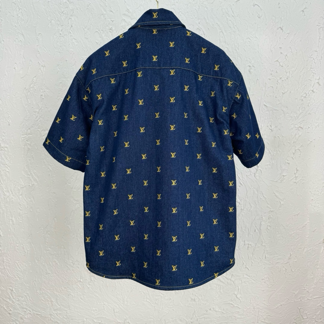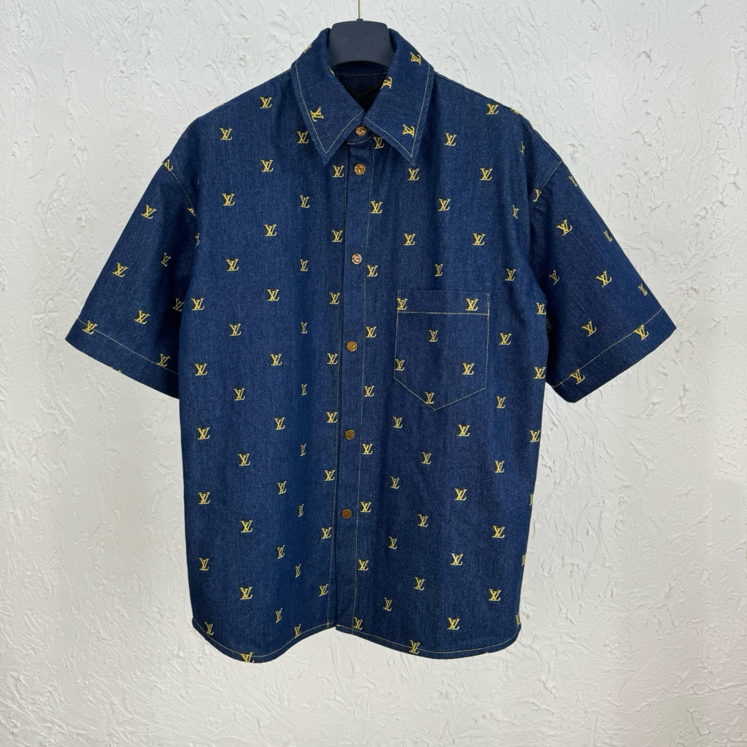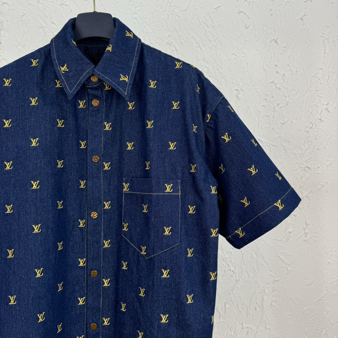 루이비통 엠브로이더리 시그니처 숏 슬리브 데님 셔츠 1AFJDU