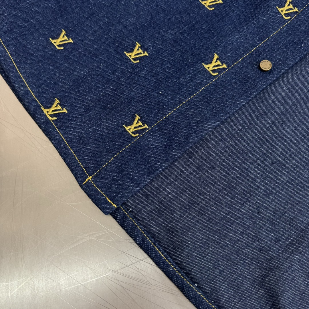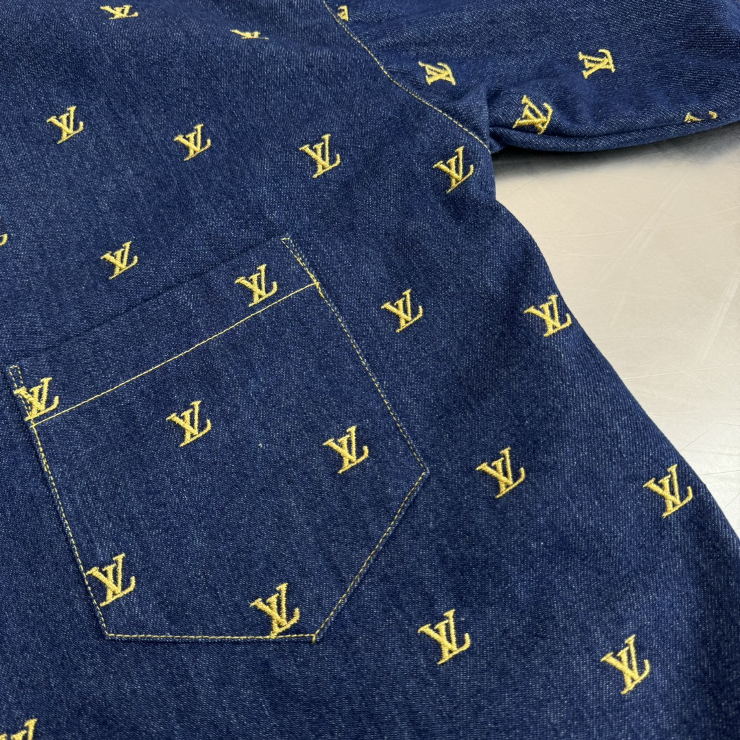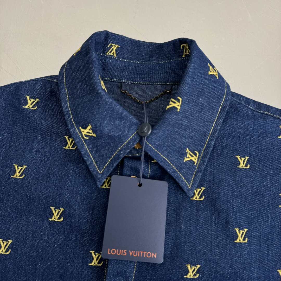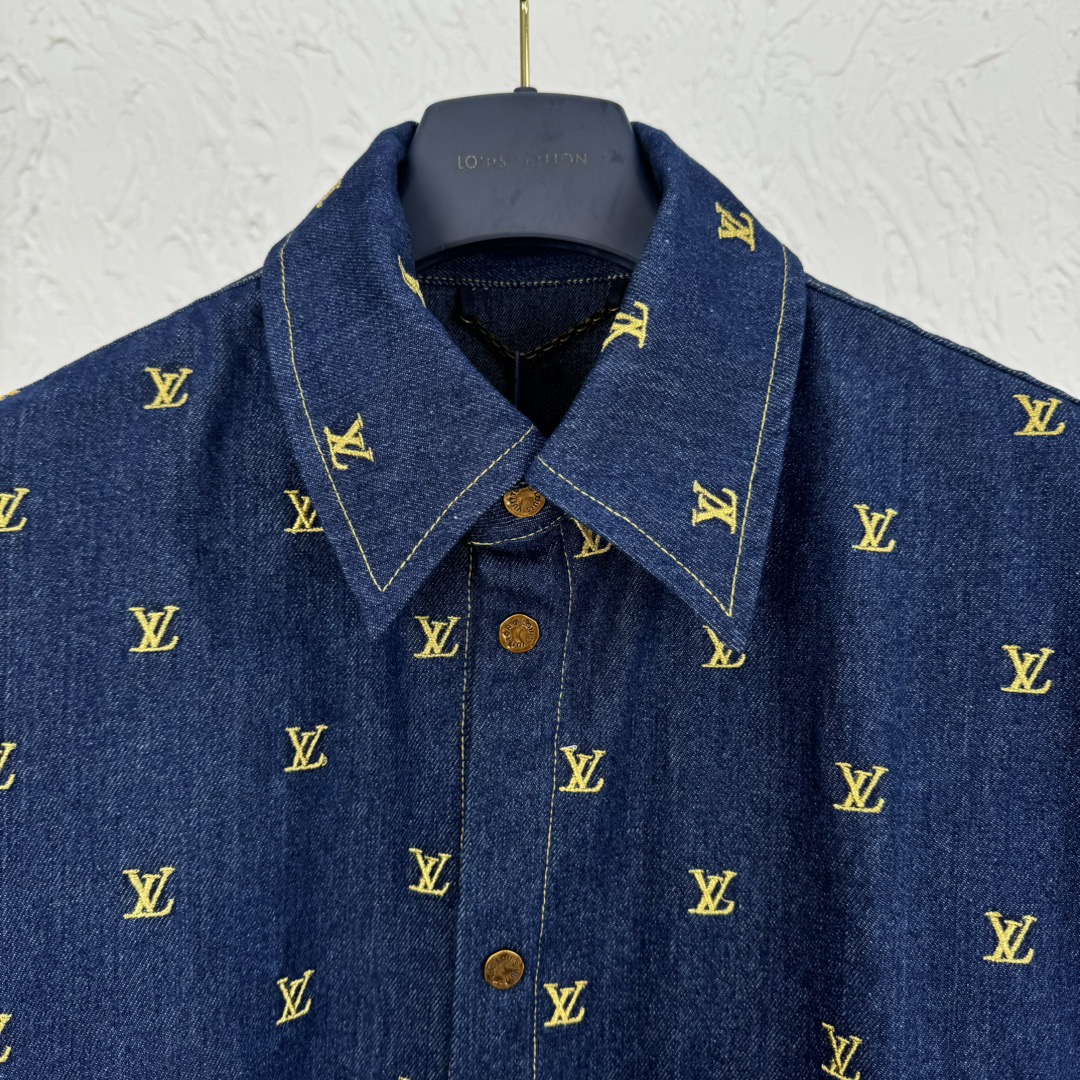 루이비통 엠브로이더리 시그니처 숏 슬리브 데님 셔츠 1AFJDU
