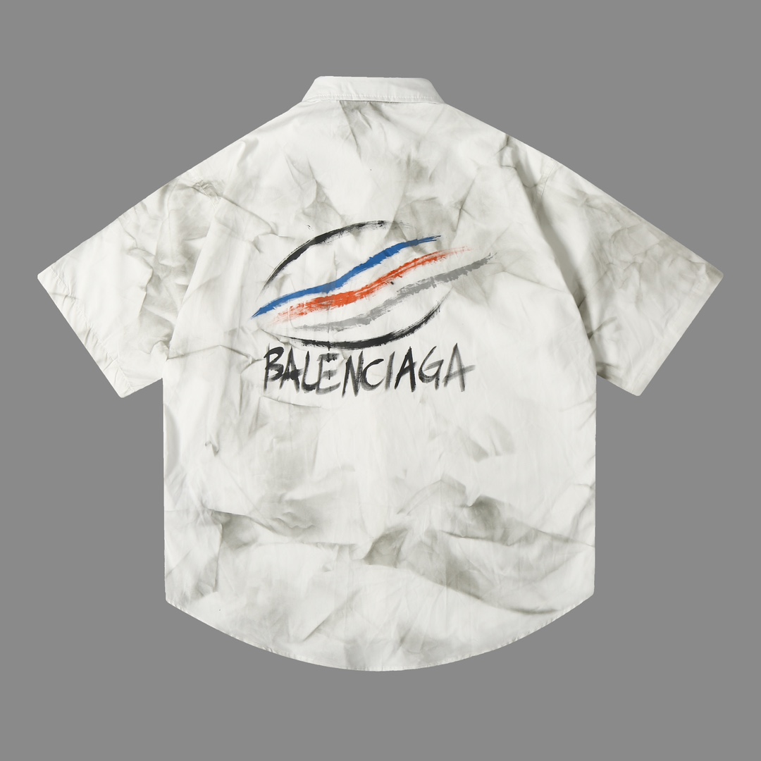 발렌시아가 워싱 더블 쉬폰 반팔 셔츠 화이트