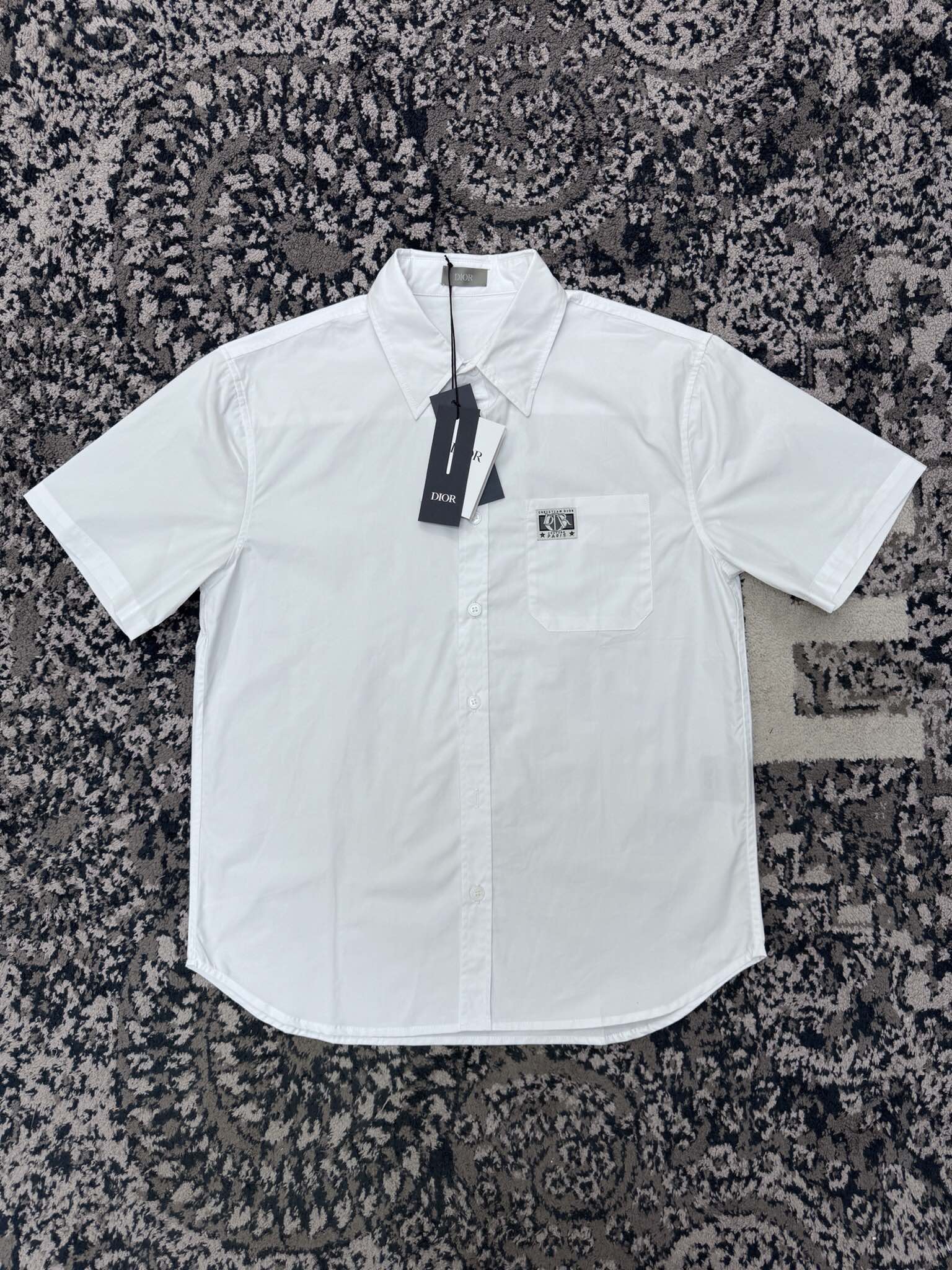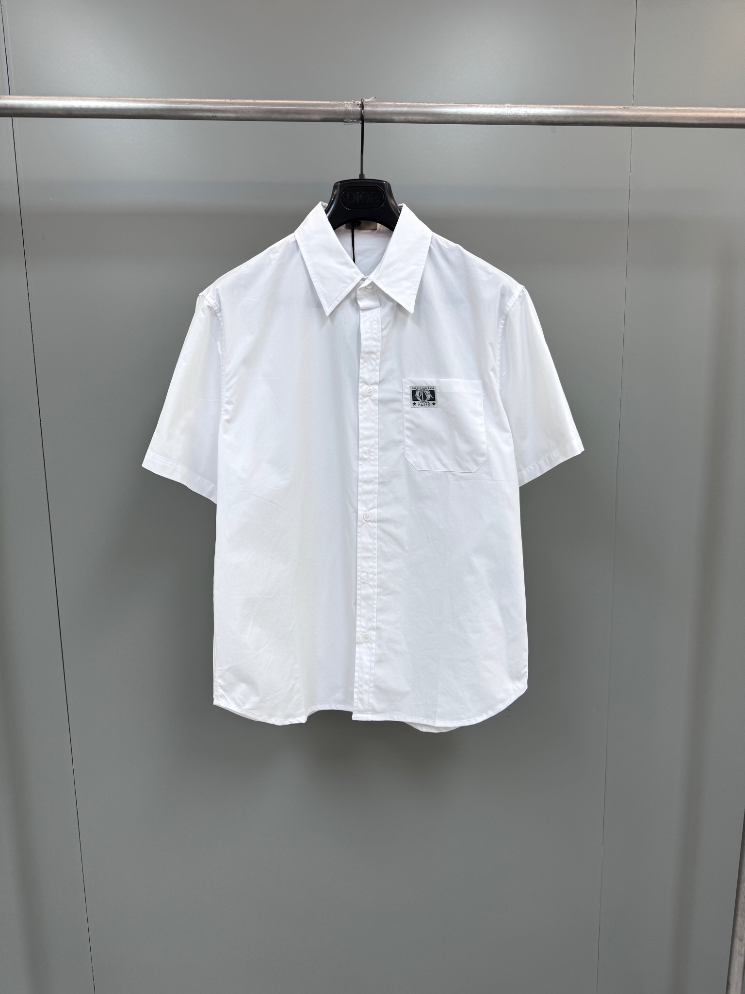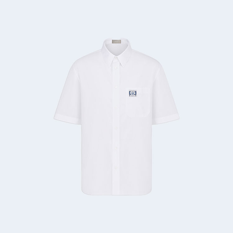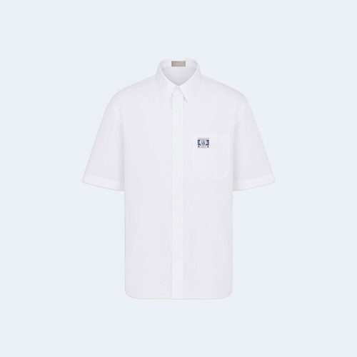 디올 코튼 포플린 참 반소매 셔츠 화이트