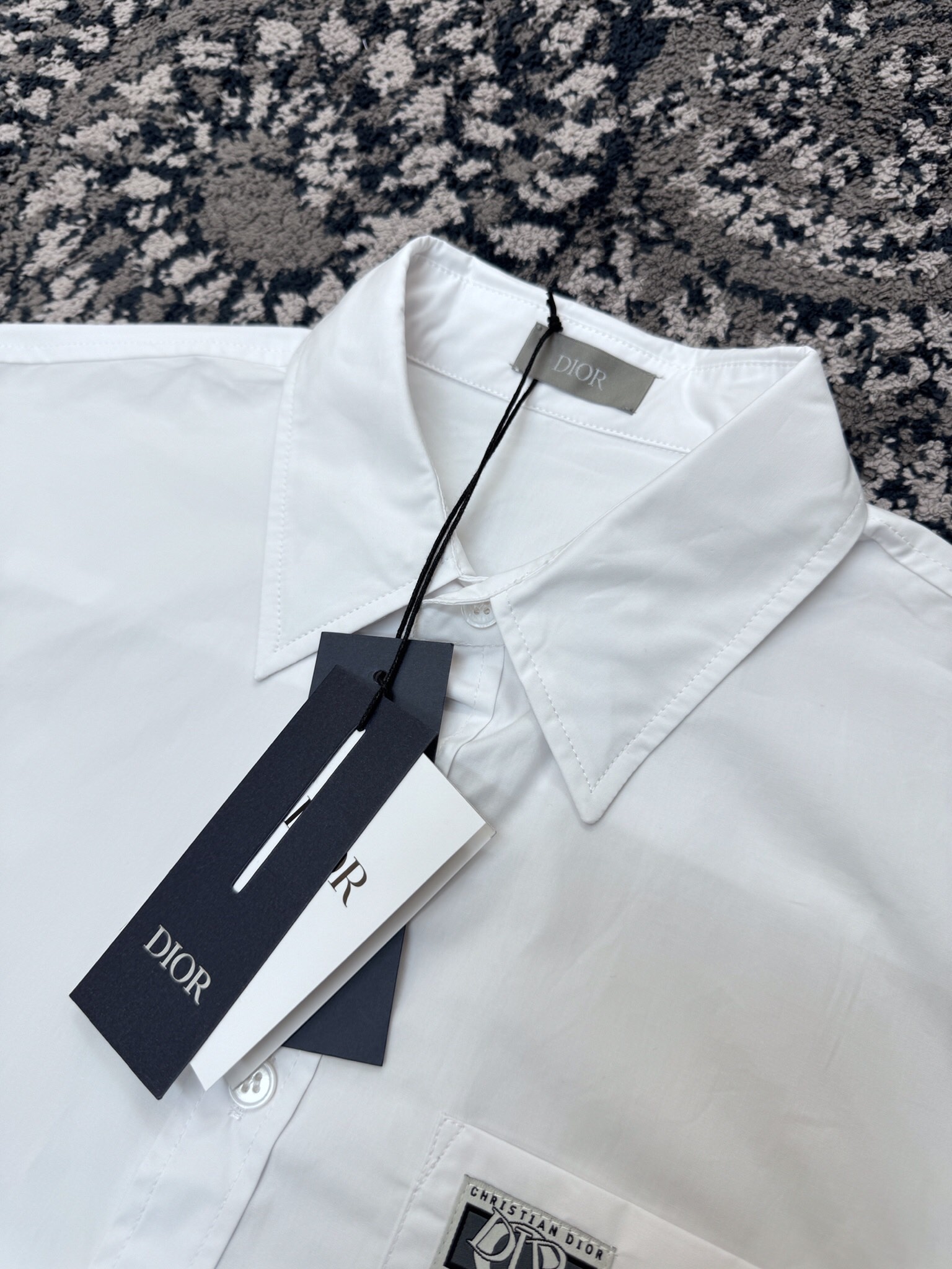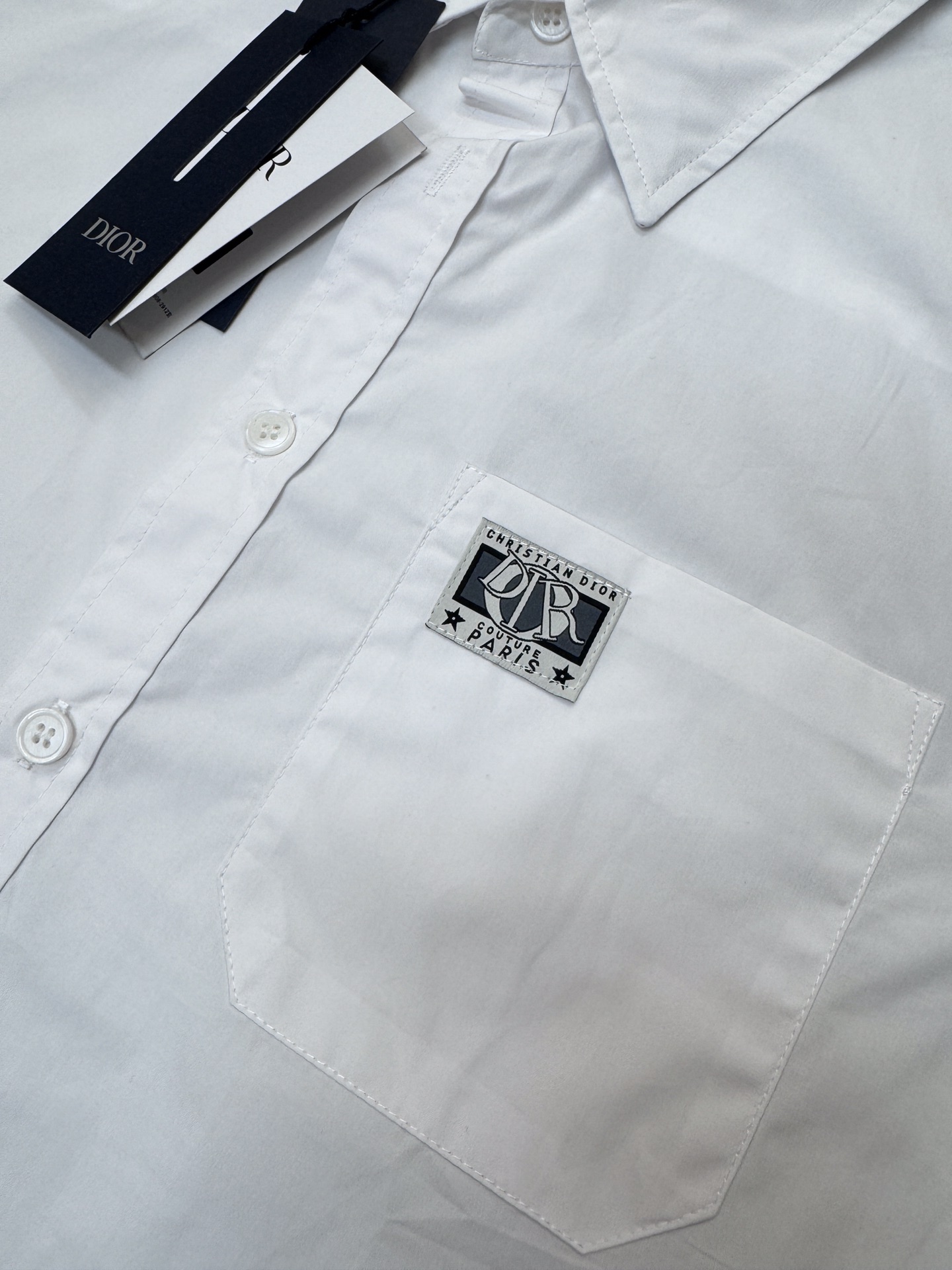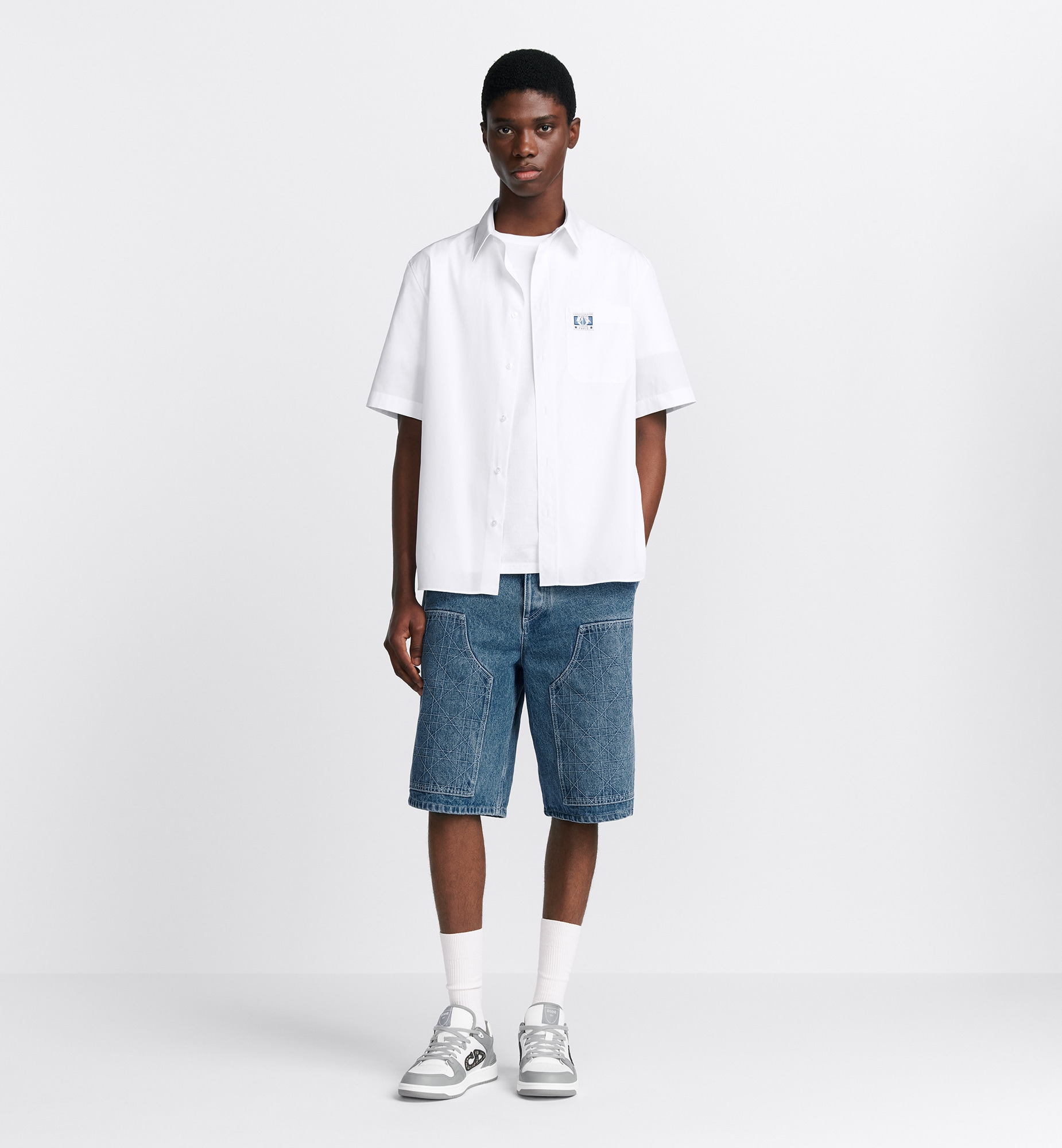 디올 코튼 포플린 참 반소매 셔츠 화이트