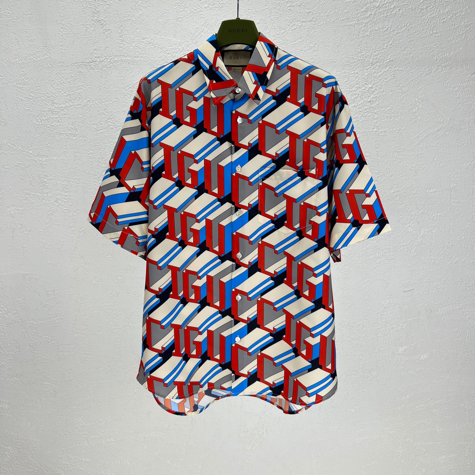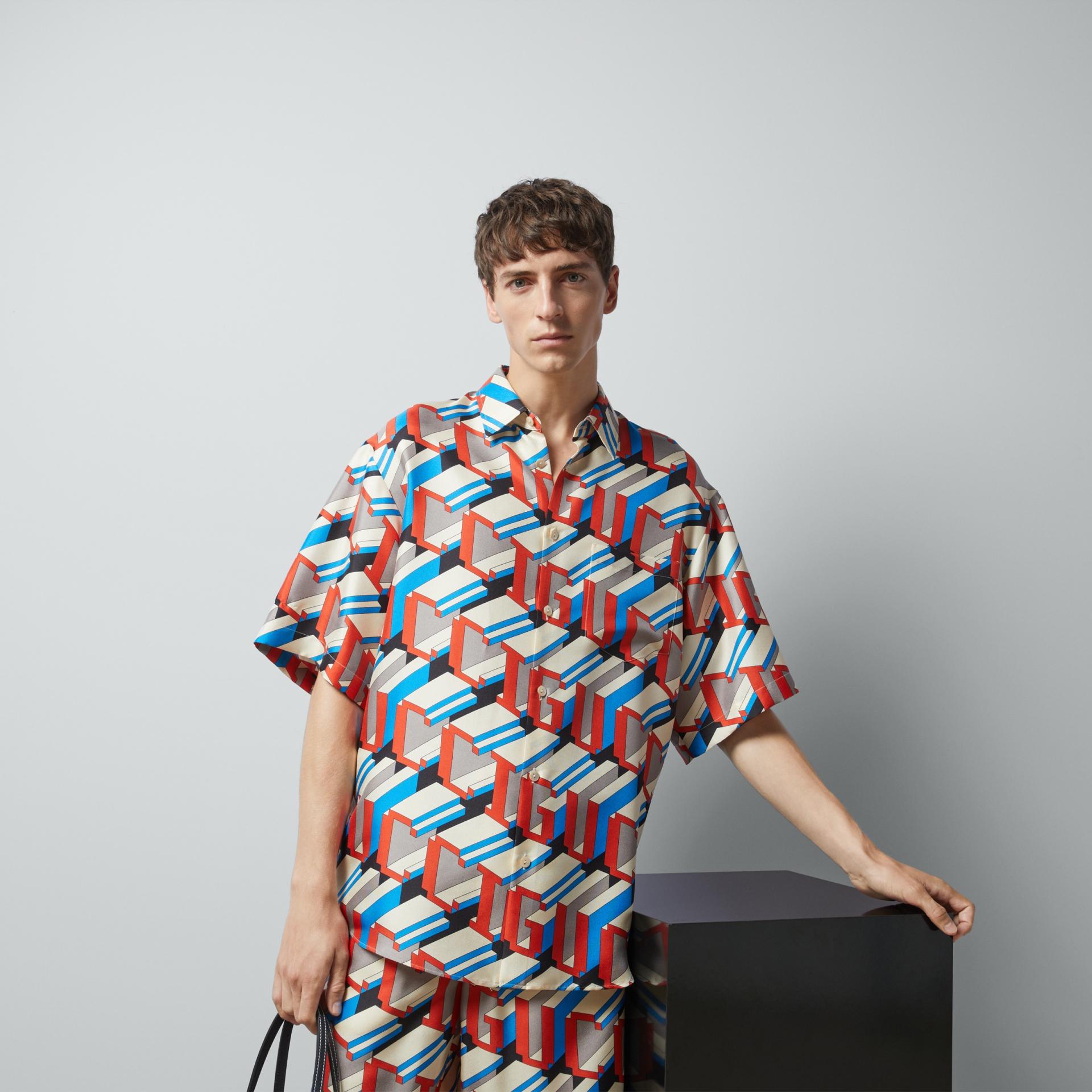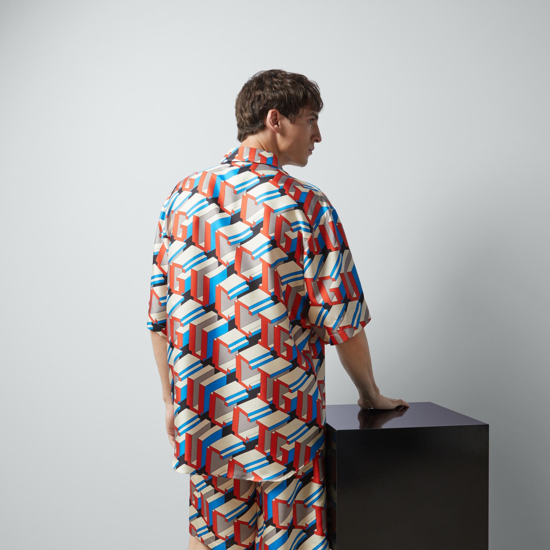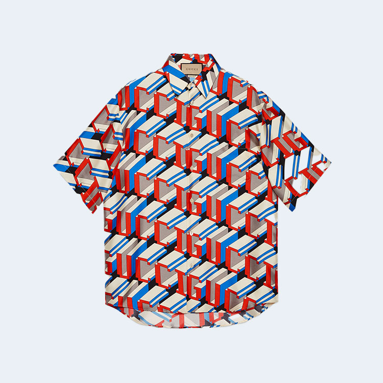 구찌 픽셀 프린트 실크 셔츠