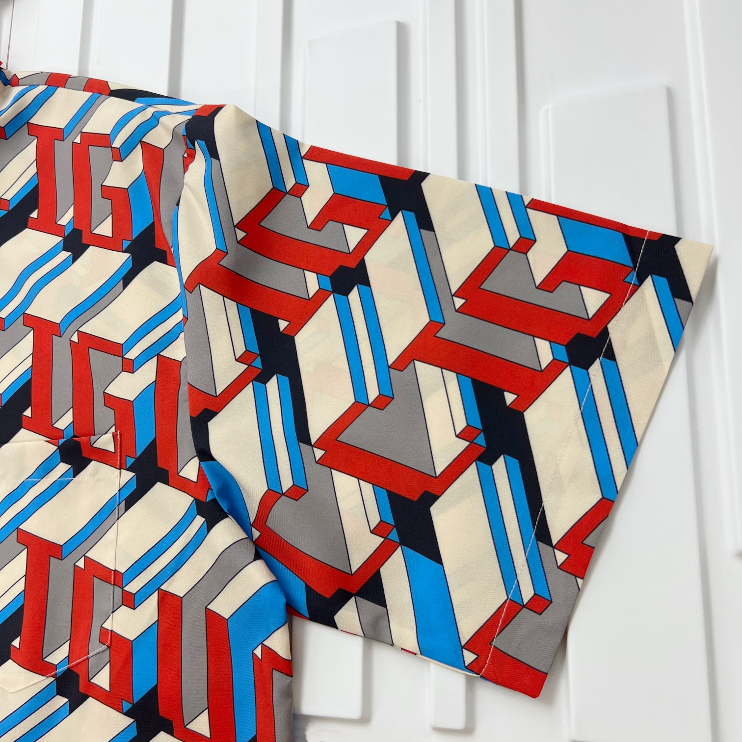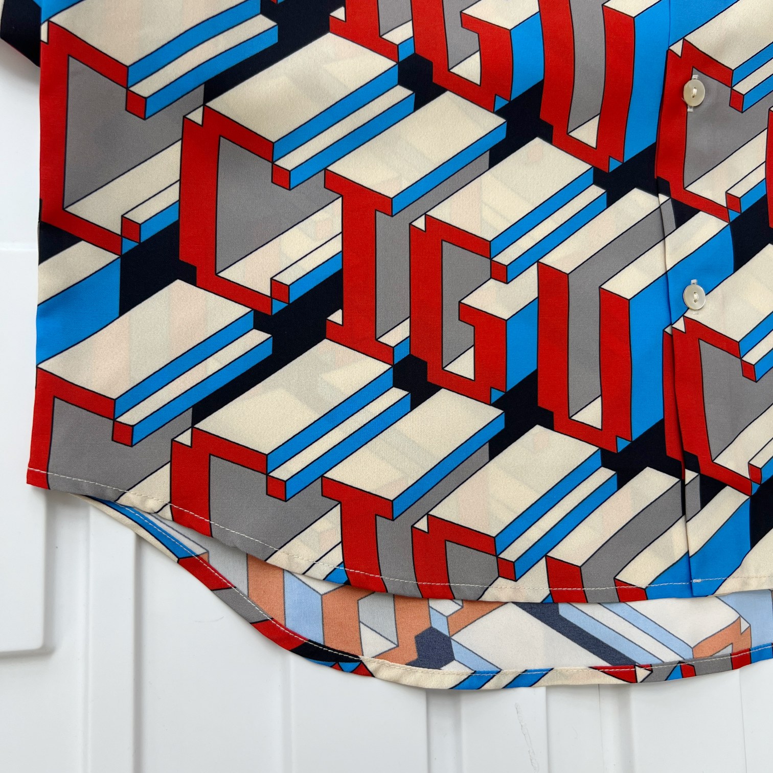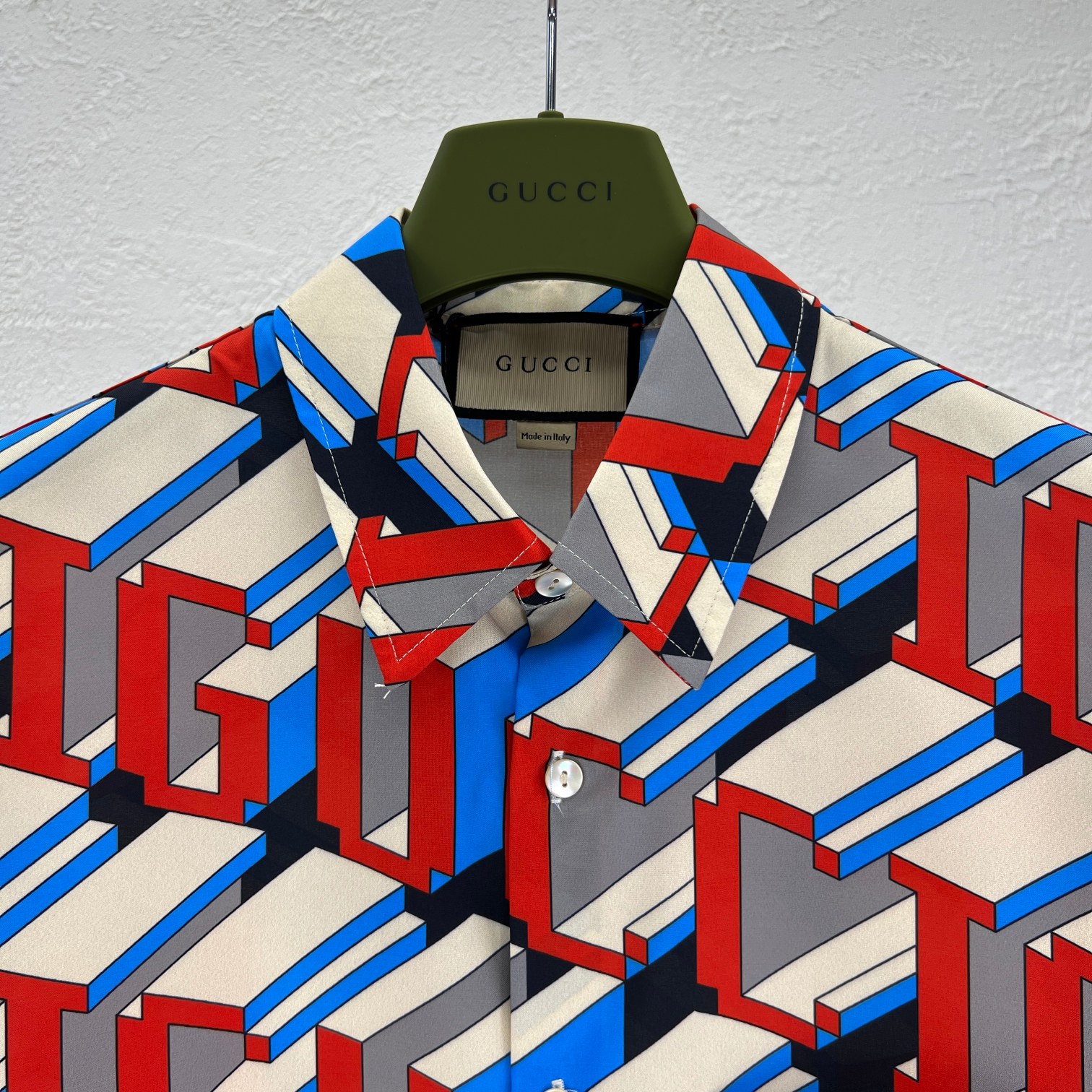 구찌 픽셀 프린트 실크 셔츠