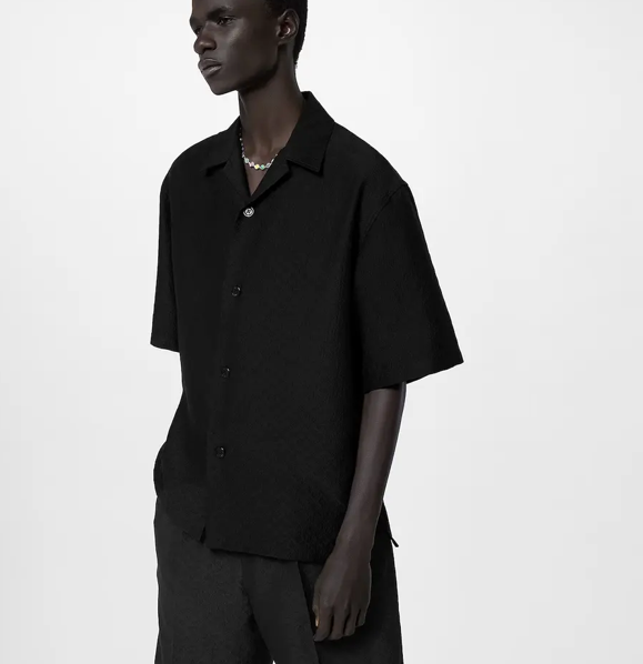 루이비통 모노그램 플로럴 자수 블랙 반팔 셔츠