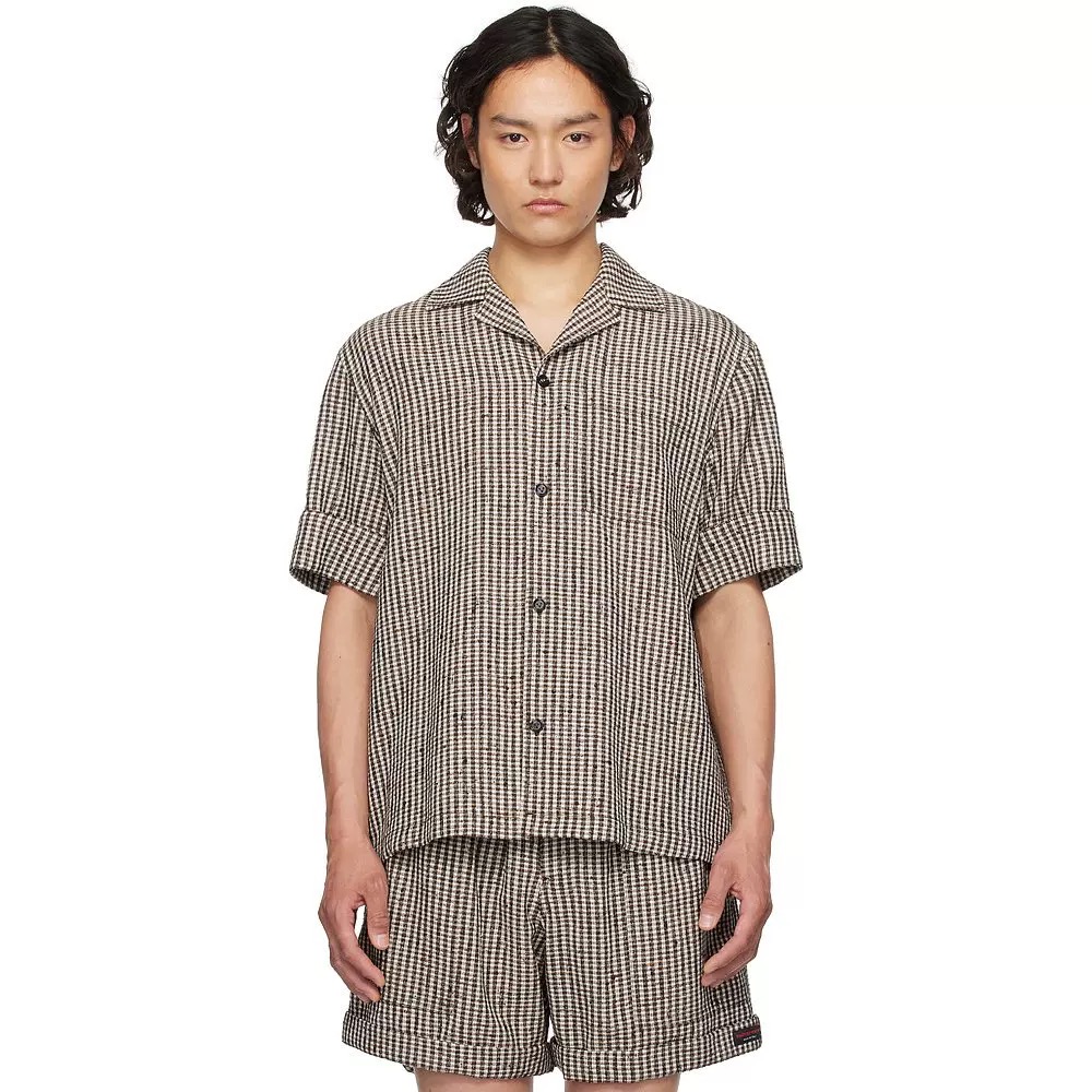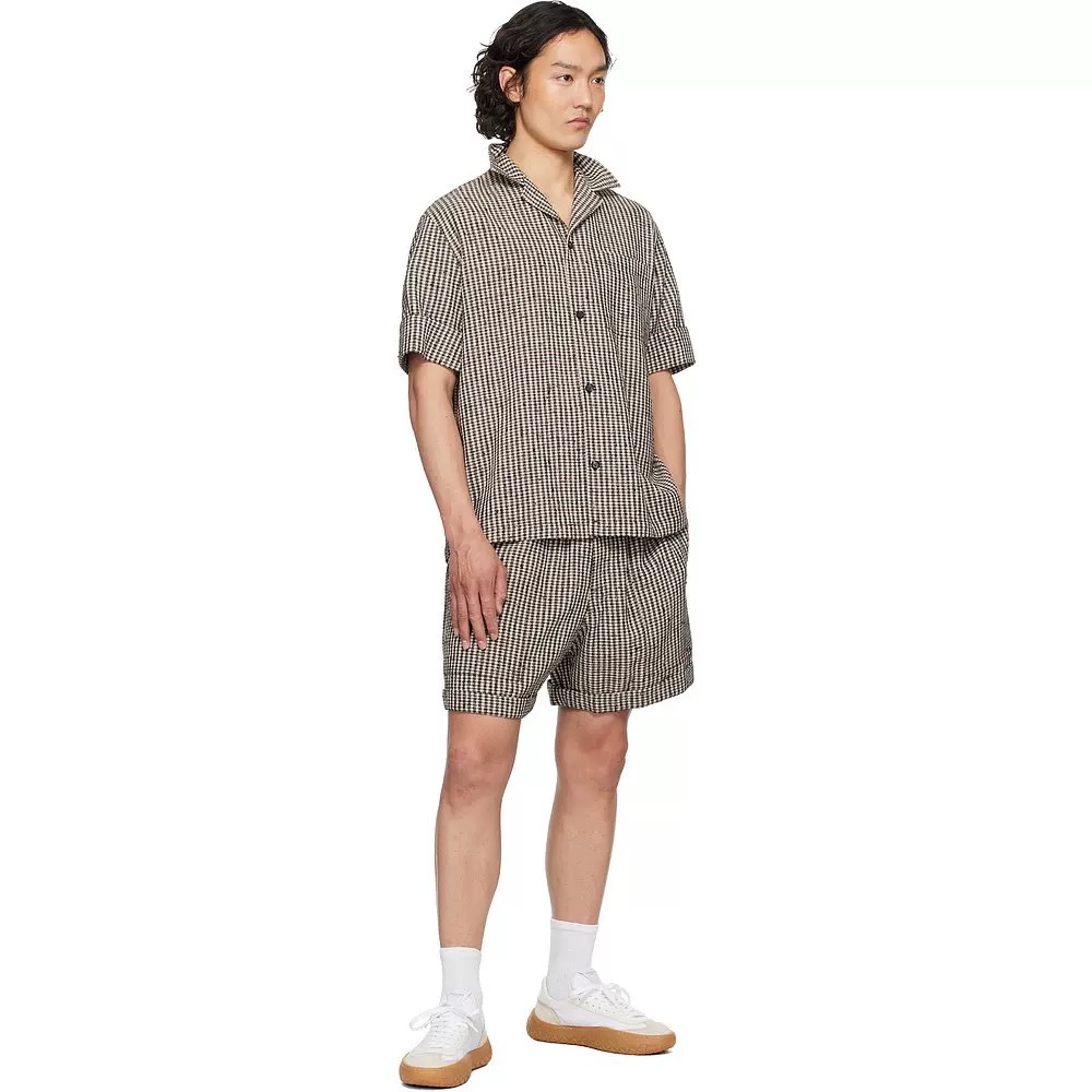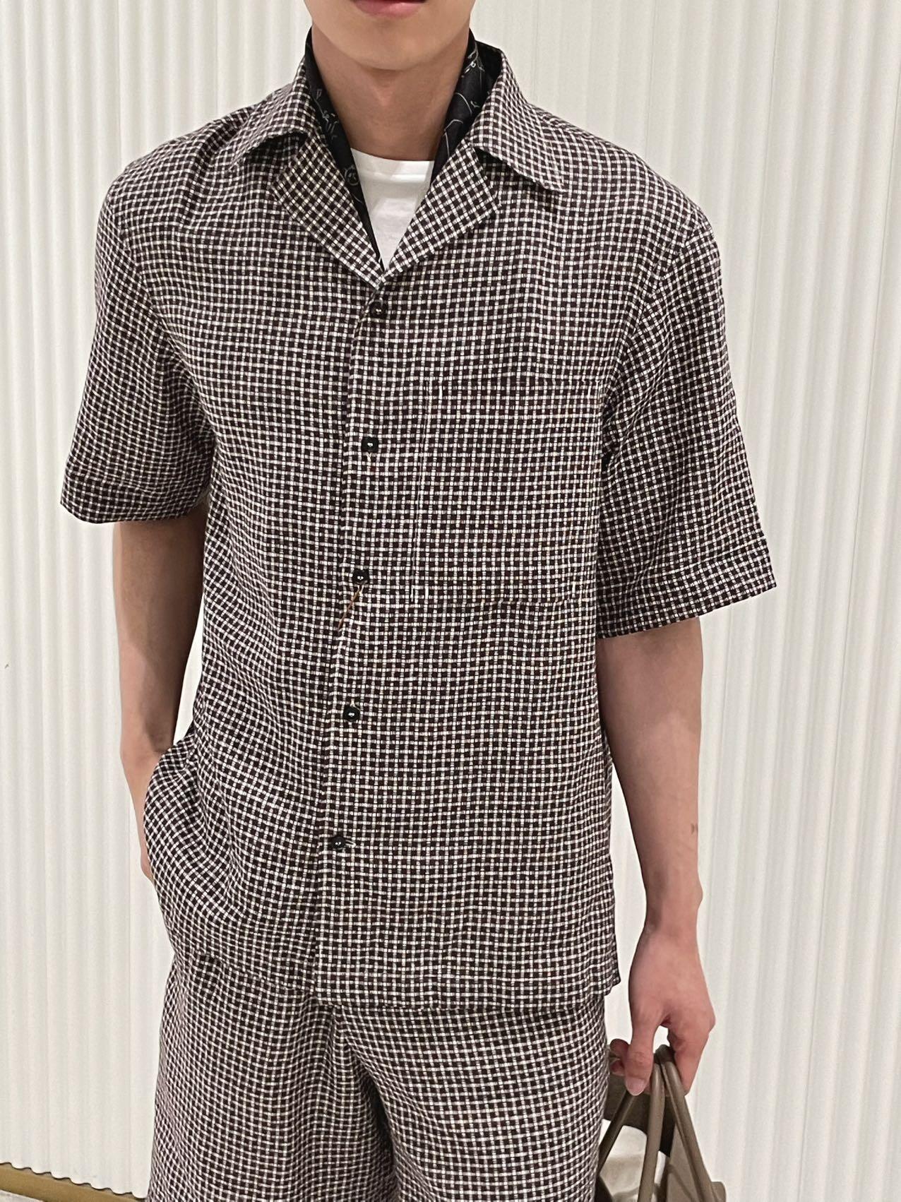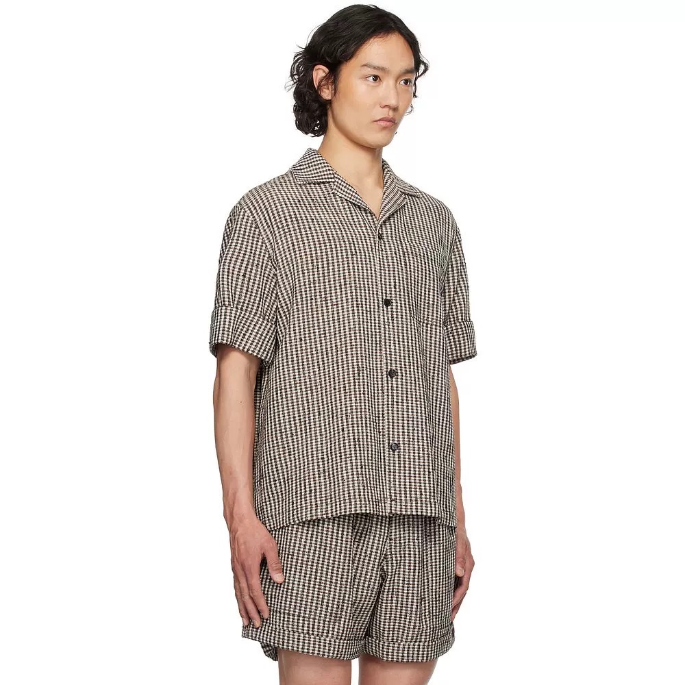 보테가베네타 노티드 비스코스 체크 반팔 셔츠