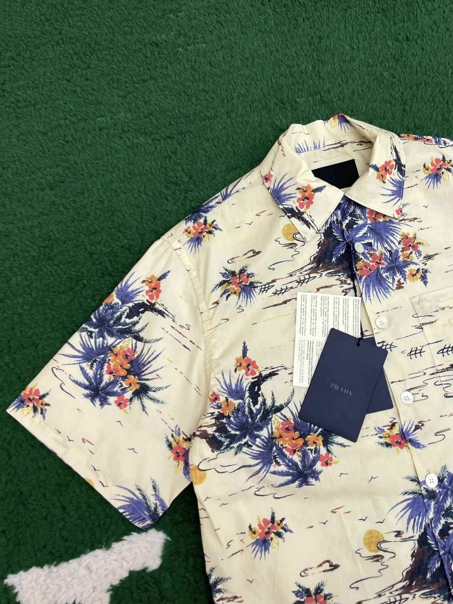 프라다 선셋 코튼 하와이안 볼링 셔츠