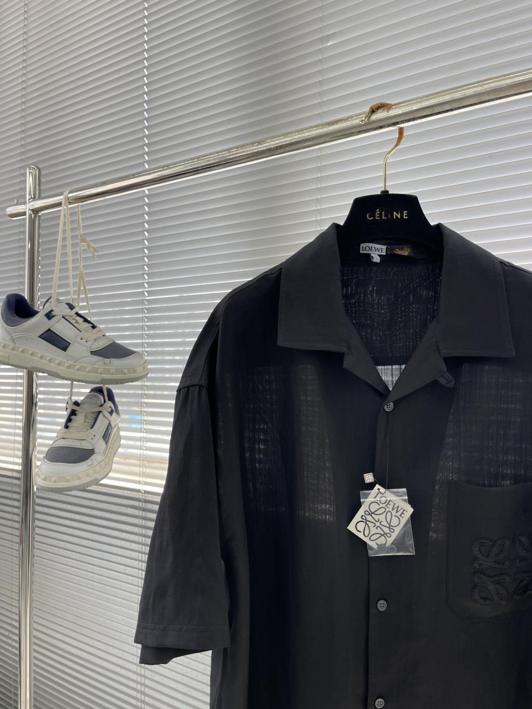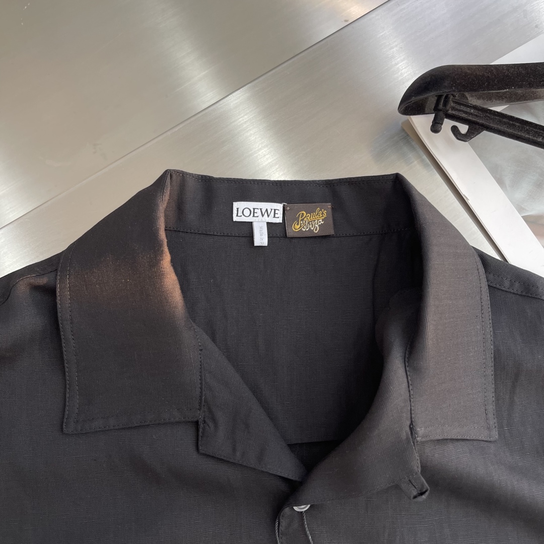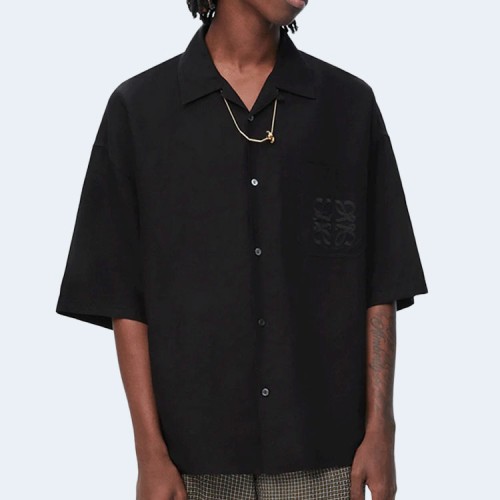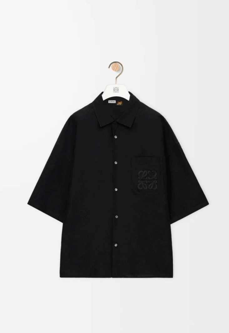 로에베 비스코스 린넨 반팔 셔츠 블랙