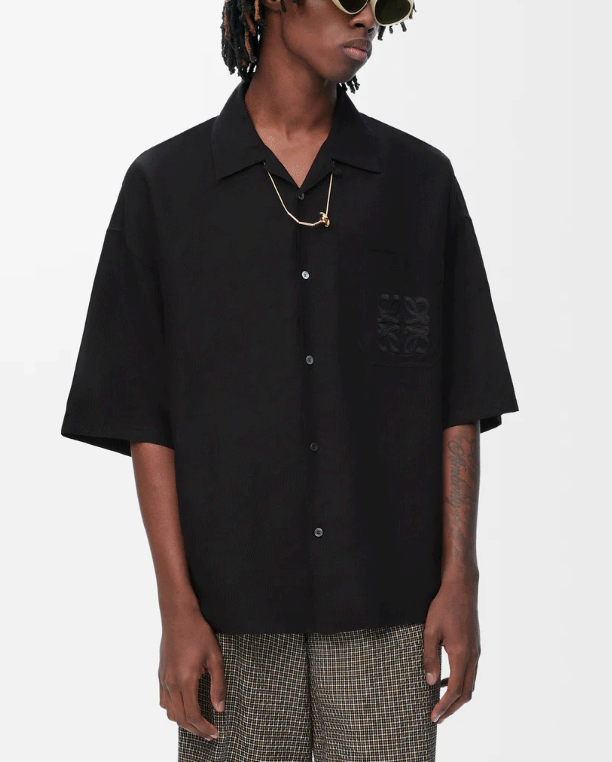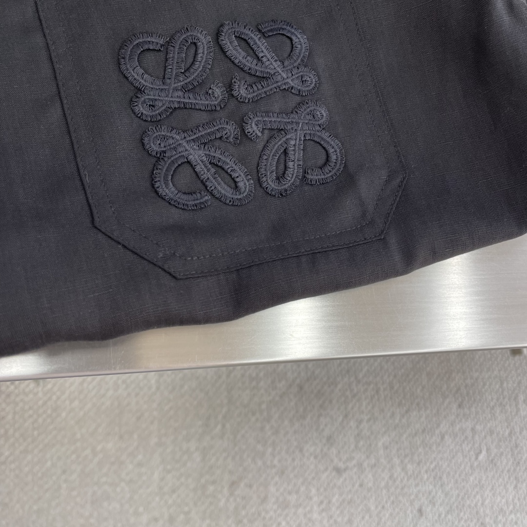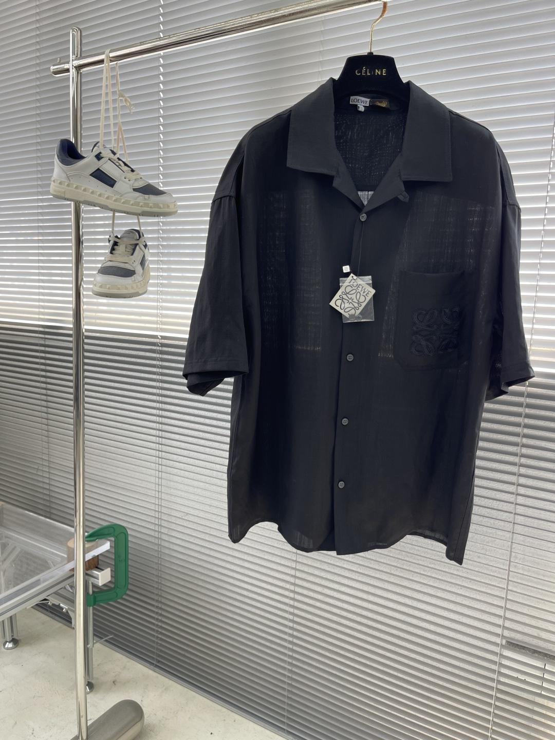 로에베 비스코스 린넨 반팔 셔츠 블랙