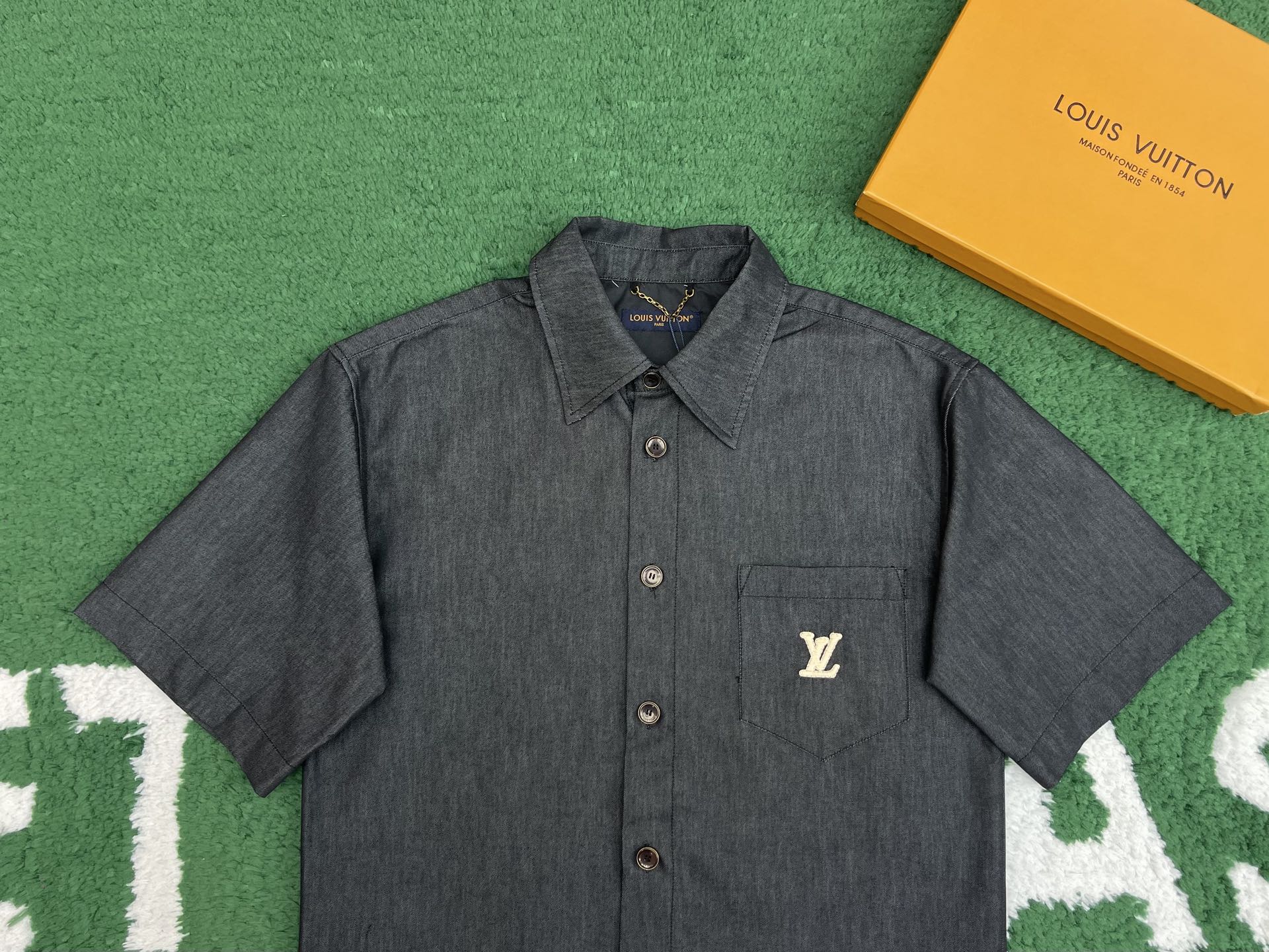루이비통 카미아 샴브레이 인디고 데님 반팔 셔츠