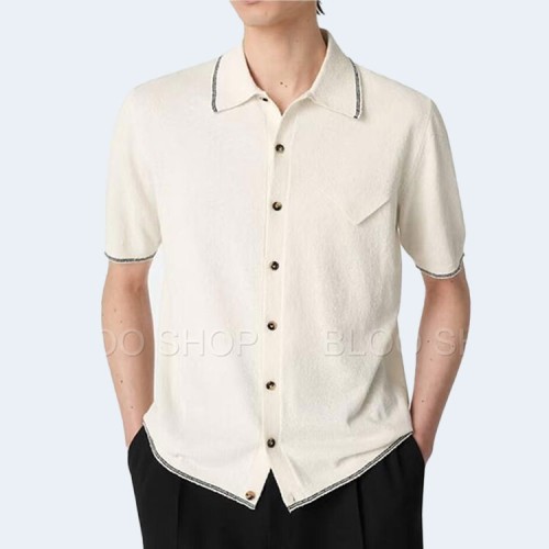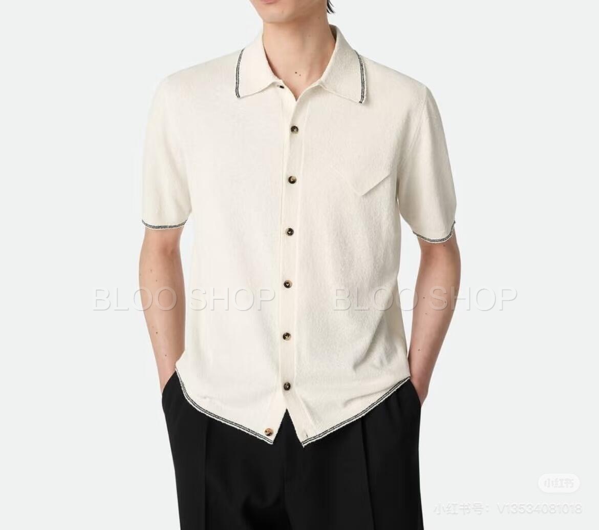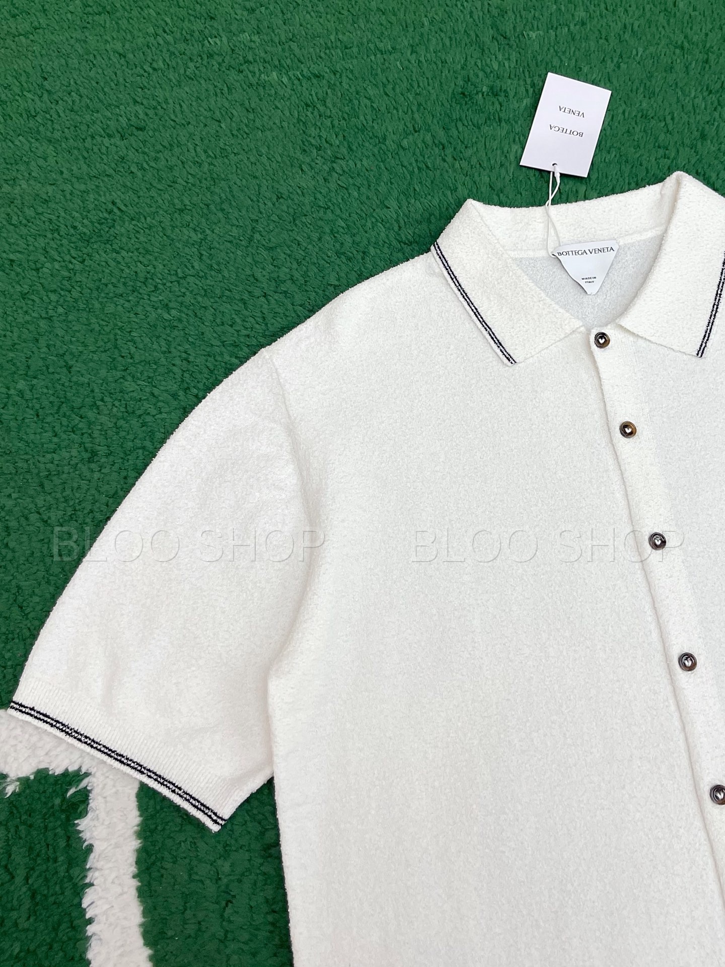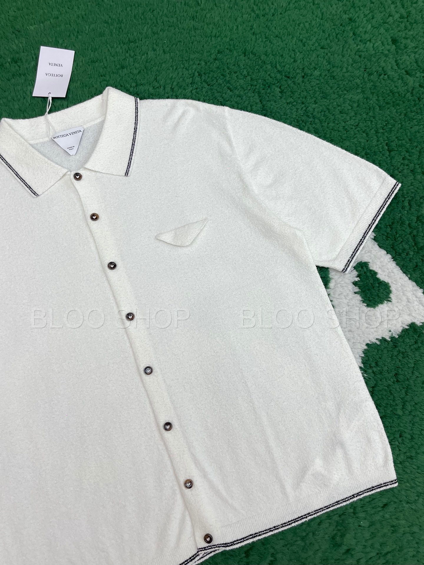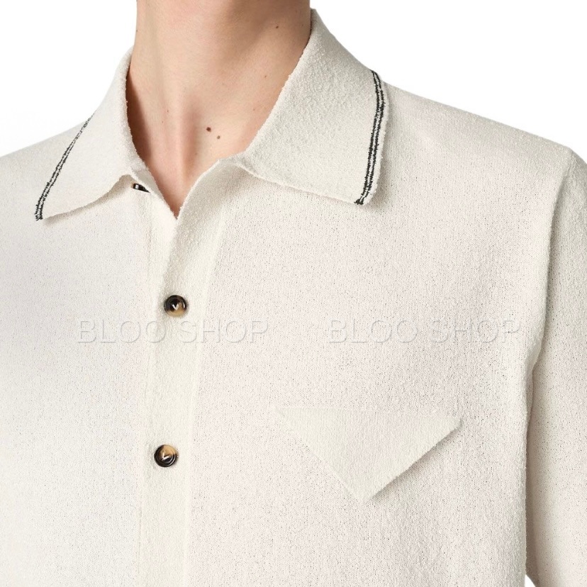 보테가 베네타 코튼 부클레 반팔 셔츠 화이트