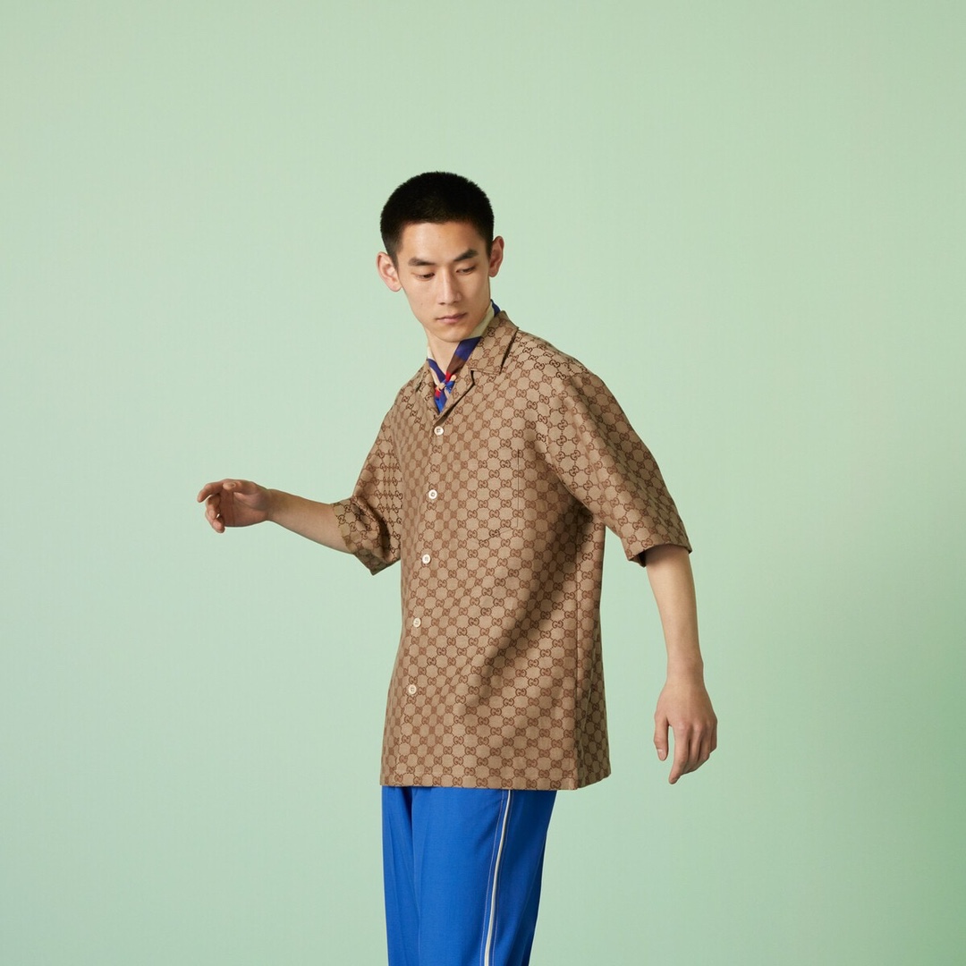 구찌 라벨 코튼 폴리에스테르 셔츠