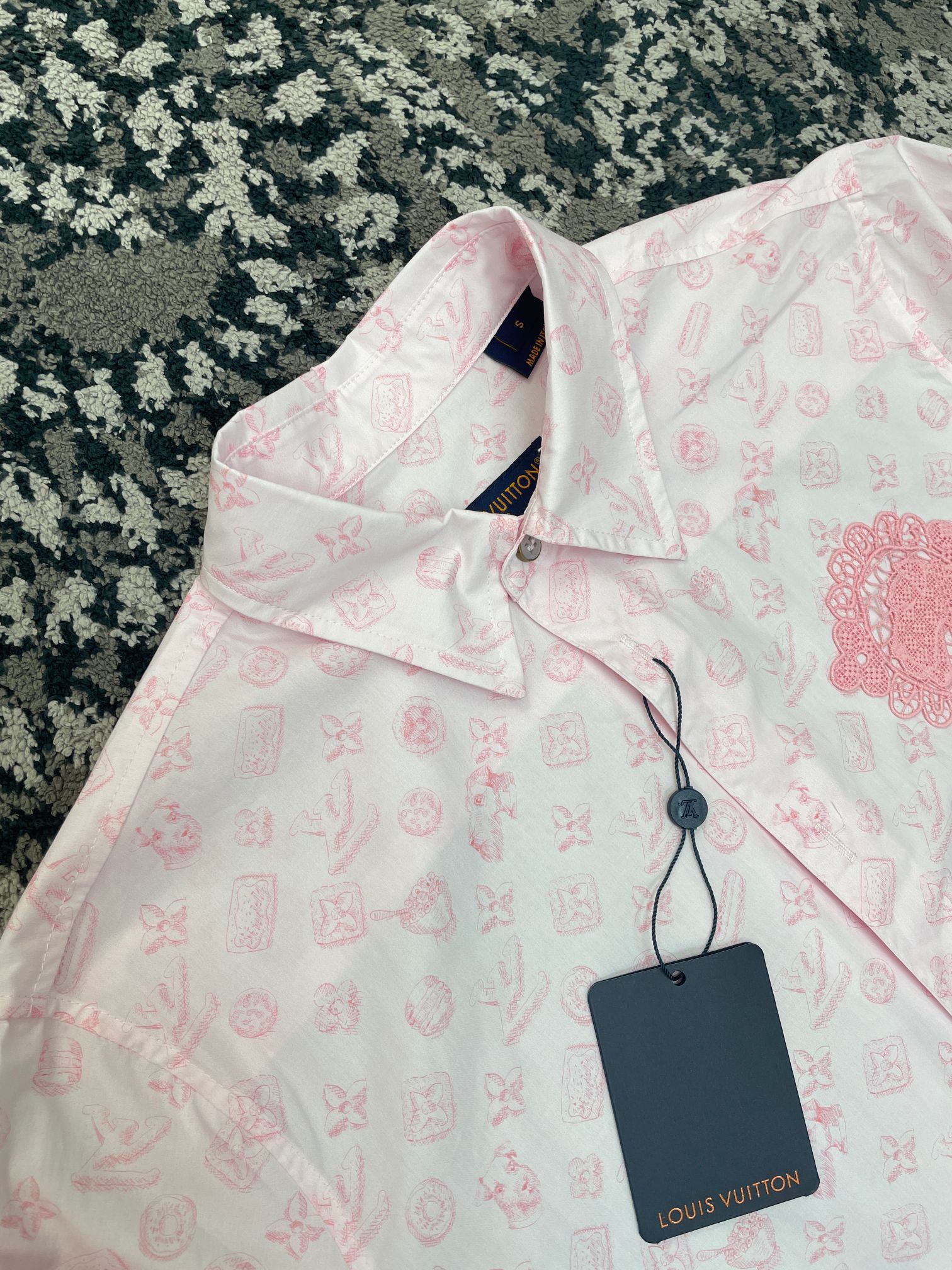 루이비통 모노그램 프린티드 롱 슬리브드 코튼 셔츠 1AFPZU