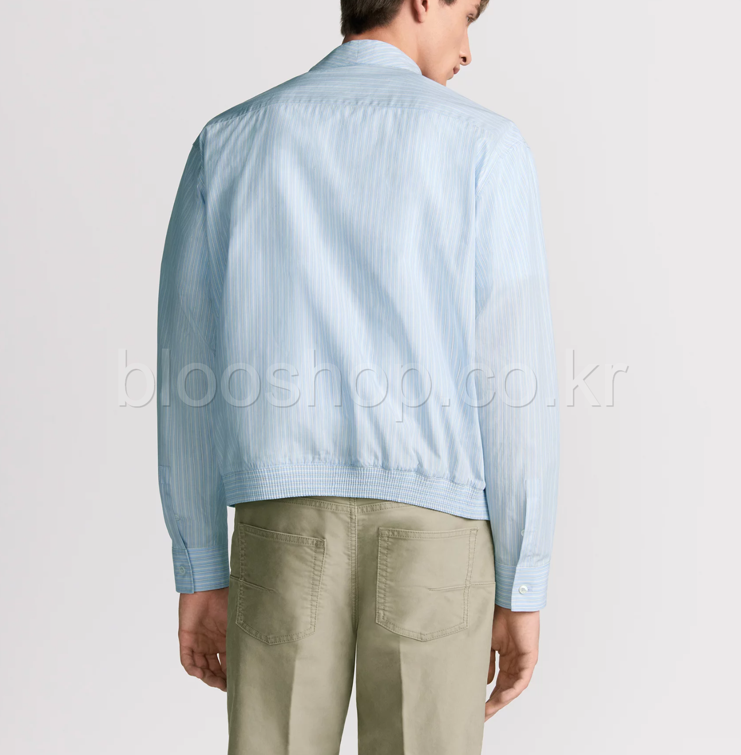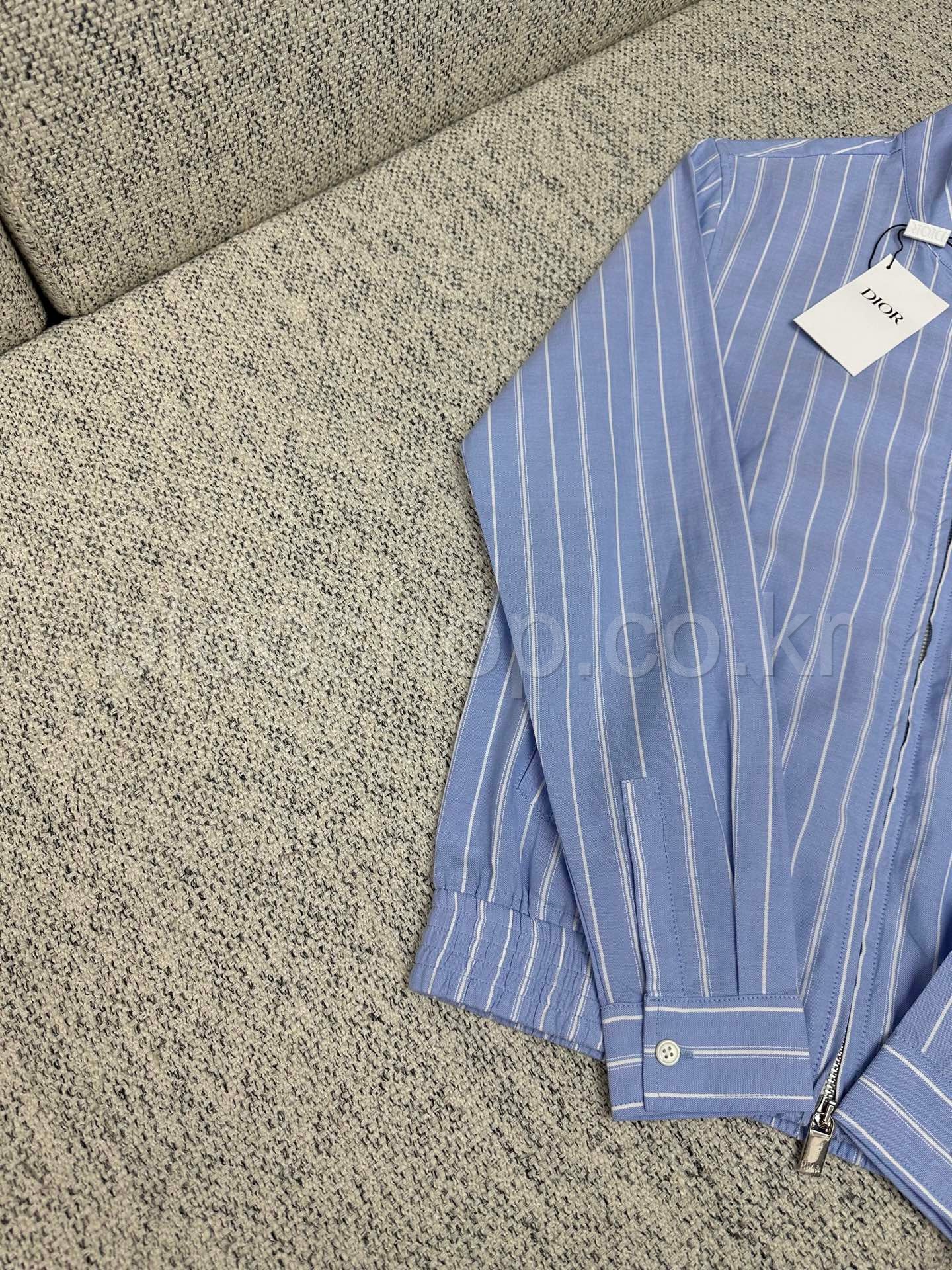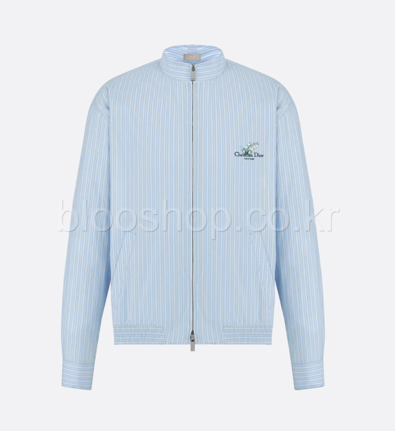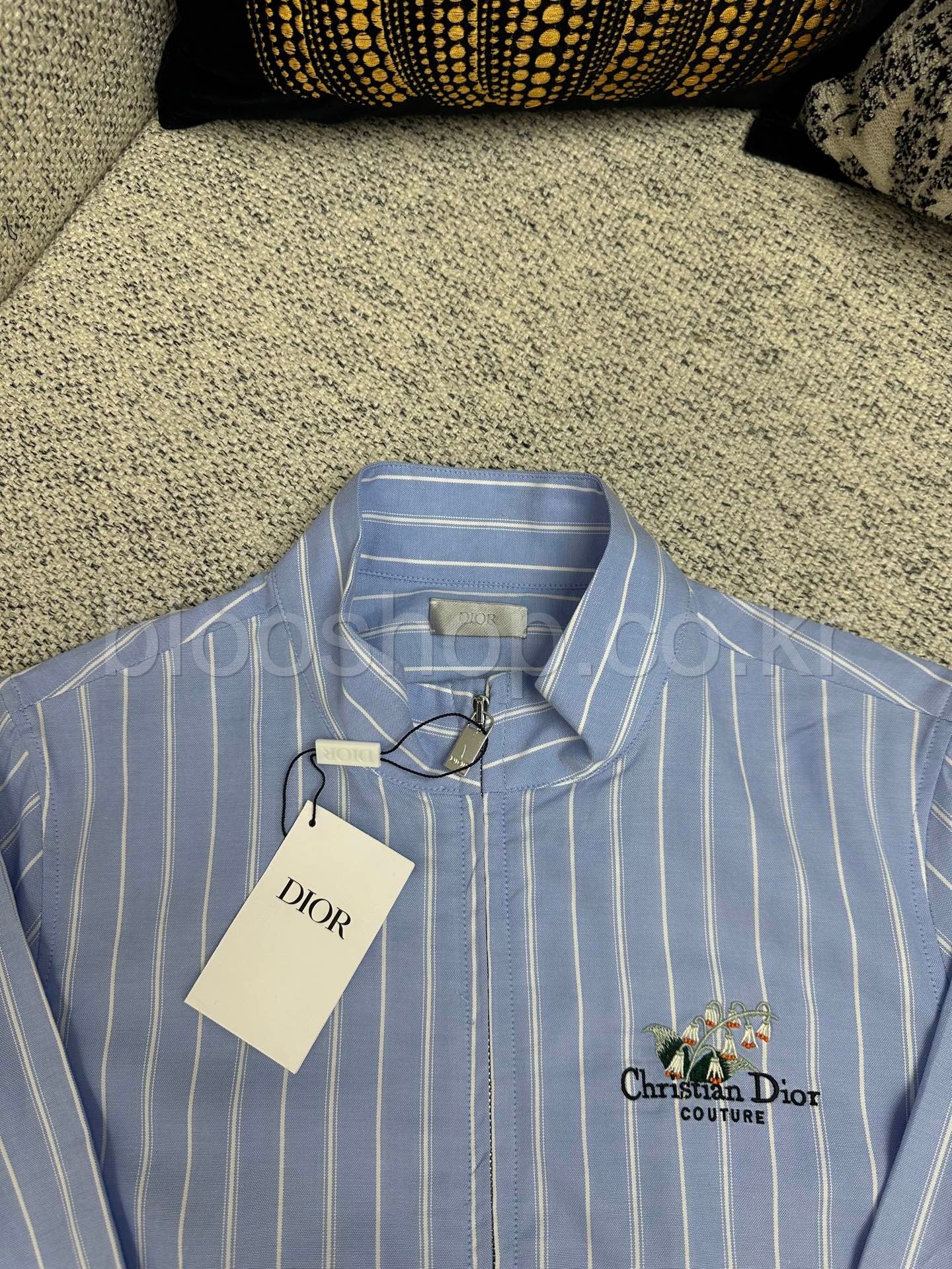 디올 크리스찬 디올 Couture 은방울꽃 자수 지퍼 셔츠 블루 스트라이프