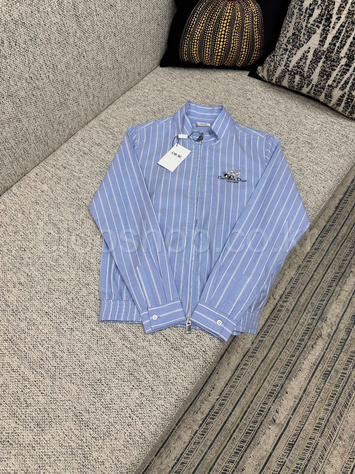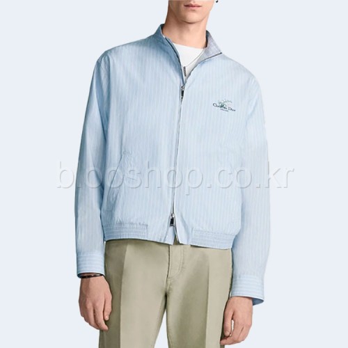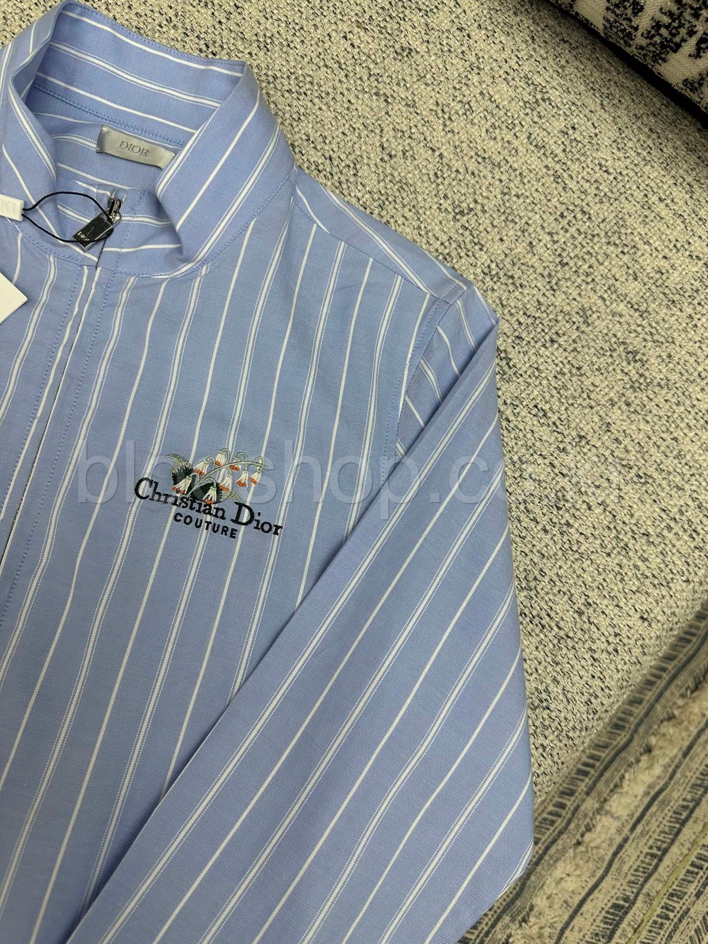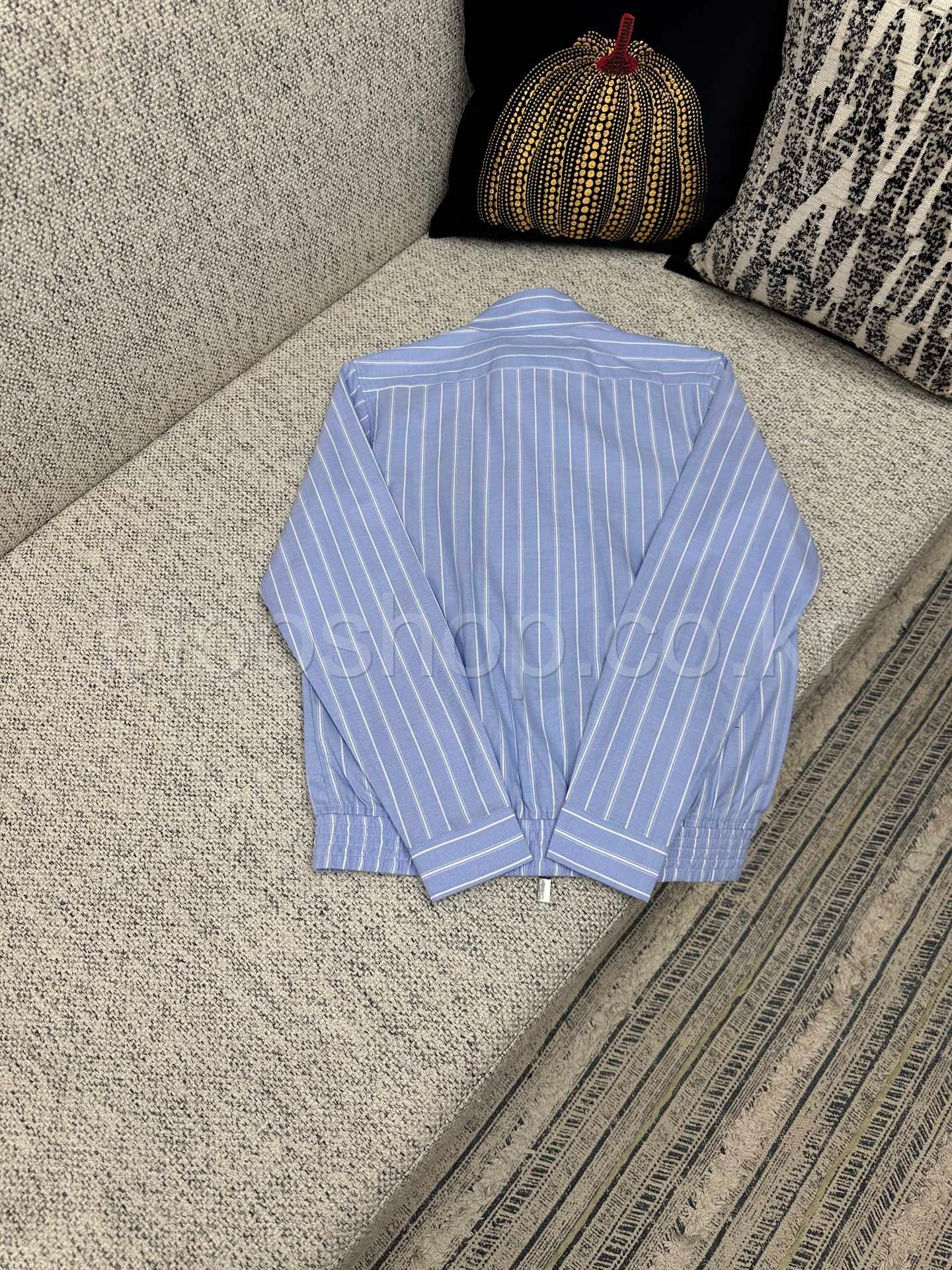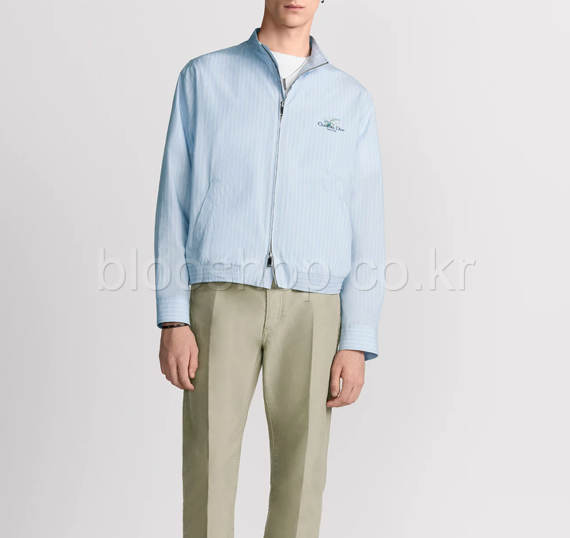 디올 크리스찬 디올 Couture 은방울꽃 자수 지퍼 셔츠 블루 스트라이프