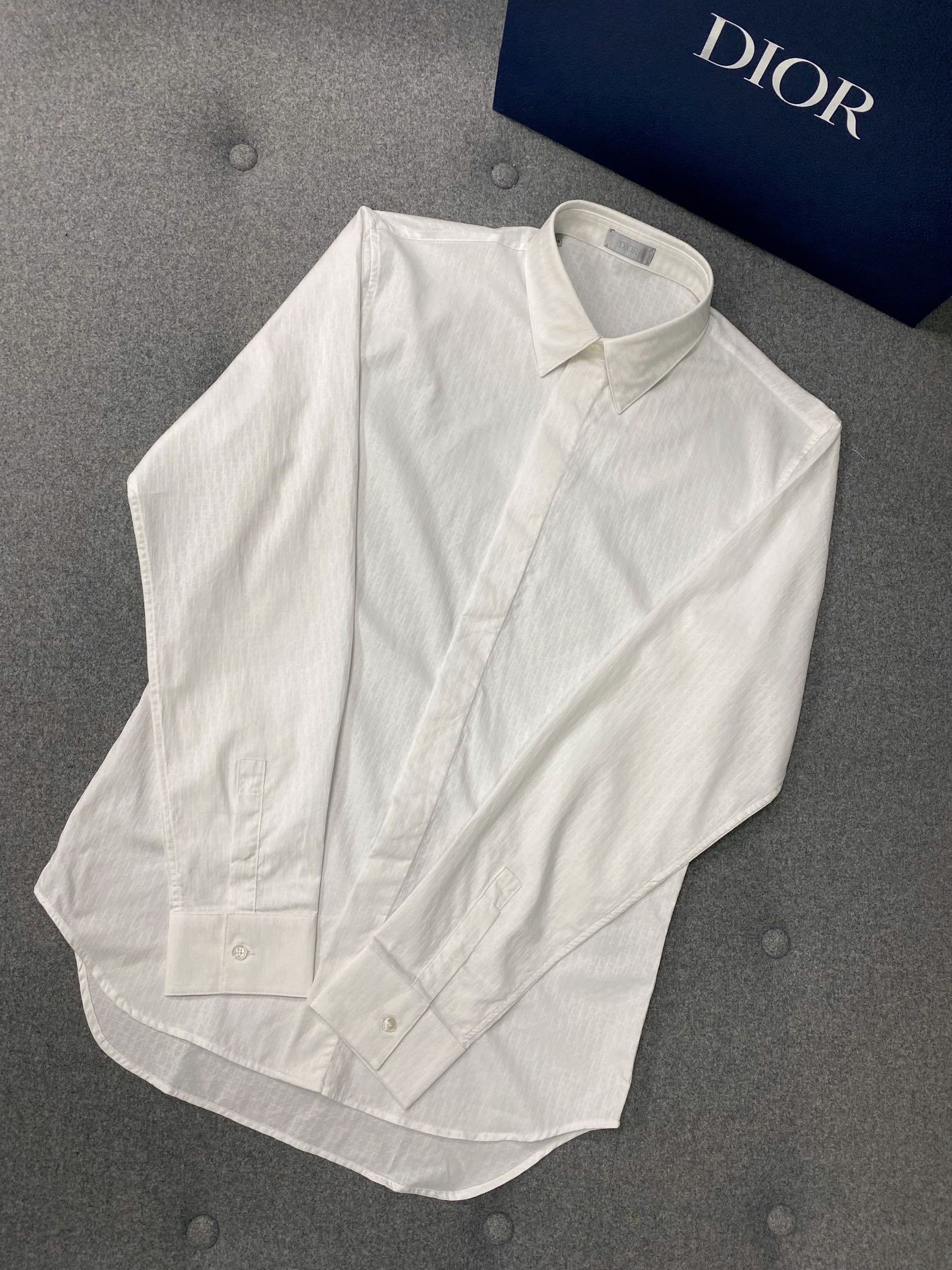 디올 오블리크 자카드 화이트 코튼 셔츠