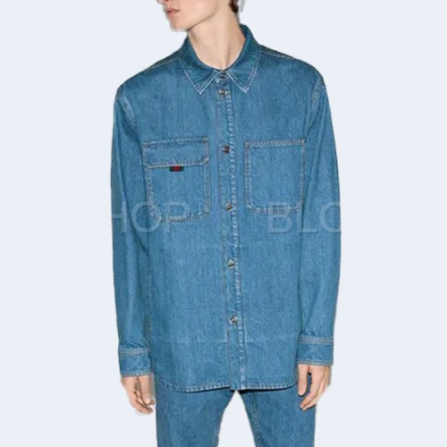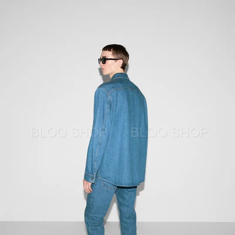 구찌 릴렉스드 핏 데님 셔츠 블루