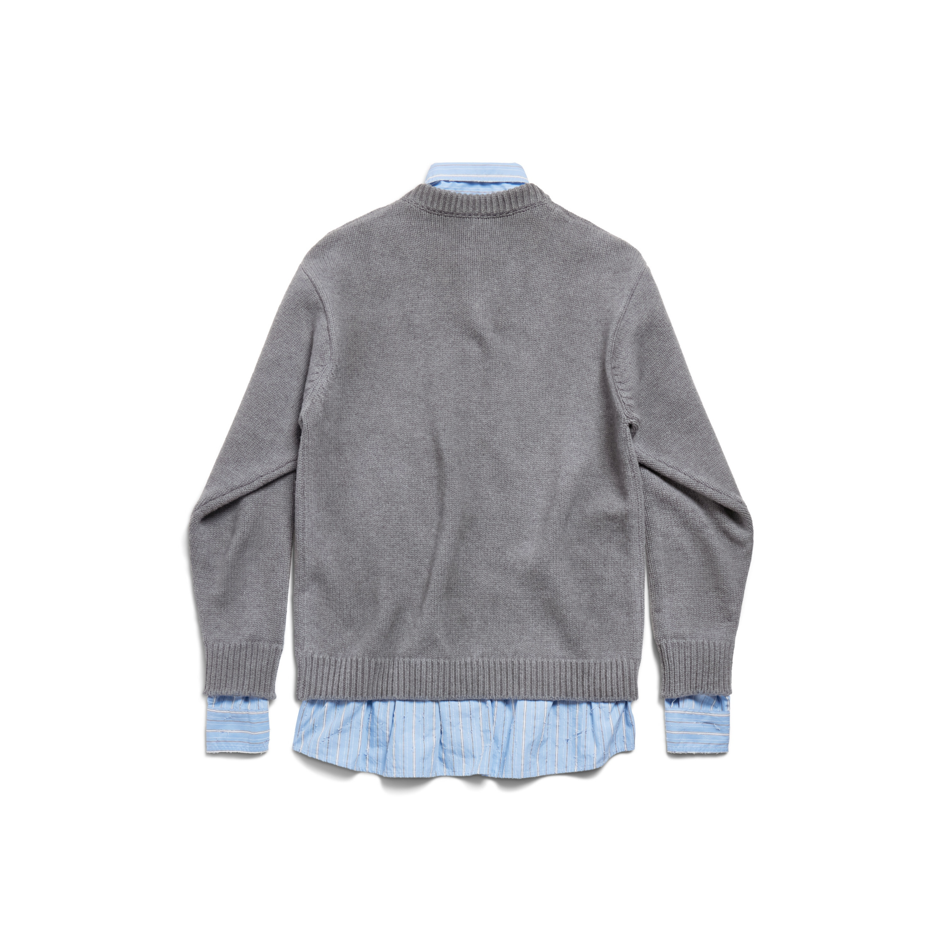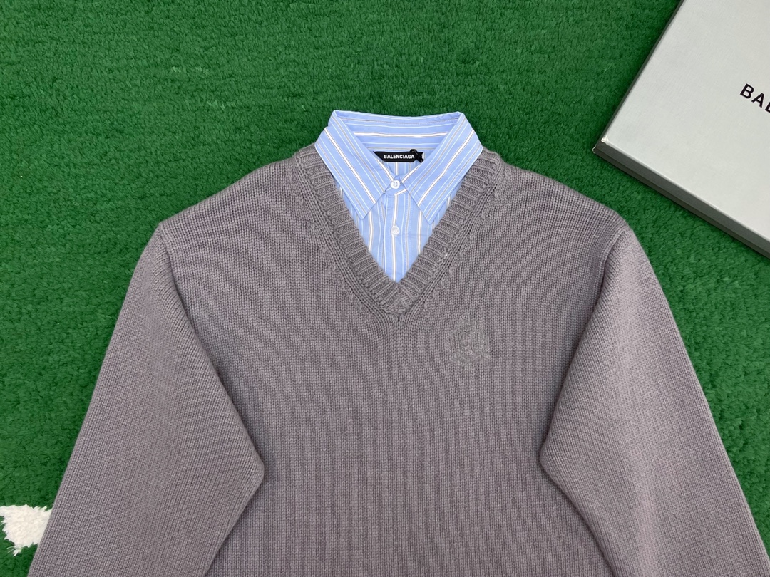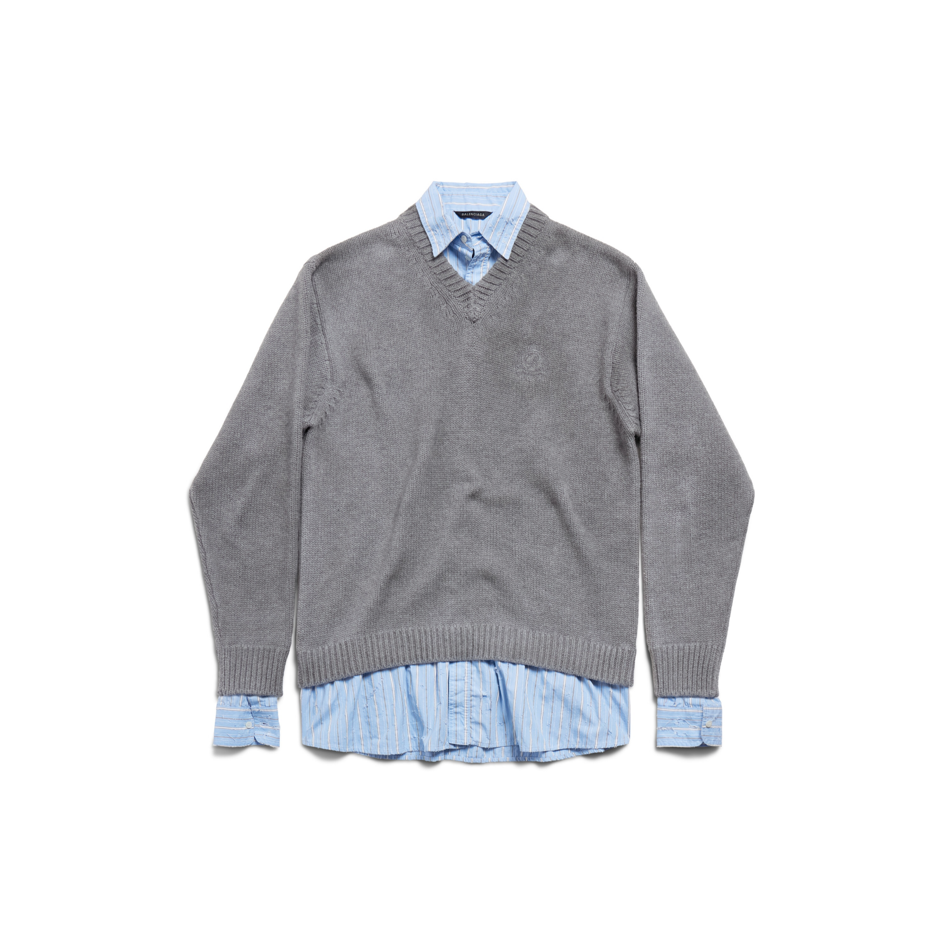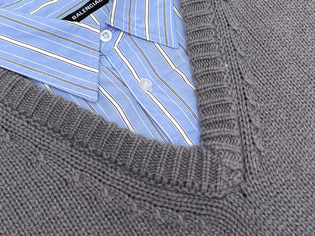발렌시아가 레이어드 셔츠 브이넥 스웨터 그레이