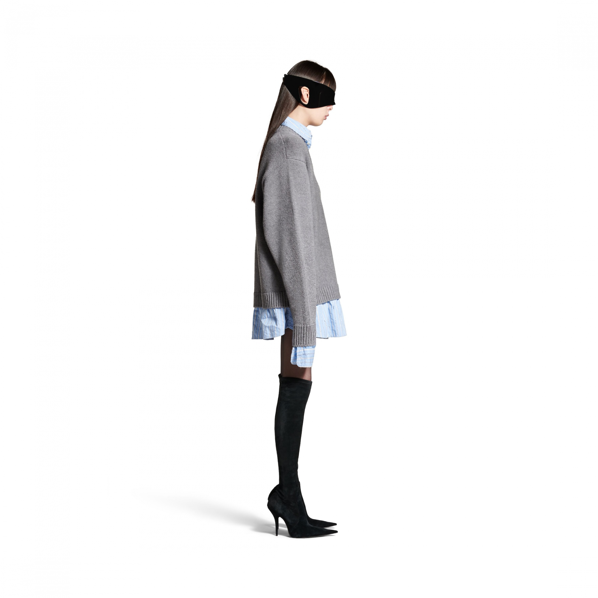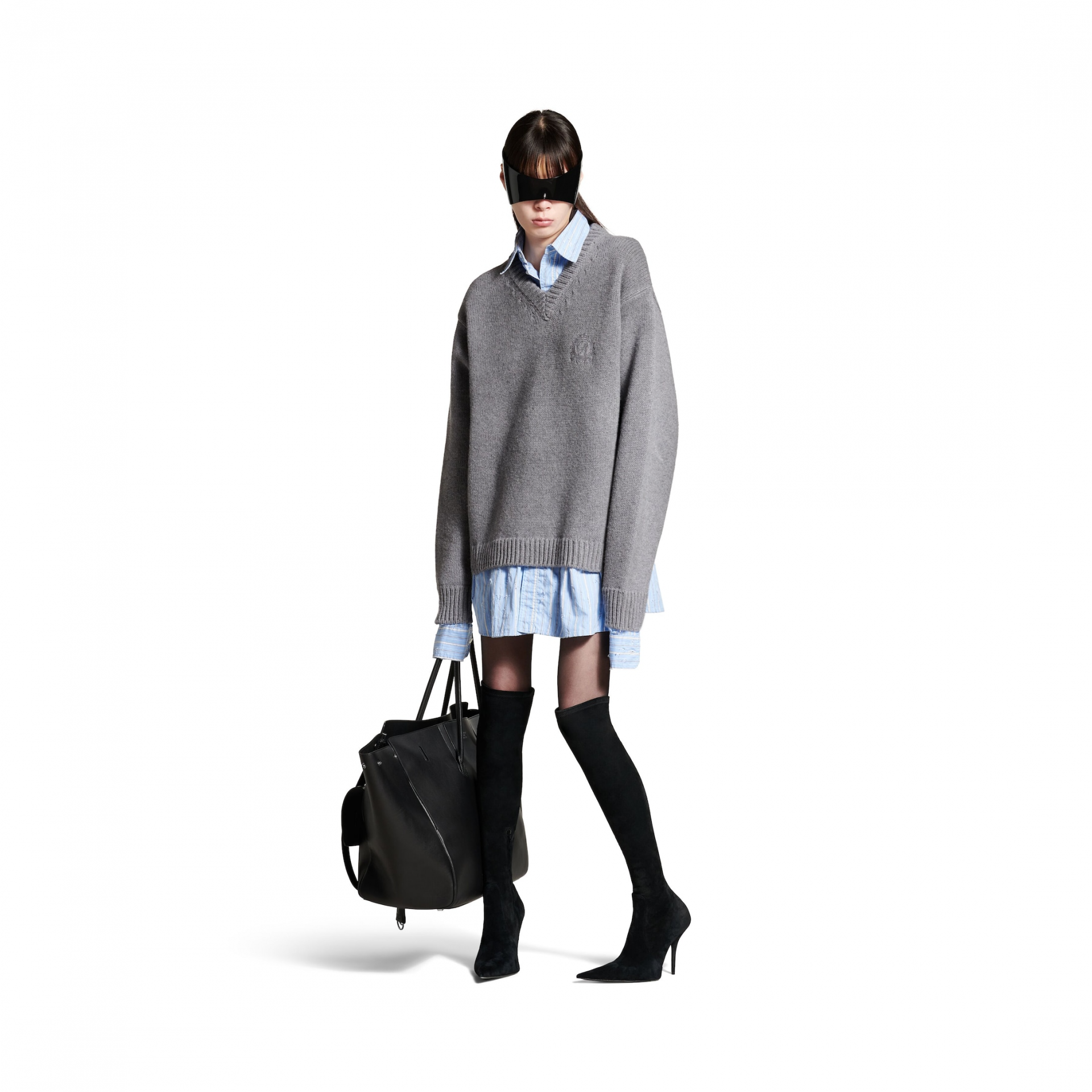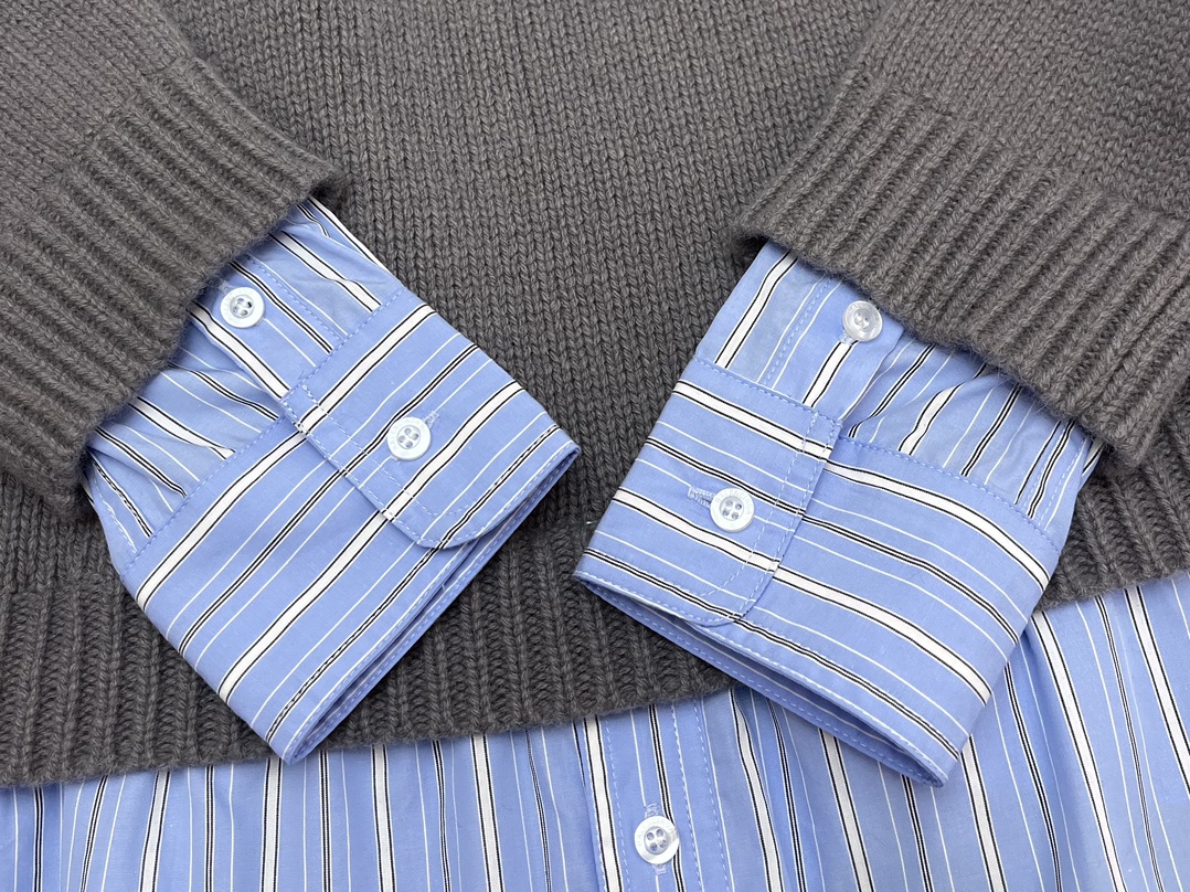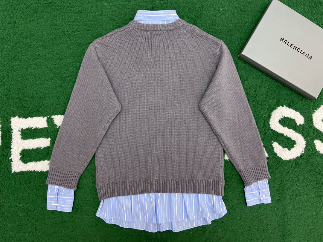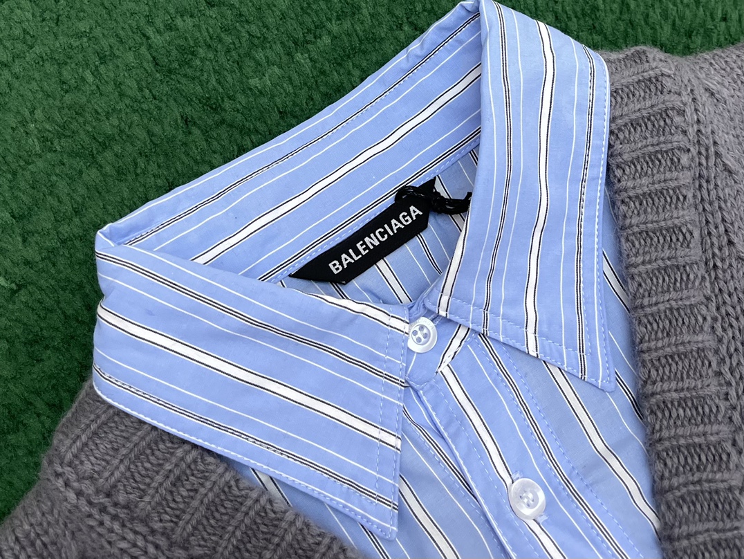발렌시아가 레이어드 셔츠 브이넥 스웨터 그레이