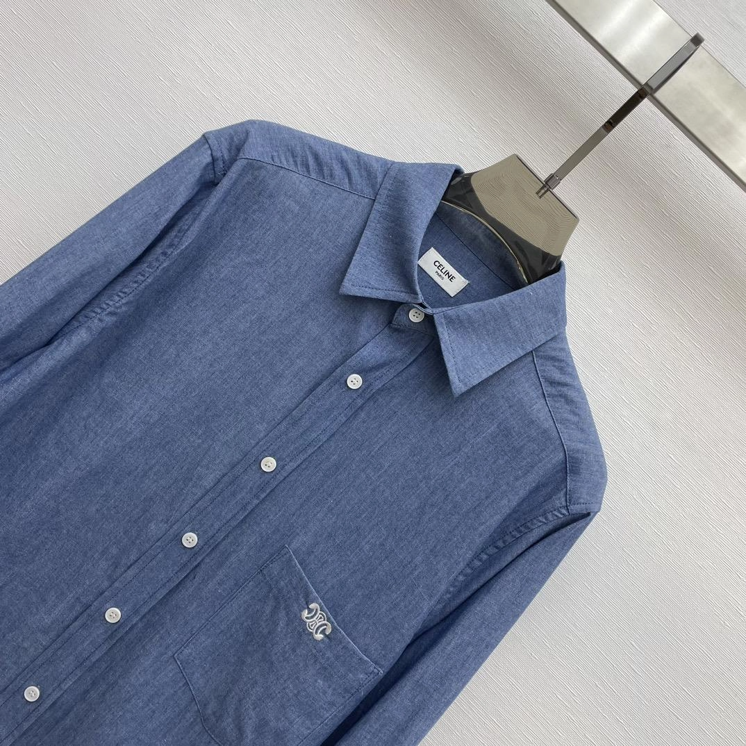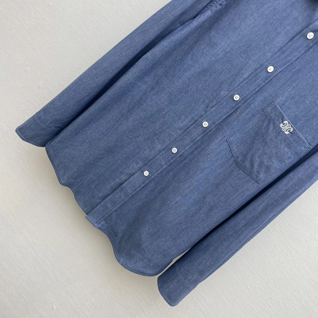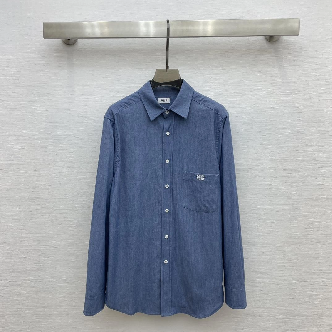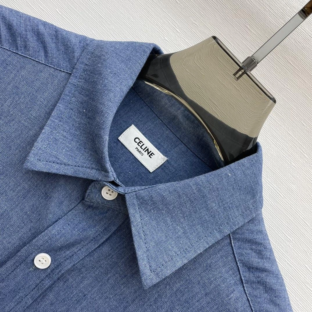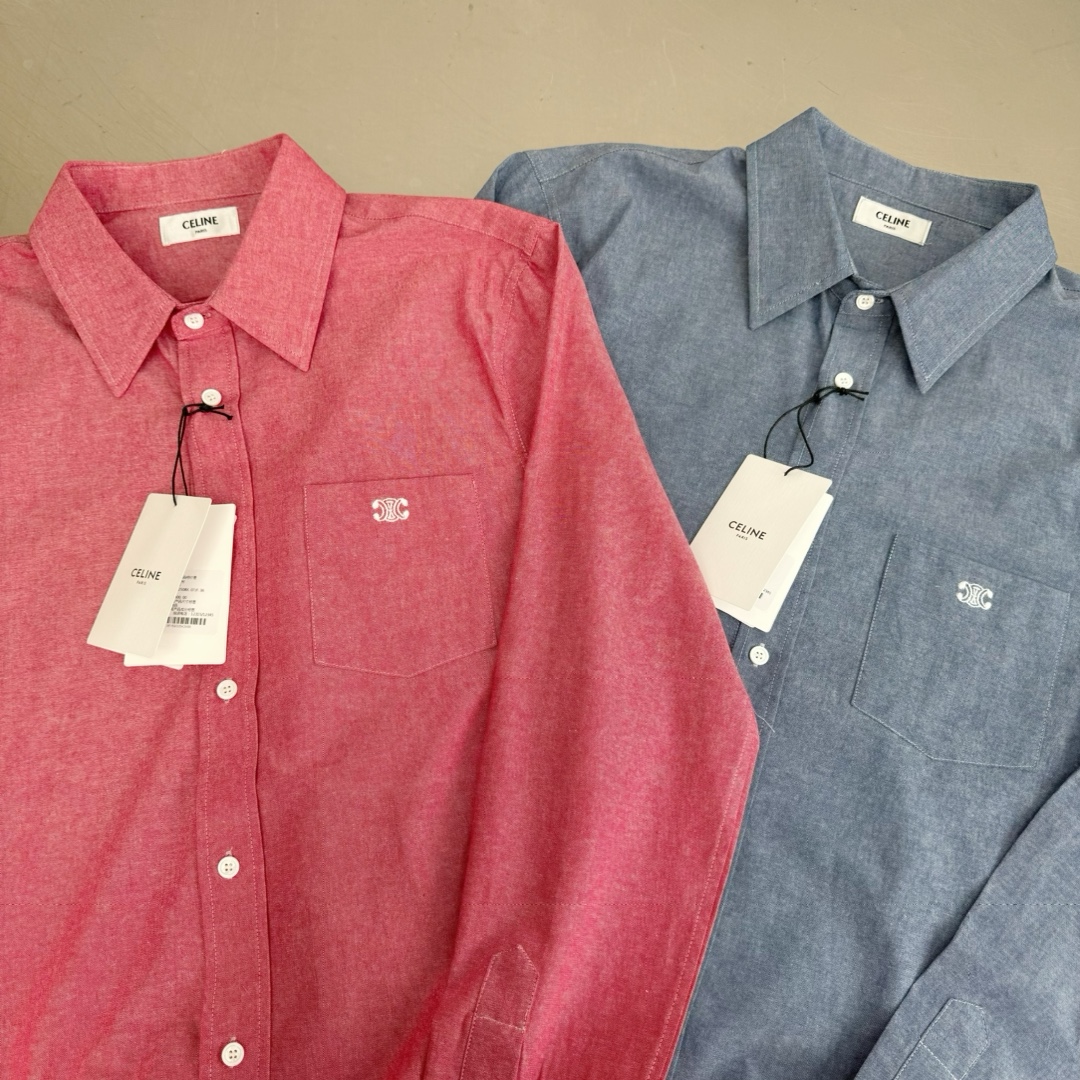 셀린느 레귤러 핏 샴브레이 셔츠 블루, 레드