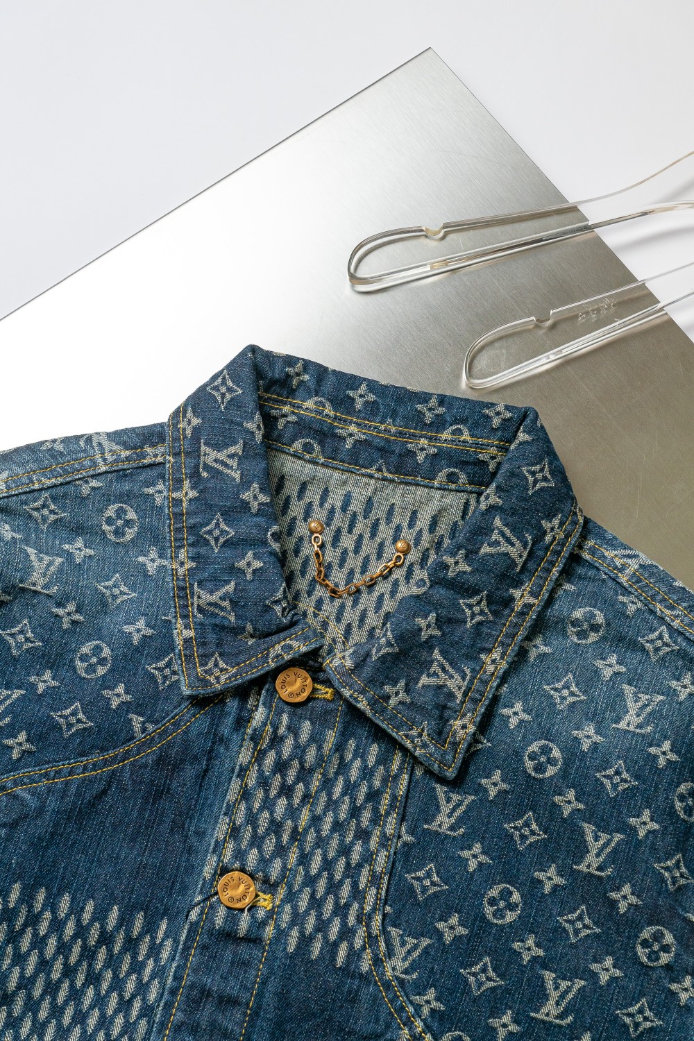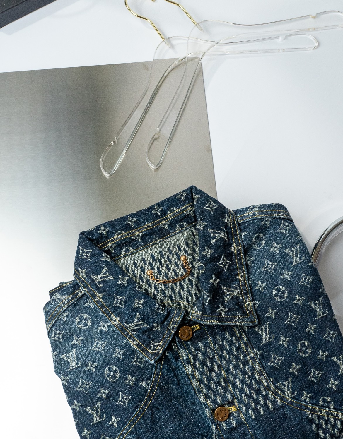 루이비통 x 니고 자이언트 다미에 웨이브 MNGM 데님 자켓 그레이