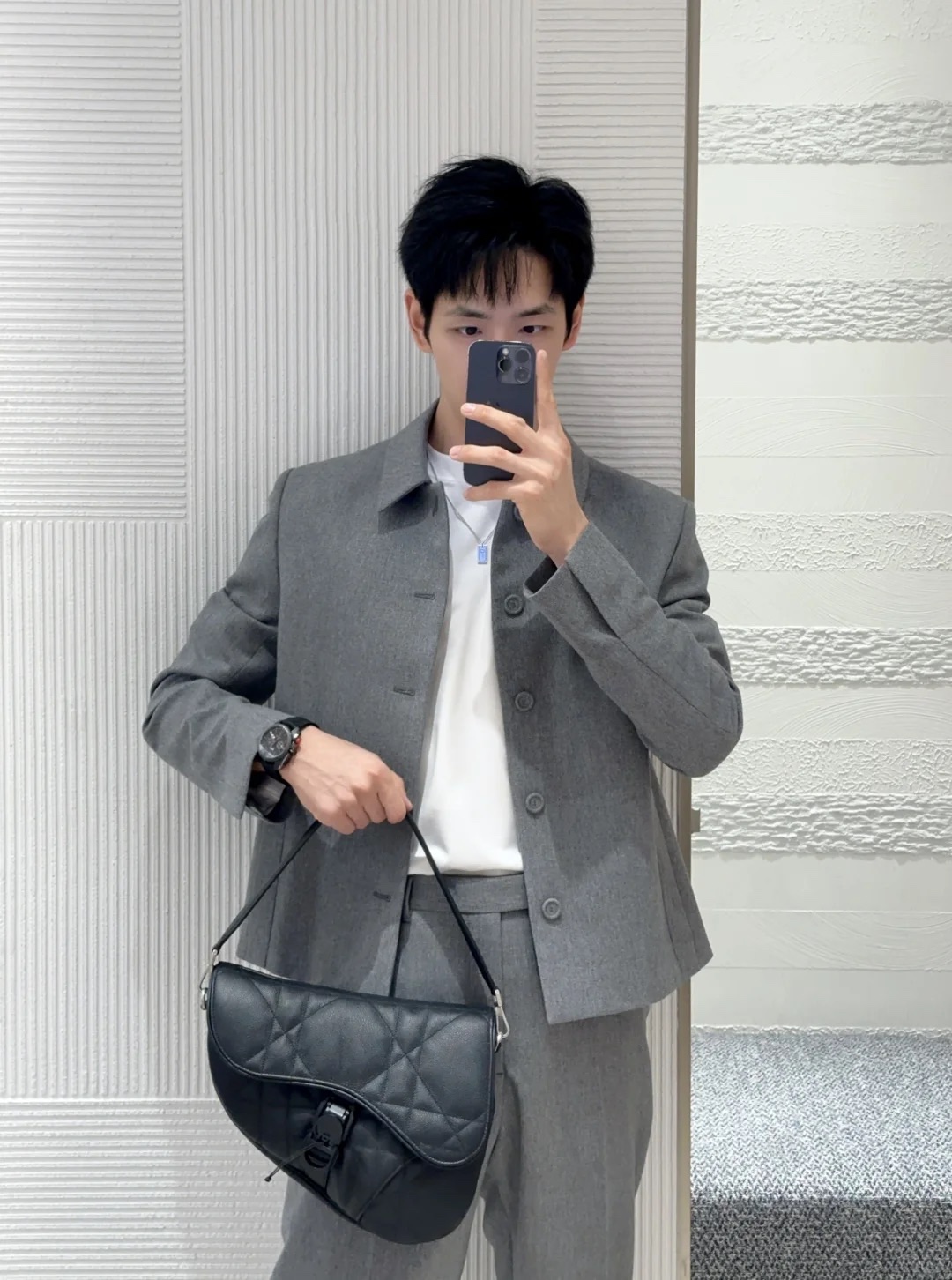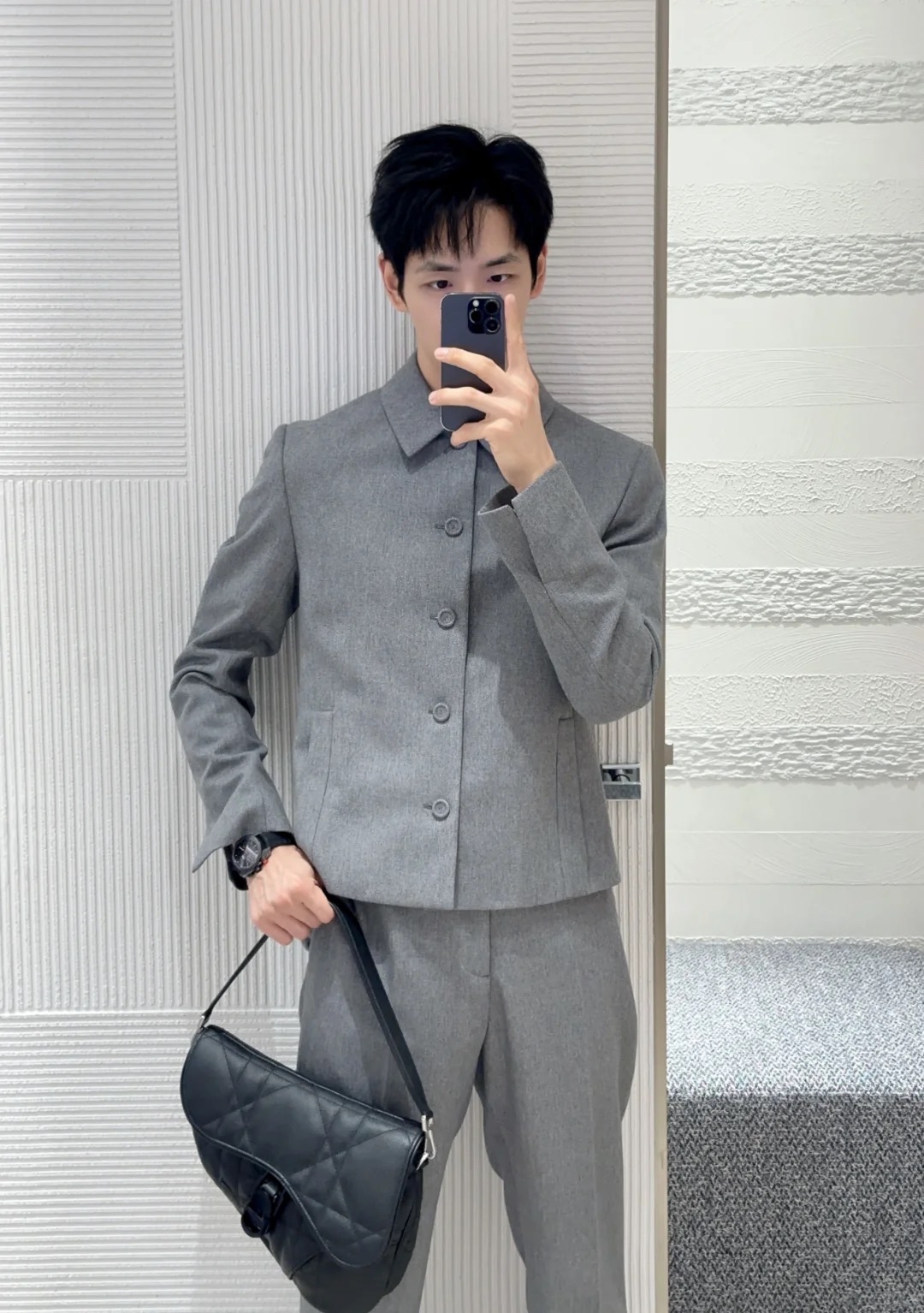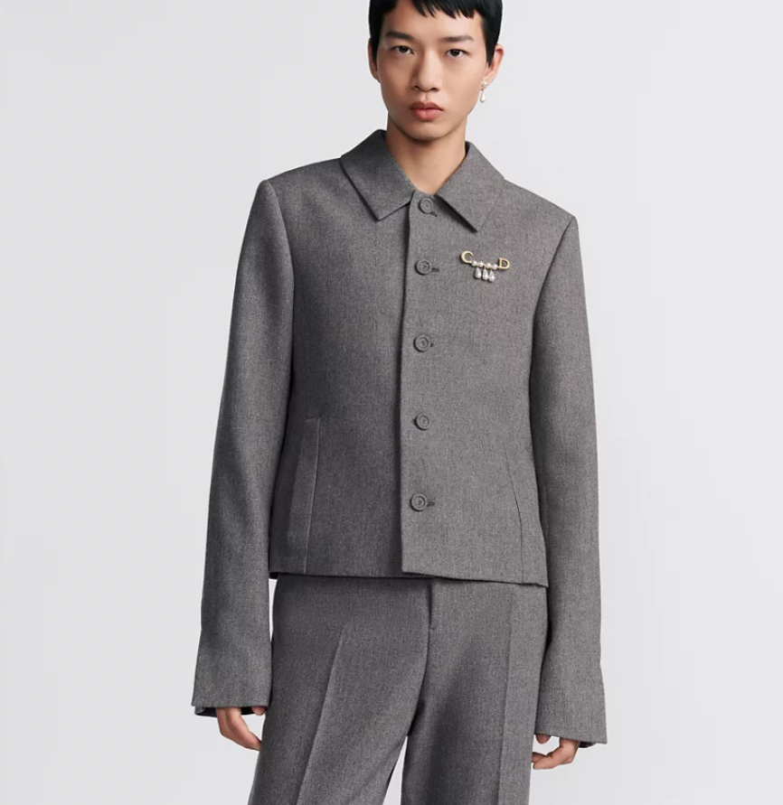 디올 캐시미어 버진 울 펠트 크롭 재킷 그레이