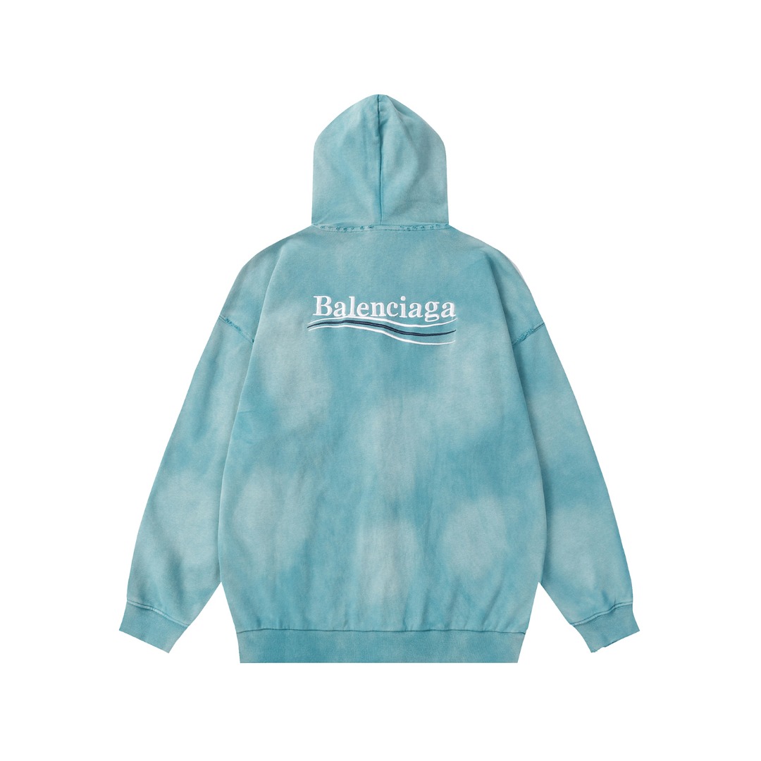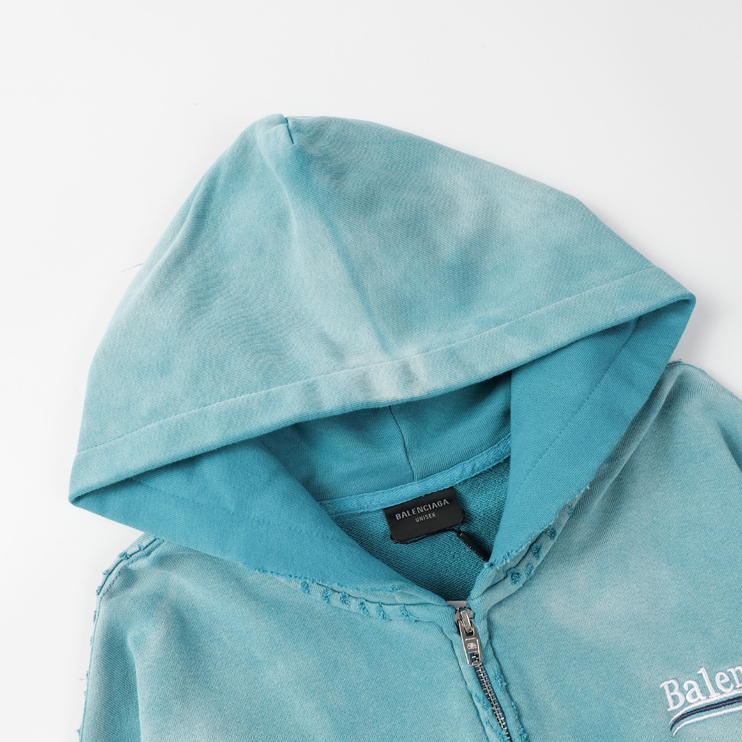 발렌시아가 헤비 듀티 워싱 후디 집업 블루