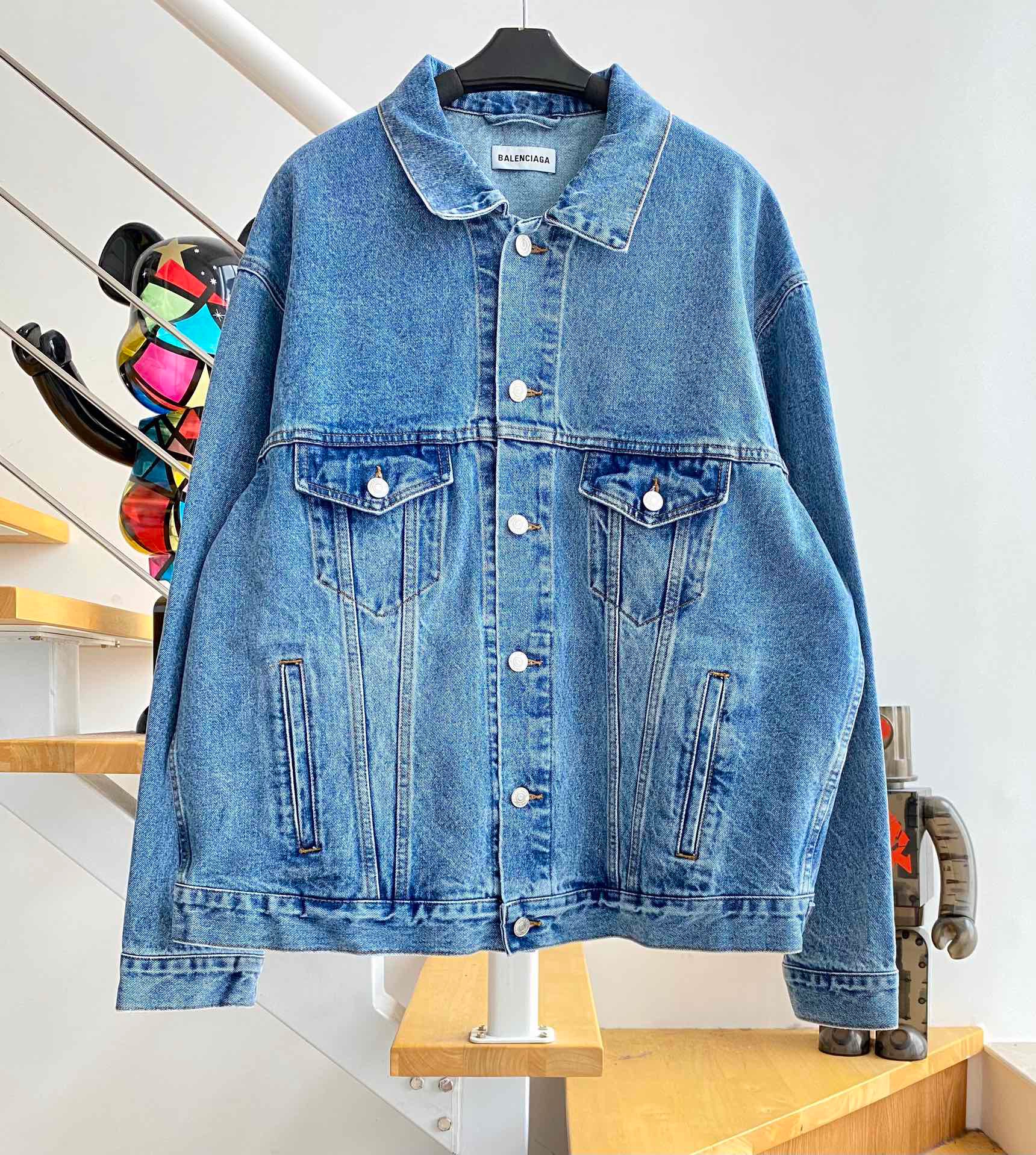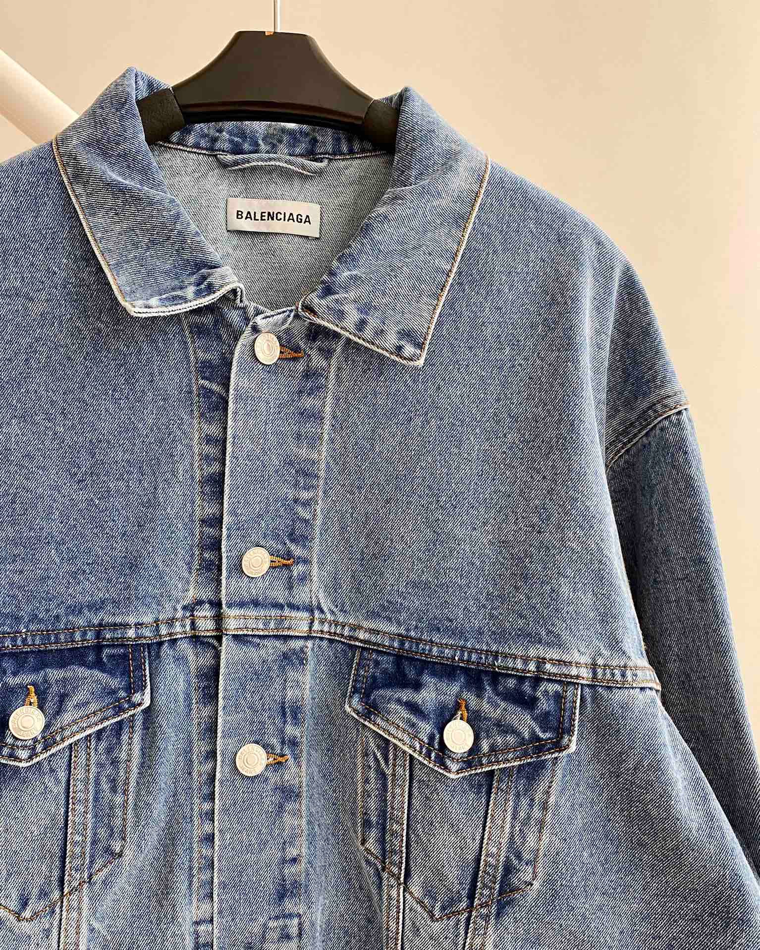 발렌시아가 백 바코드 로고 데미지 데님 자켓
