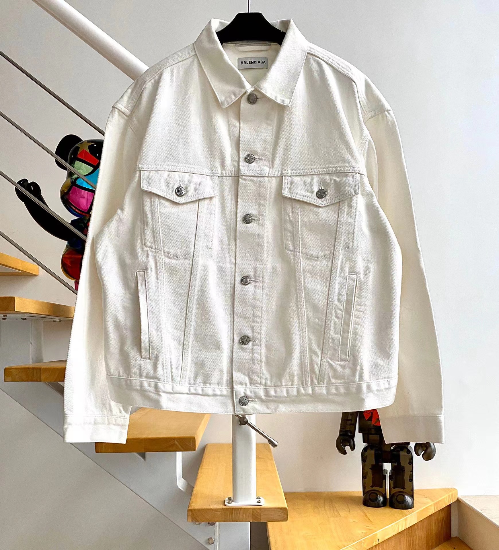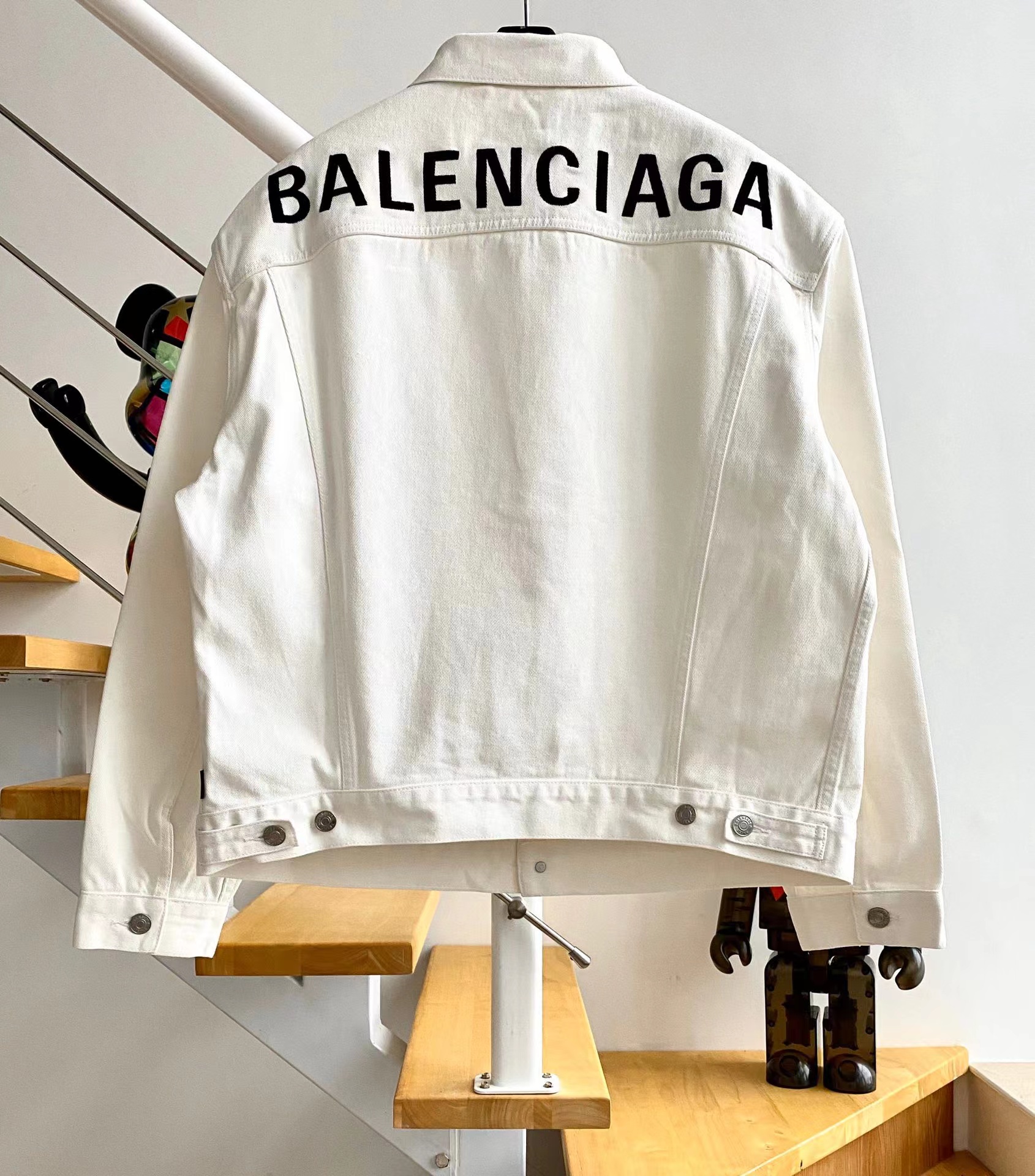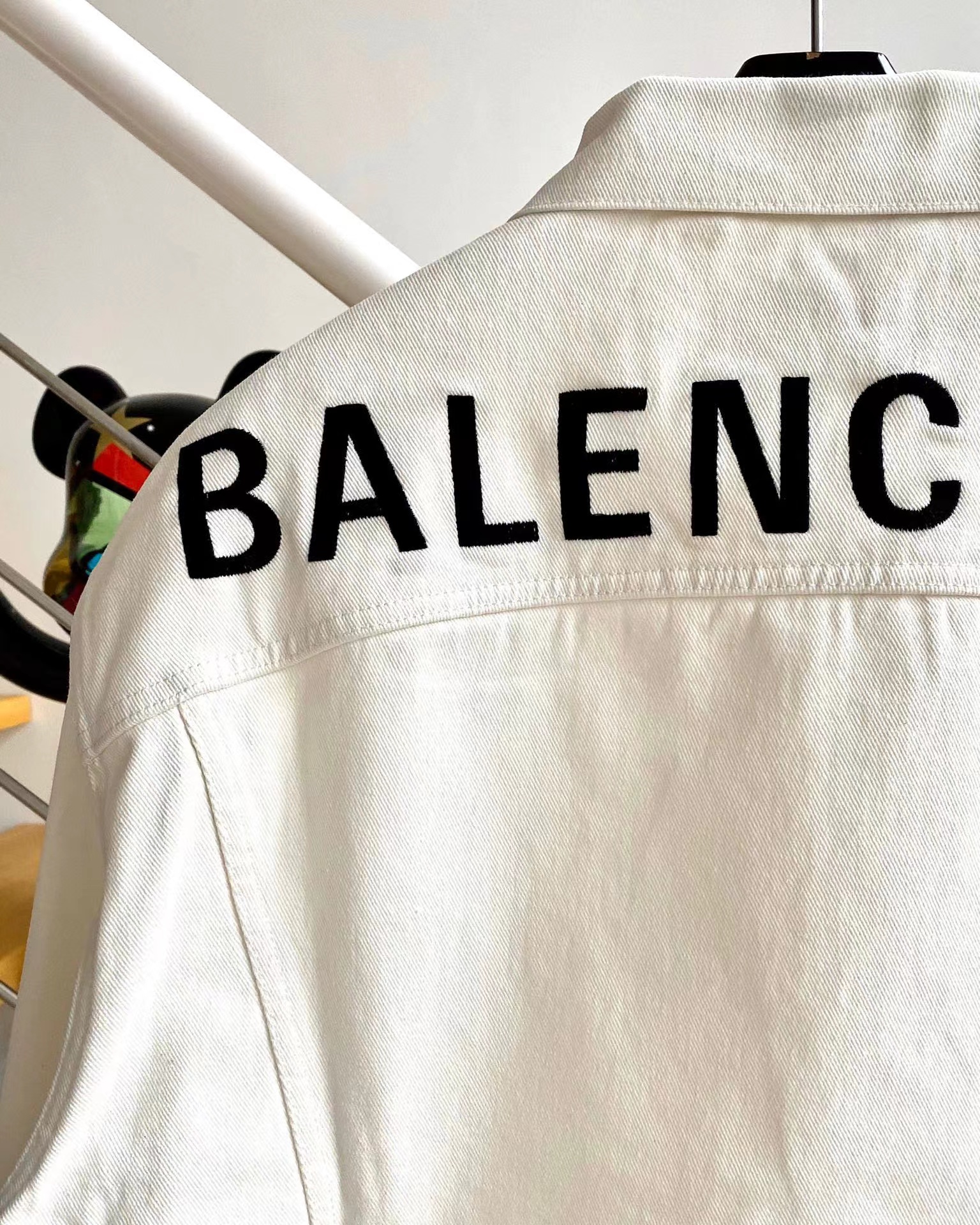 발렌시아가 엠브로이더리 로고 데님 자켓 화이트