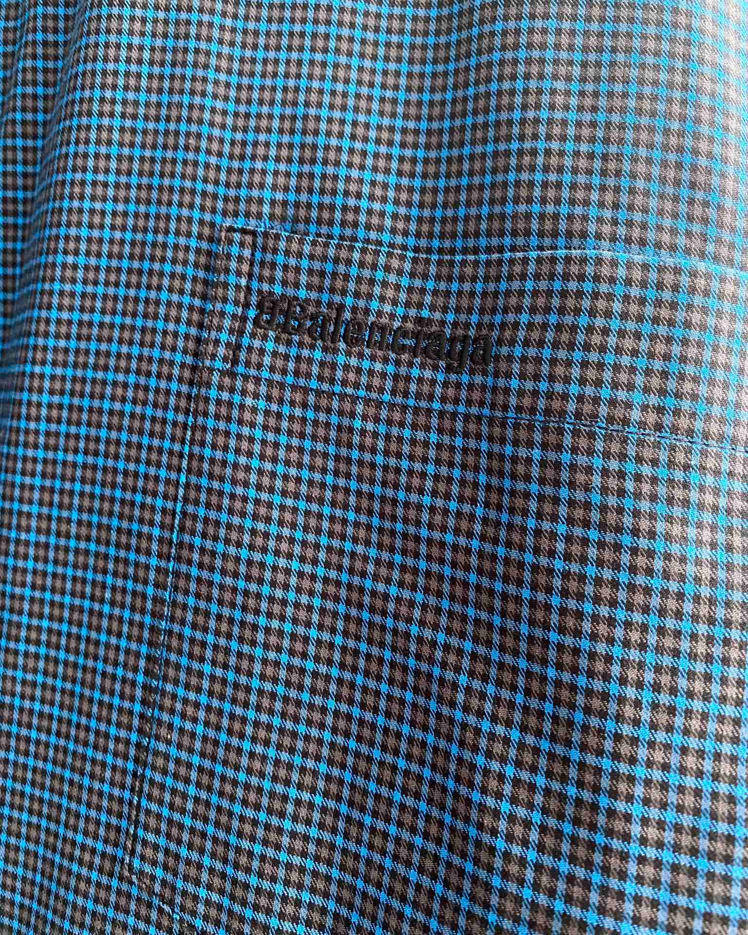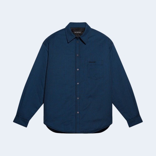발렌시아가 체크 패턴 패디드 셔츠 블루