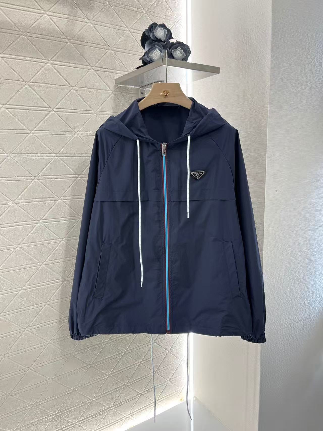 프라다 리나일론 블루 후드 재킷