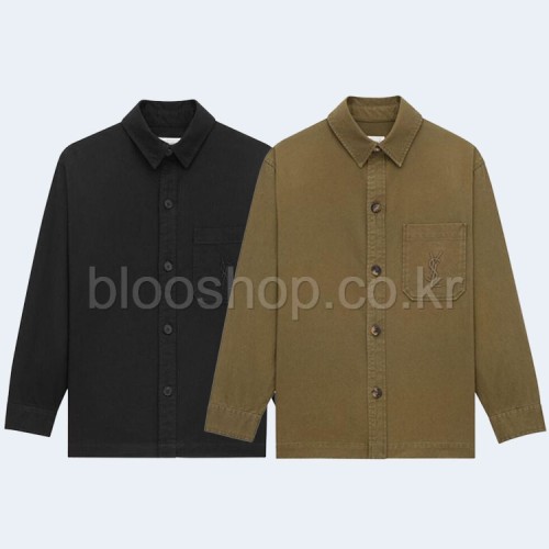 생로랑 코튼 린넨 개버딘 셔츠 (브라운) (블랙) 2color