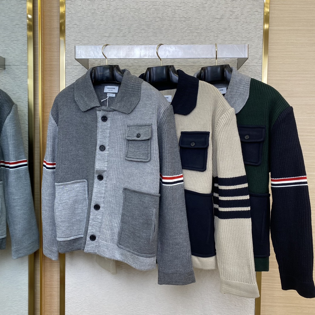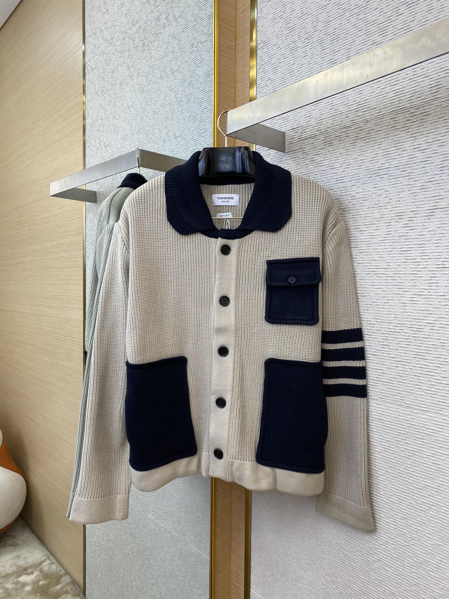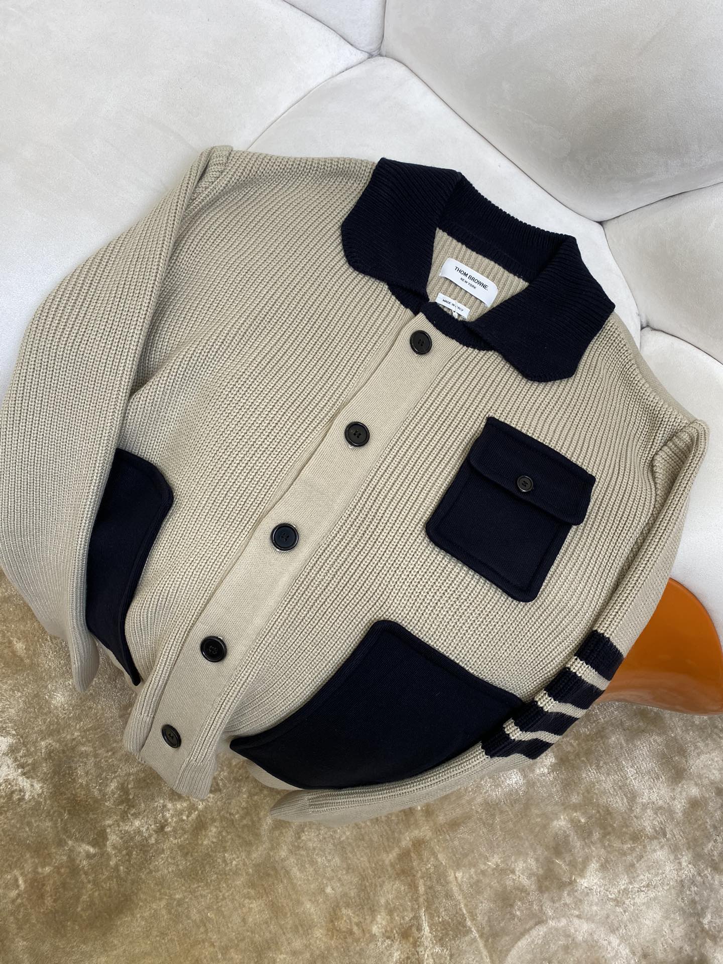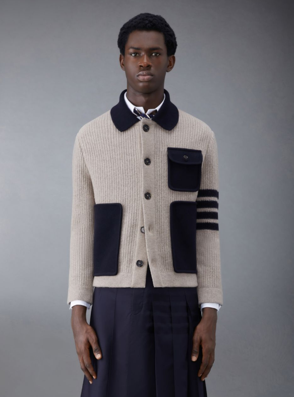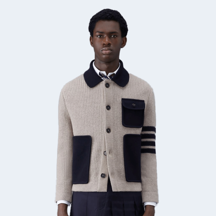 톰브라운 보일 울 하프 카디건 스티치 4-바 워크맨 재킷