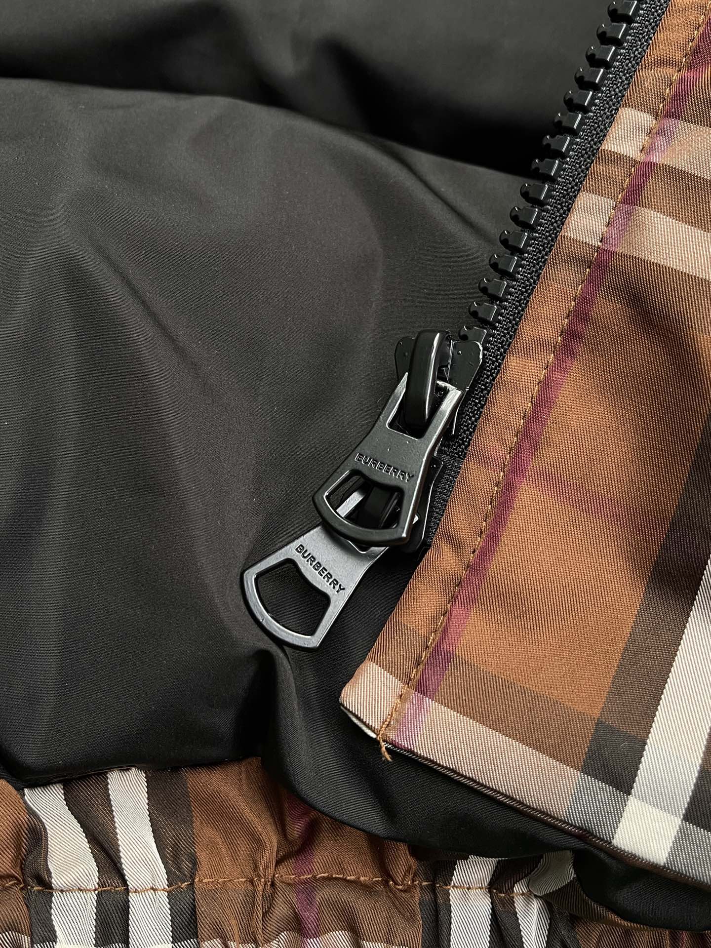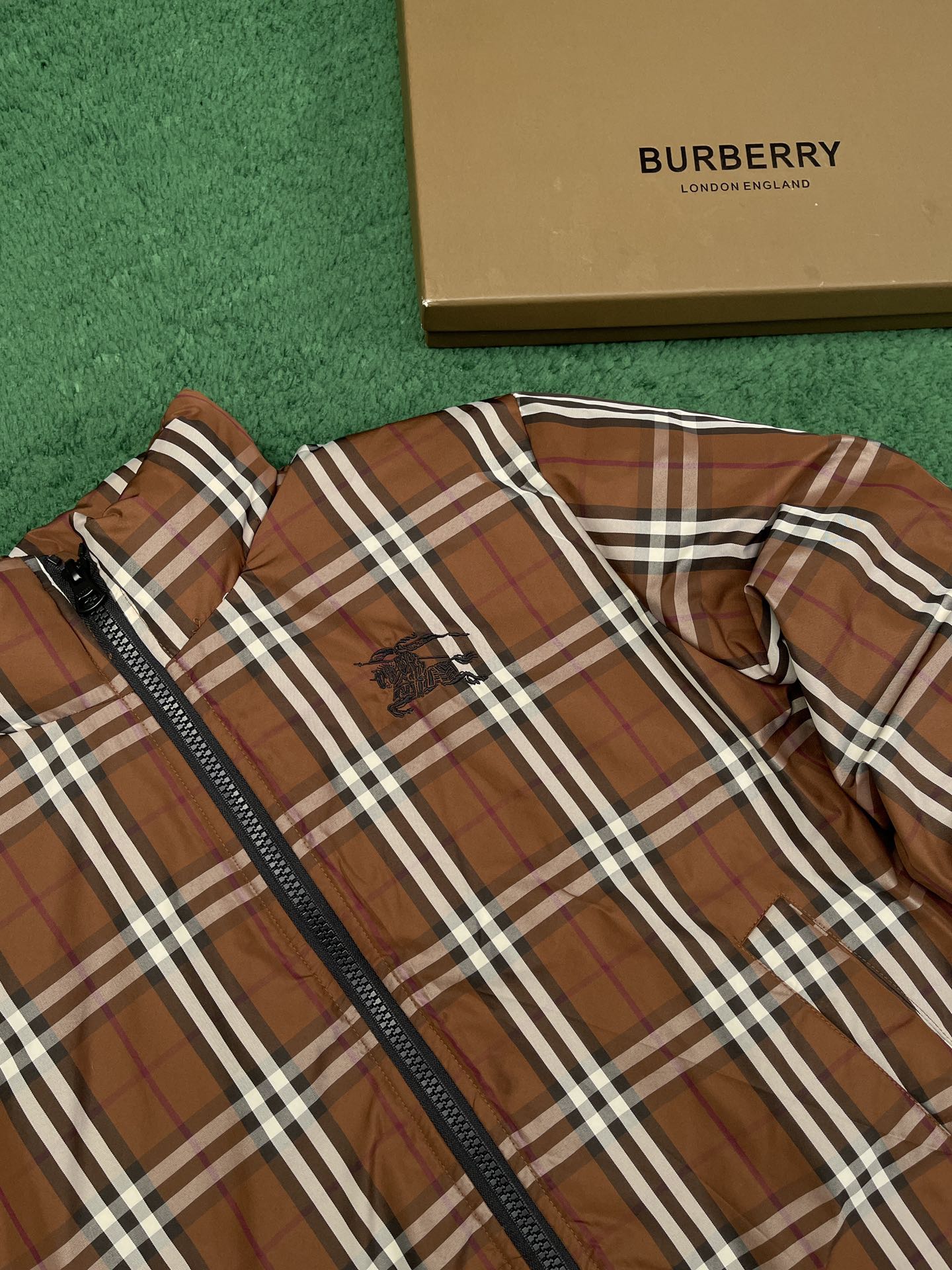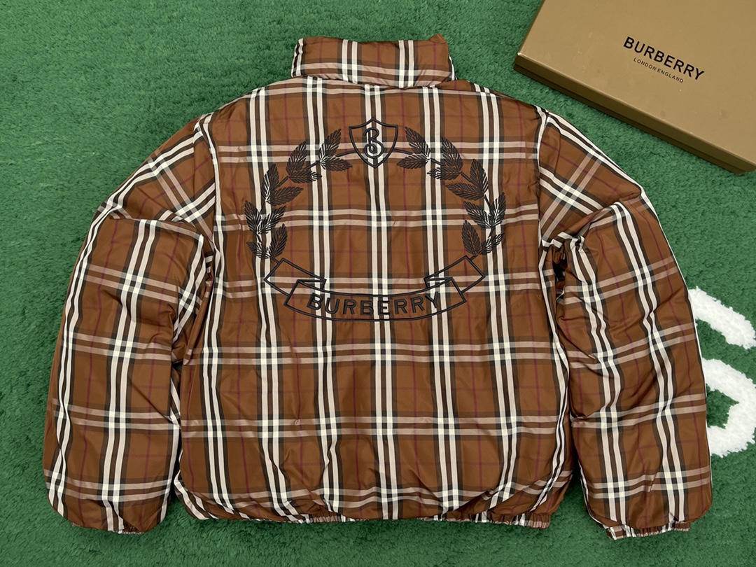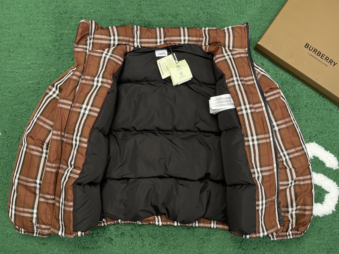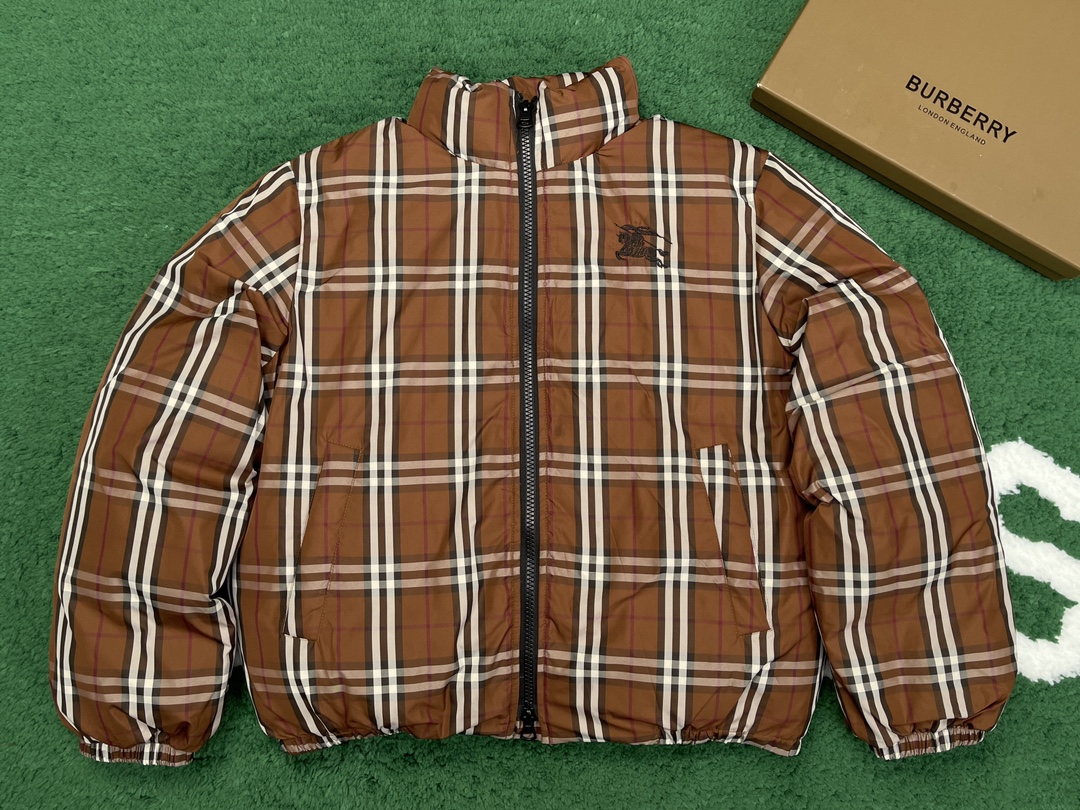 버버리 체크 나일론 퍼퍼 자켓 브라운