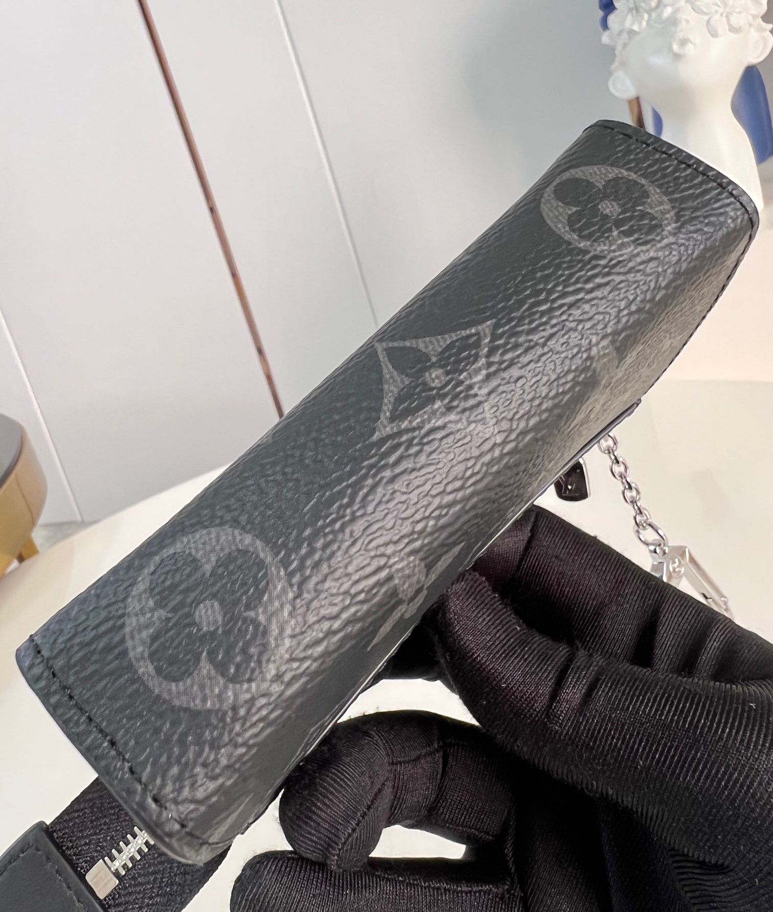 샤넬 펄리 램스킨 골드 메탈 블랙 체인 지갑 25SS