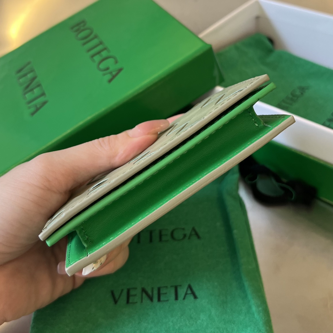 보테가베네타 인트레치아토 트래버틴 명함지갑