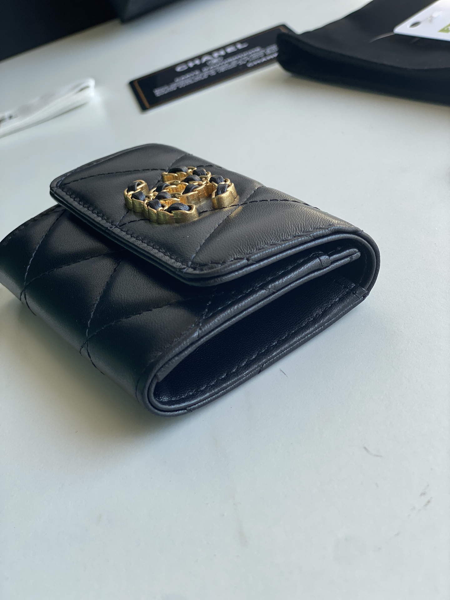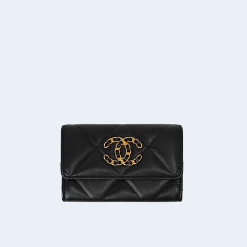 샤넬 19 카드홀더 램스킨&골드 메탈 블랙