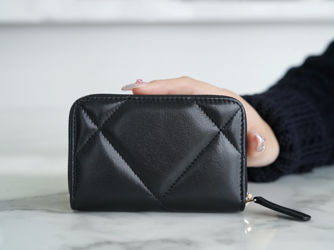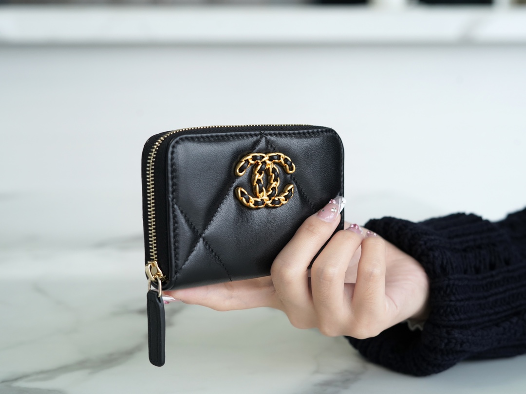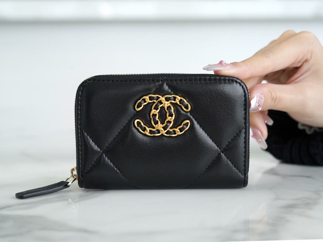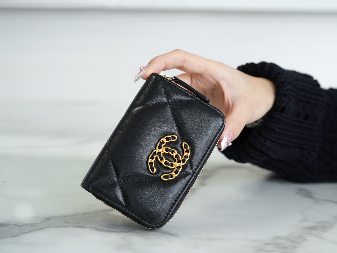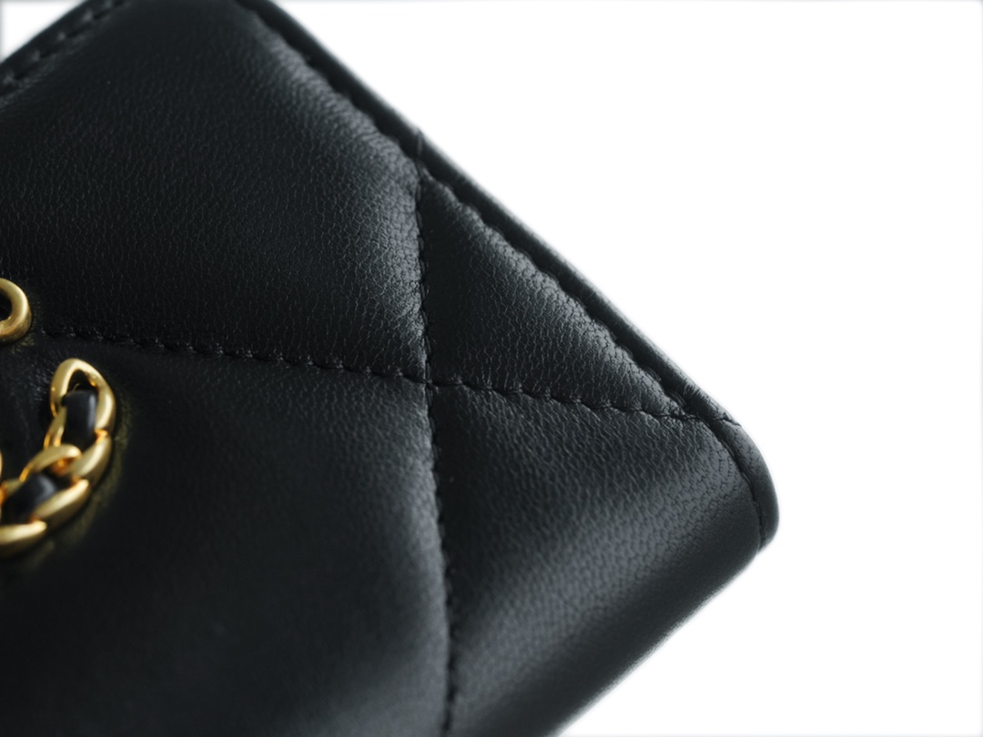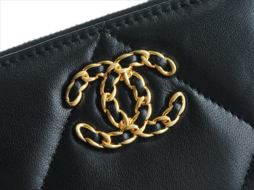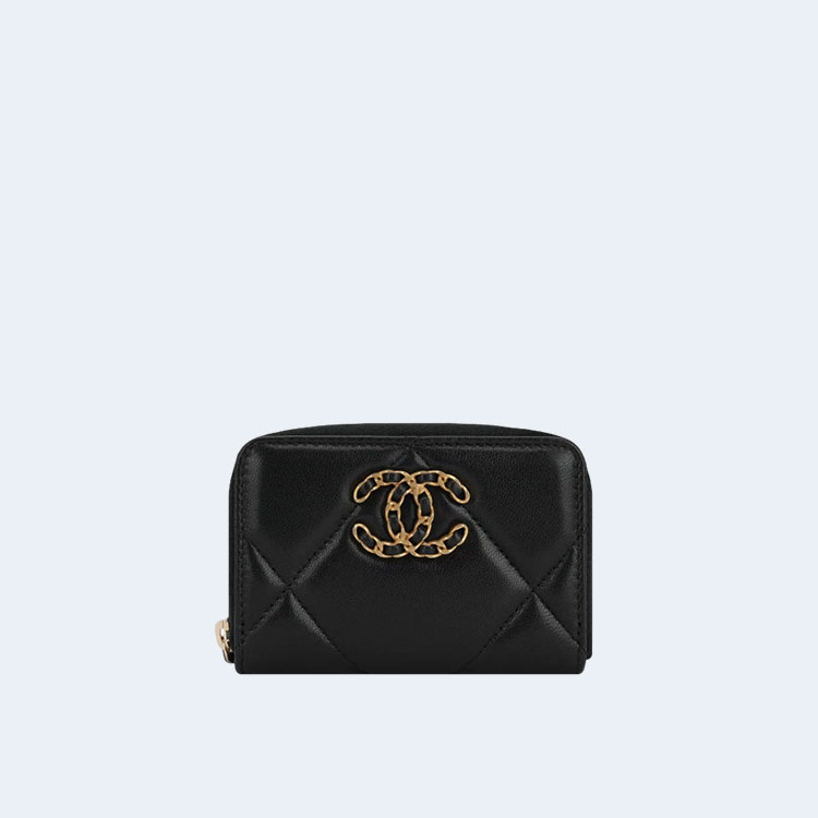 샤넬 19 카드홀더 램스킨&골드 메탈 블랙