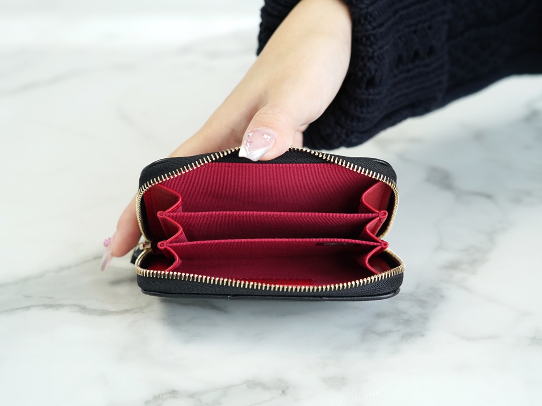 샤넬 클래식 그레인드 카프스킨 지퍼 카드 홀더