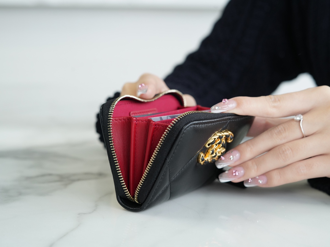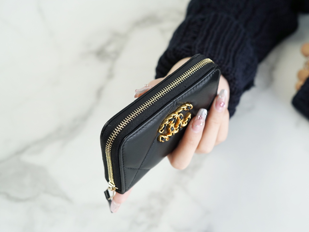 샤넬 19 지퍼 코인 지갑 블랙