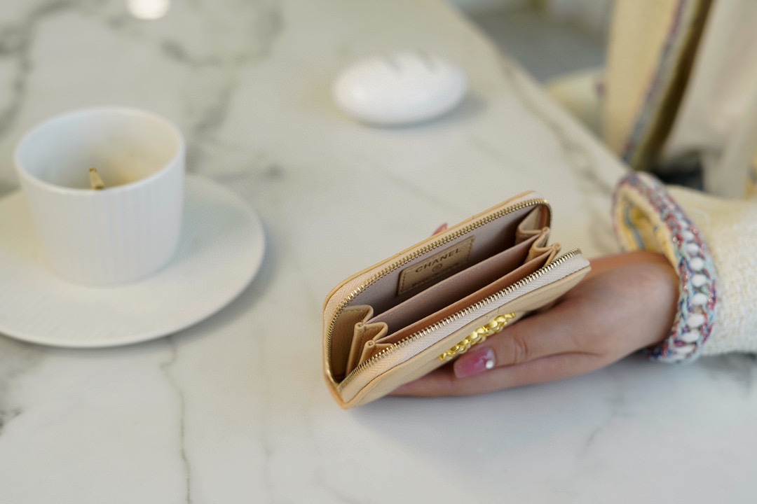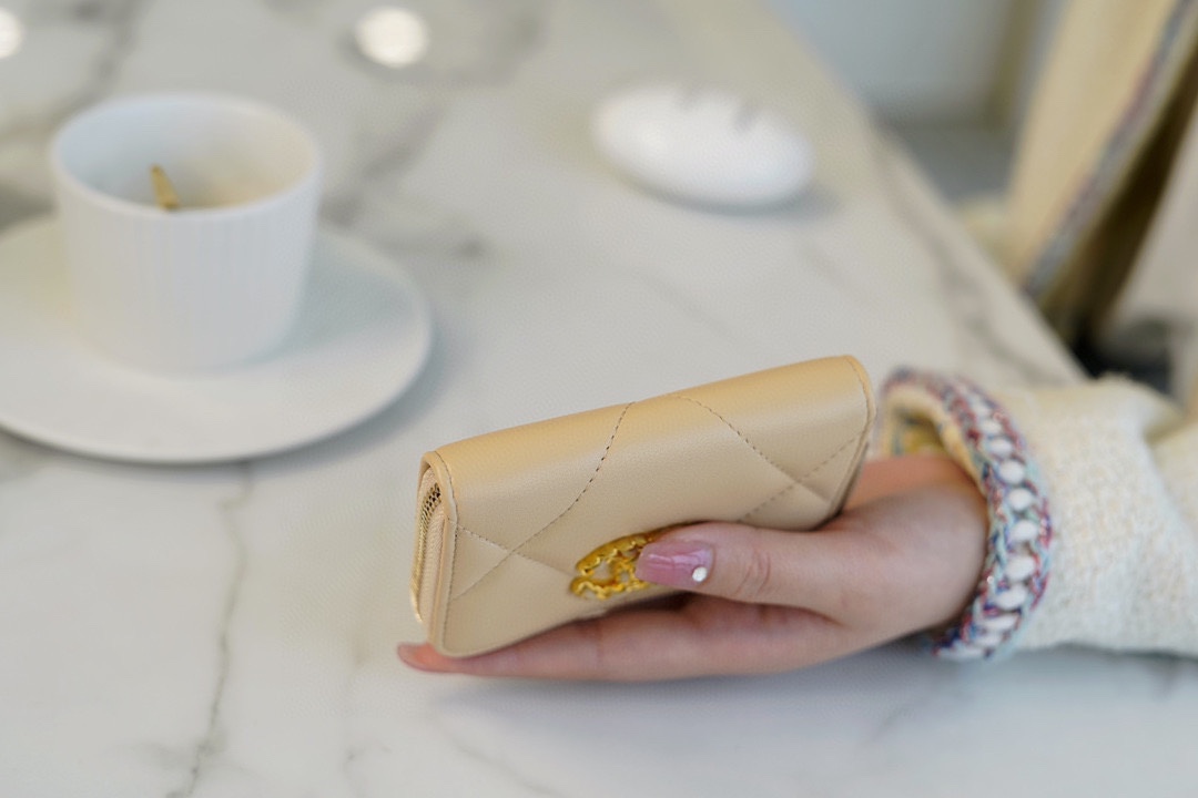 샤넬 19 지퍼 코인 지갑 베이지